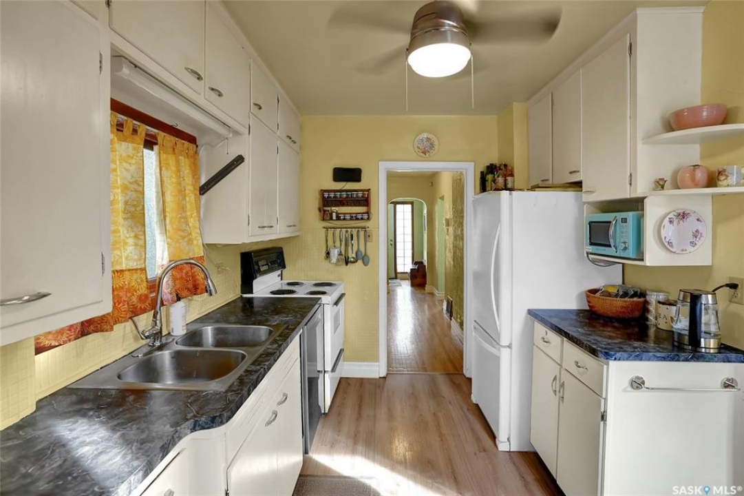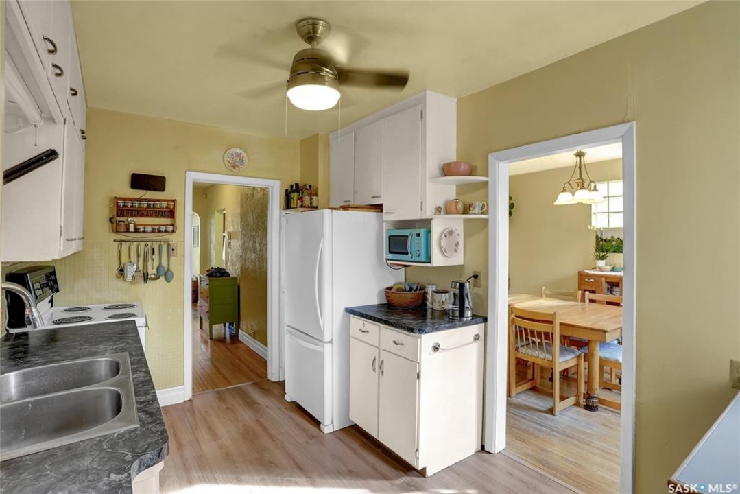 This charming character home, ideally situated on one of the most desirable blocks in the General Hospital area, has undergone numerous upgrades and could be exactly what you've been searching for. Upon entering, you'll be welcomed by a bright and open living room filled with natural light and enhanced by beautiful hardwood floors. The seamless flow leads into a spacious dining area, also featuring hardwood flooring and offering a lovely view of the backyard. The kitchen showcases crisp white cabinetry, durable laminate flooring, and convenient access to a cozy back porch—perfect for morning coffee or extra storage. Upstairs, you'll find a generous primary bedroom, two additional bedrooms, and a beautifully renovated four-piece bathroom. The basement provides ample storage space, a washer and dryer area, a high-efficiency furnace, and a dedicated cold storage room. One of the standout features is the double detached garage, which received upgraded doors in 2011. The spacious backyard is ideal for relaxation or entertaining, complete with a wooden deck extending from the back porch. Conveniently located near downtown and close to all major amenities, this home offers comfort, style, and practicality—ready for its next proud owners. Schedule your private viewing today!