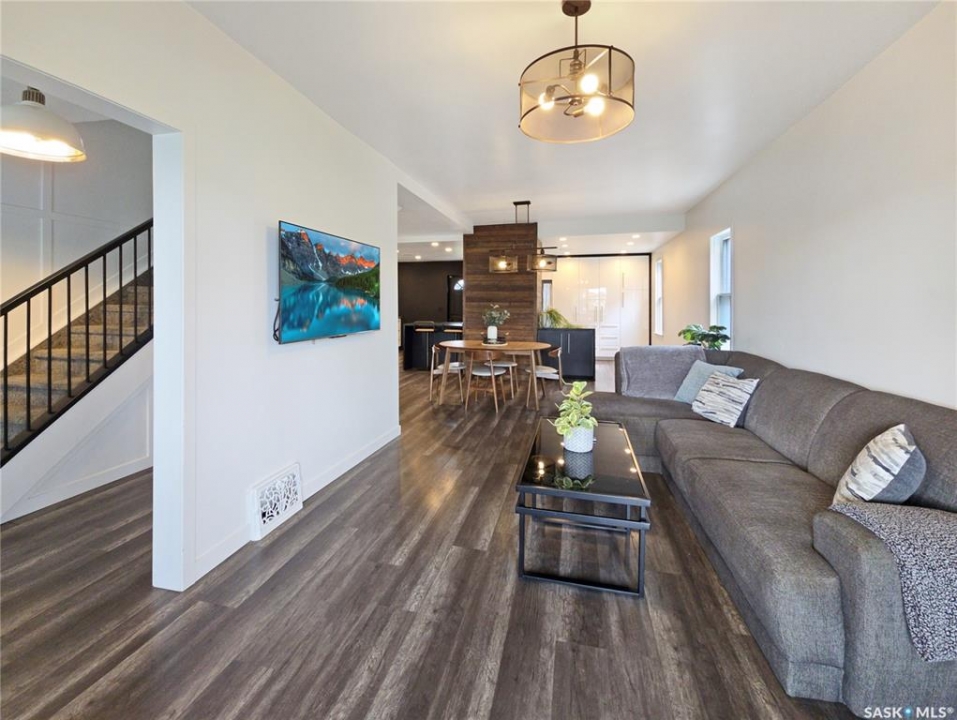This updated three-bedroom home offers a unique blend of charm and contemporary finishes. The main floor boasts an open-concept layout, while the kitchen features custom cabinetry, extensive counter space, pull-out drawers, smart storage solutions, and modern appliances including a gas range. The front den is filled with ample natural light. Upstairs, you'll find three bedrooms—the primary includes a spacious walk-in closet with custom shelving and organizers. Another bedroom is ready for a second-floor laundry installation. The upstairs bathroom is equipped with a double sink vanity, heated tile flooring, and a large walk-in shower. The finished basement offers carpeted floors, counters set up for a wet bar, and a dedicated laundry area. Recent upgrades by the sellers include a new water heater, furnace, rewired electrical, plumbing, flooring, paint, remodeled kitchen, appliances, and deck (2020), bathroom renovations (2021), completed basement (2022), and new shingles on the south side of the roof (2023). The large, detached garage, built just a few years ago, is heated and spacious enough for three vehicles, extra storage, and a workshop. With easy trailer access, it's ideal for tradespeople or those with trailers. Additionally, construction has begun on a new city-centre school—serving Riversdale, King George, and Pleasant Hill—which will also offer new childcare spaces and is scheduled to open in 2027. If you're seeking a stylish home with generous living space, a large, finished garage, and a backyard perfect for entertaining, this property deserves your attention. There's plenty of potential and value here.