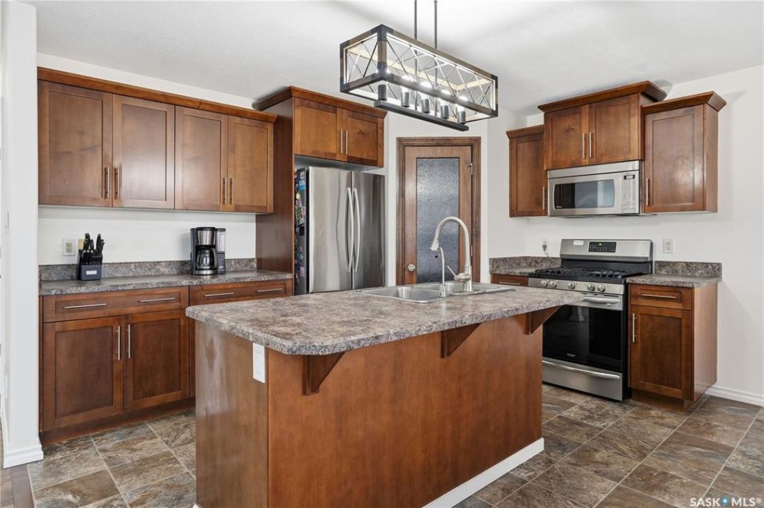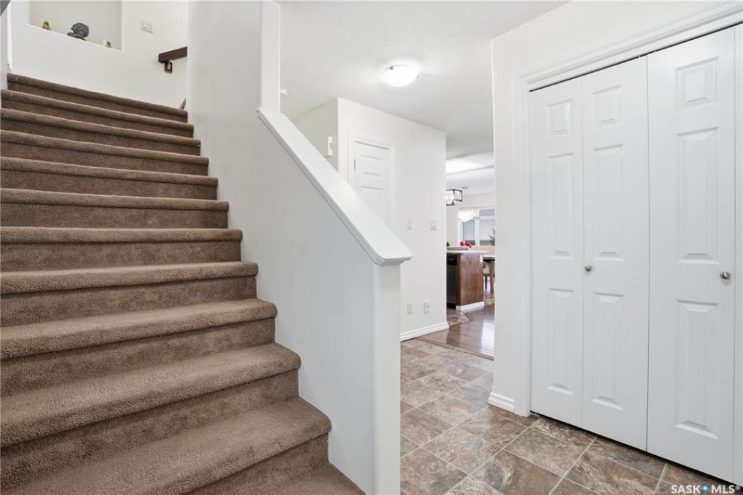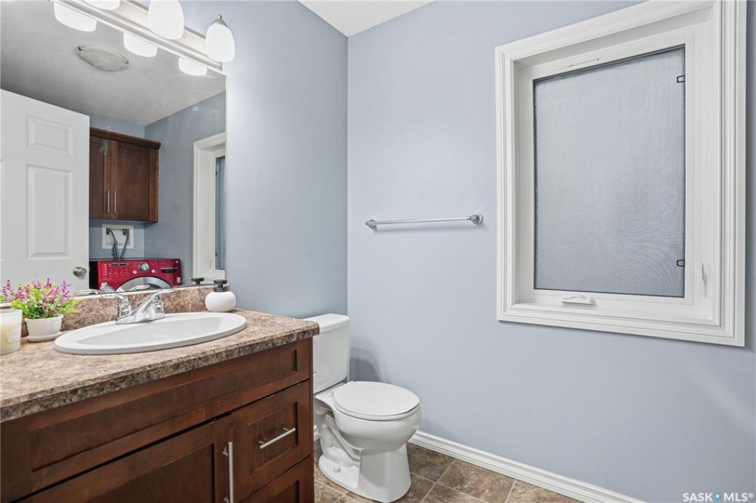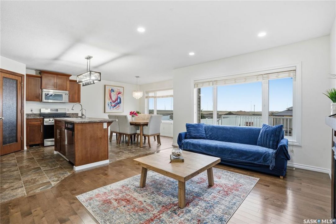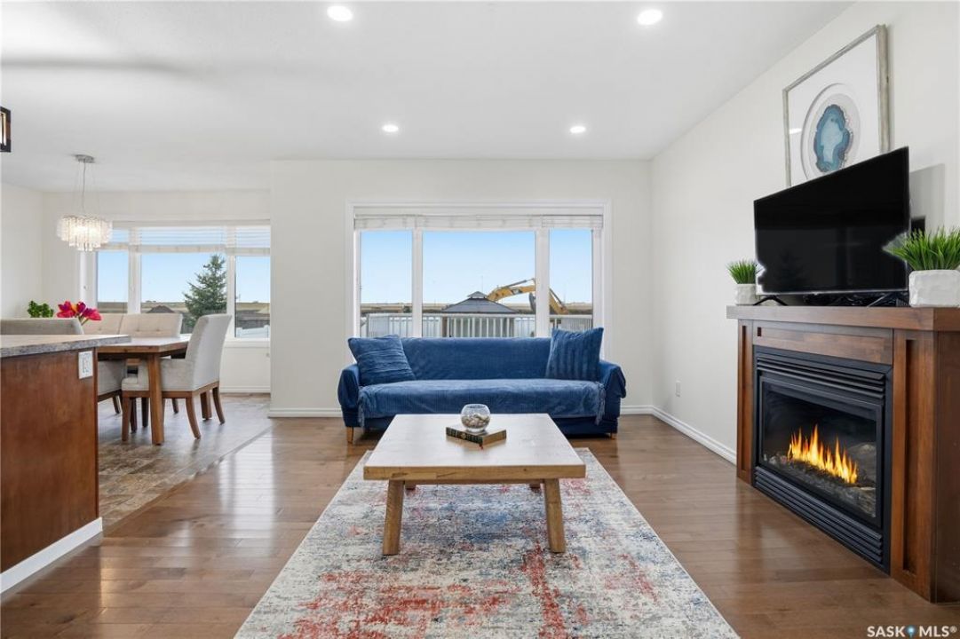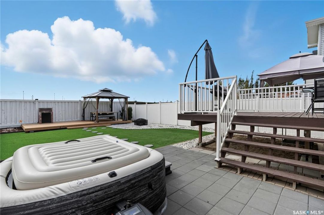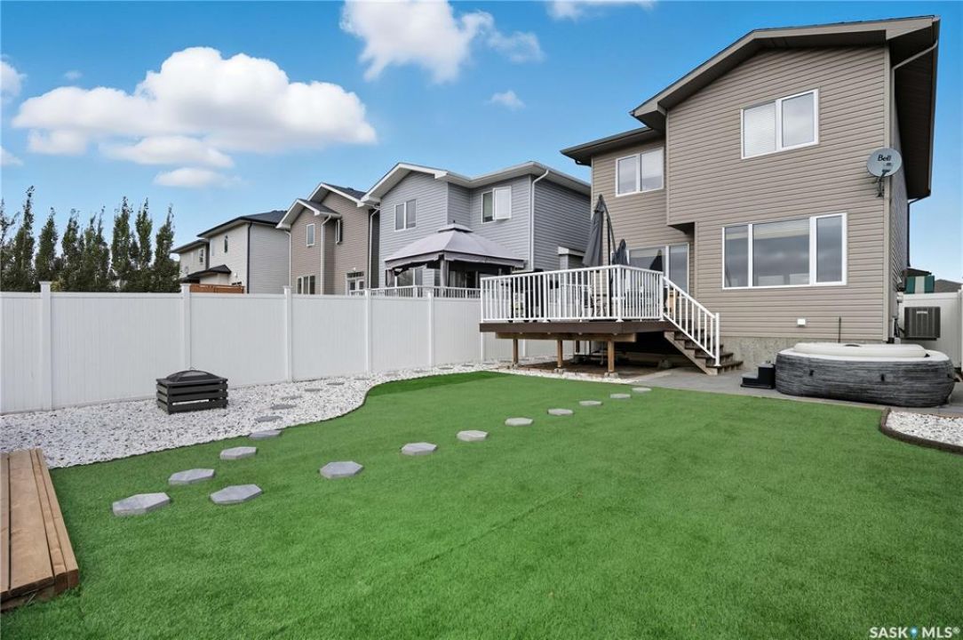 Welcome to Harbour Landing — a vibrant Regina community that truly has it all. From grocery stores and schools to cozy cafés and beautiful parks, everything you need is right here. This spacious two-storey home sits just steps from McKenna Park and the Harbour Landing walking paths. Inside, you'll immediately notice the bright, natural light streaming through the south-facing windows. The living room features maple hardwood floors and a gas fireplace — perfect for cozy winter evenings. The kitchen is both stylish and functional, with a gas range, plenty of counter space, and ample cabinetry. It flows seamlessly into the dining area, where a glass door leads to your back deck for easy indoor-outdoor living. A convenient laundry area with a half bath completes the main floor. Upstairs, the large bonus room with brand-new vinyl flooring offers flexible space for a playroom, movie nights, or a home office. You'll also find three bedrooms and a four-piece main bathroom. The primary bedroom includes dual closets and a private three-piece ensuite. The basement is open for future development, with large windows and rough-ins for a bathroom and wet bar — ready for your personal touch. When summer arrives, the backyard is made for relaxing and entertaining. Enjoy low-maintenance landscaping, a steel-frame gazebo with lighting and a built-in speaker, and electrical access if you want to add string lights for a little extra evening charm. You will even have a firepit area and patio that is the perfect spot for a hot tub!