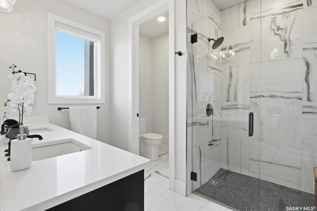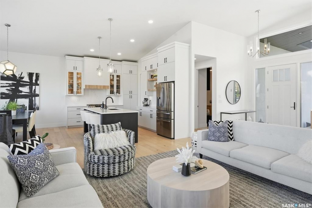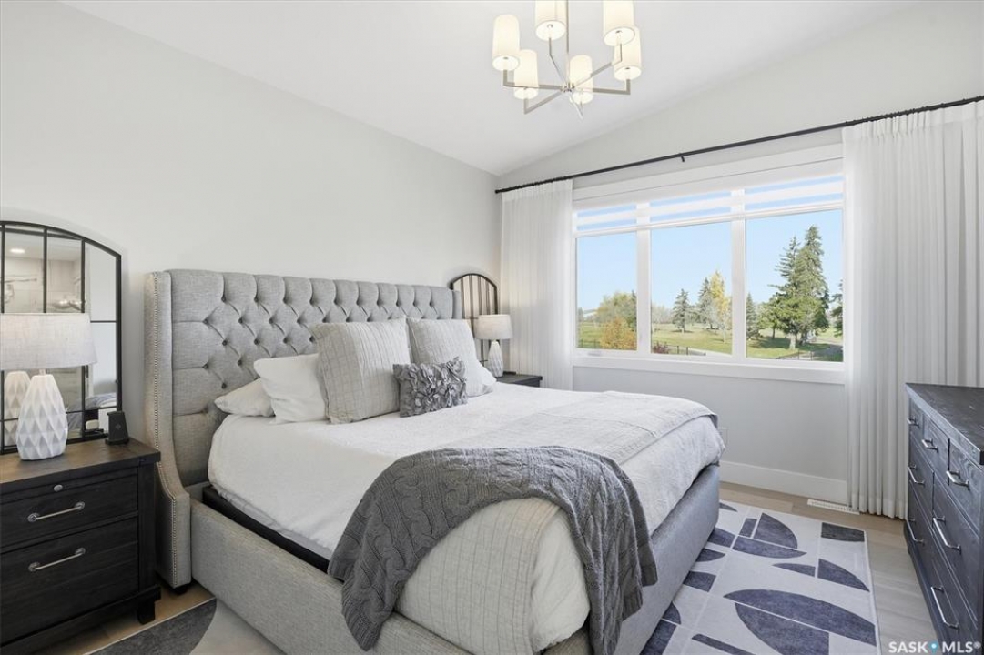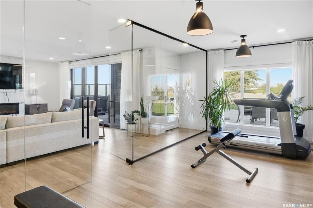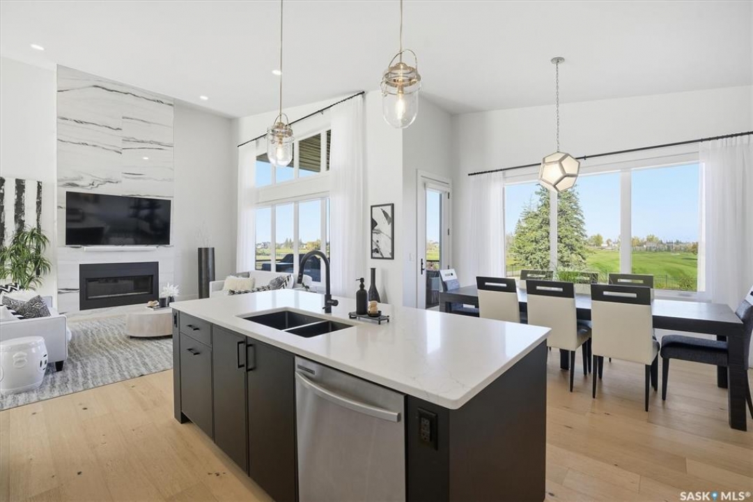 Absolute Stunner! Designer custom D&S Homes walkout bungalow, crafted with precision and showcasing an award-winning floor plan. Offering 1,694 sq' on main plus a fully dev walkout basement, this 4-bed, 3 bath home is set on an expansive 17,000 sq ft lot backing the Greenbryre Golf Course — with no neighbouring homes in sight, only serene views of the course, a landscaped side buffer and open prairie fields. The entry opens into a breathtaking, light-filled great room with ultra-high soaring ceilings and a dramatic feature fireplace. The open-concept living, kitchen, and dining area is an entertainer's dream, wrapped in oversized windows overlooking the course. The chef's kitchen features soft-toned lacquer cabinetry with double-height uppers, quartz counters, full-height quartz backsplash, 5-burner gas range, walk thru pantry, a coffee bar, and a massive central island. The connected dining area is spacious enough for large gatherings and opens to a private covered deck for seamless indoor-outdoor entertaining.The main floor also includes a large boot room, a bright office, outfitted laundry room, and a luxurious primary suite complete with a fully tiled spa-style ensuite, walk-in shower, dual vanity, and walk-in. A striking custom staircase leads to the fully dev walkout level, which mirrors the quality of the main floor. This level offers a sprawling family room with a 2nd fireplace, floor to ceiling windows overlooking the show-stopping backyard, a wet bar with wine storage and seating area, and a dramatic full height glass-walled gym. 2 large bedrooms and a full bathroom complete this level. Additional highlights: • Professionally landscaped grounds • Heated double garage • Zoned in-floor boiler plus forced-air furnace • Instant hot water • Central air • Wired for a hot tub • Underground sprinklers, oversized concrete drive A tasteful masterpiece in design and function — this Greenbryre walkout is spectacular in every detail.