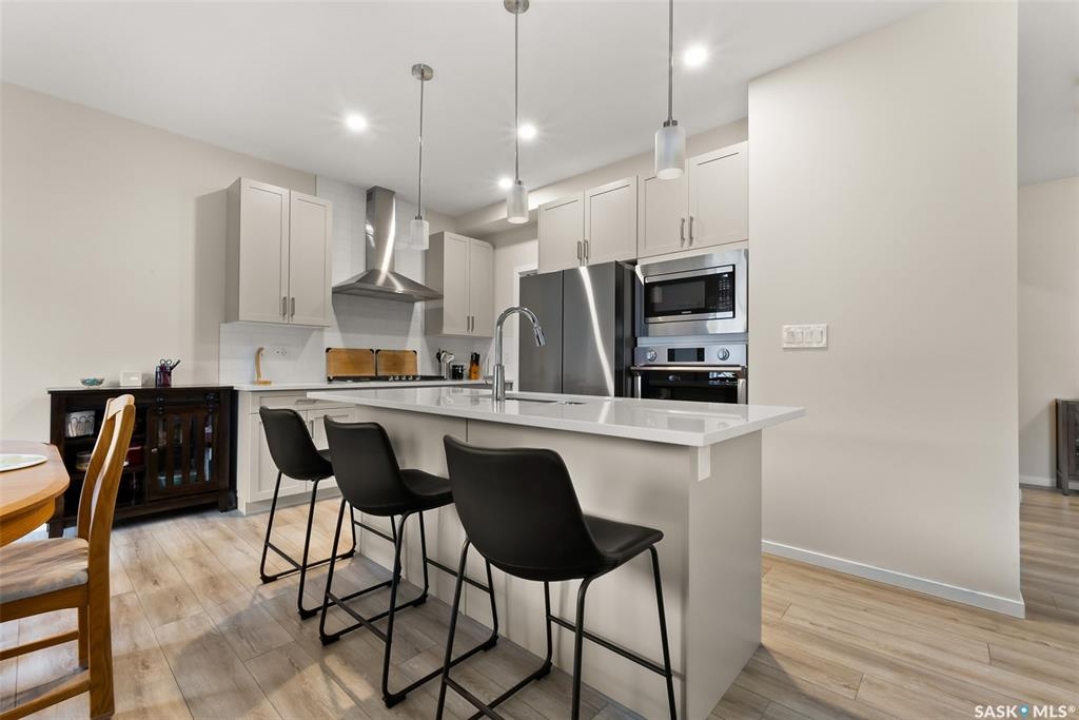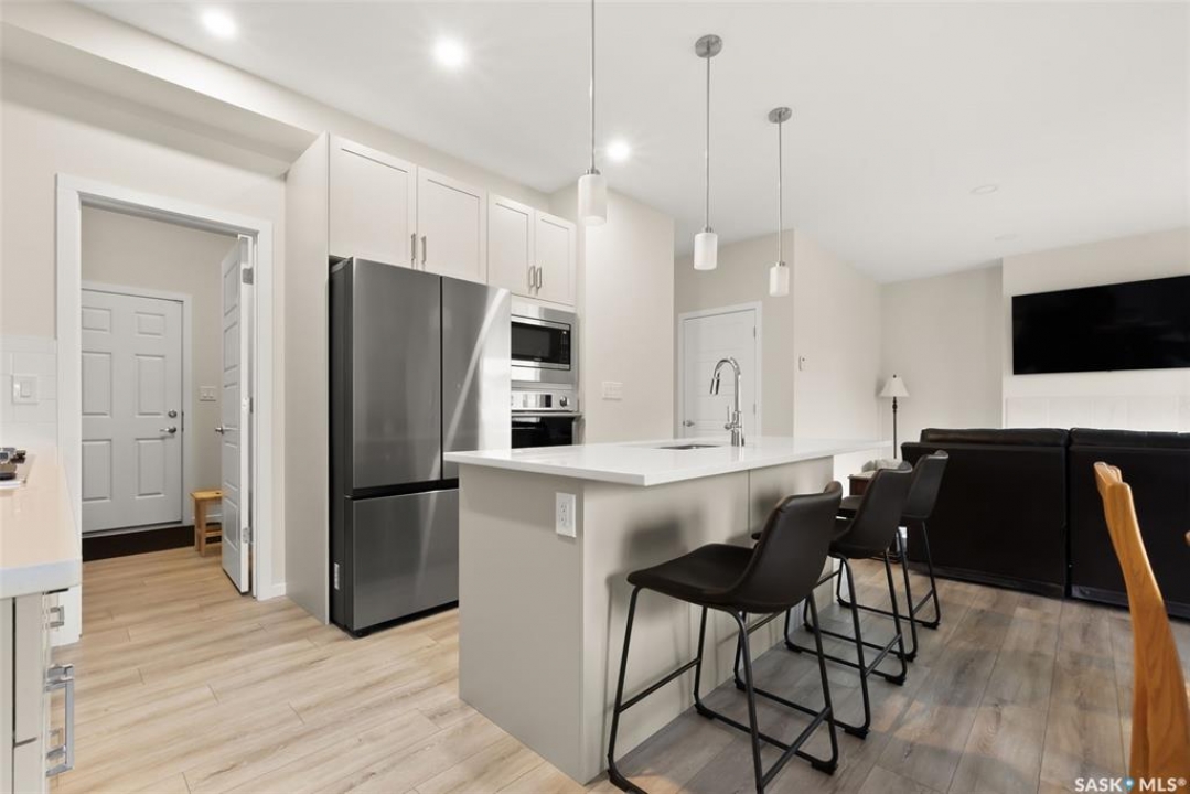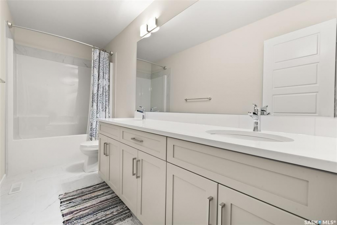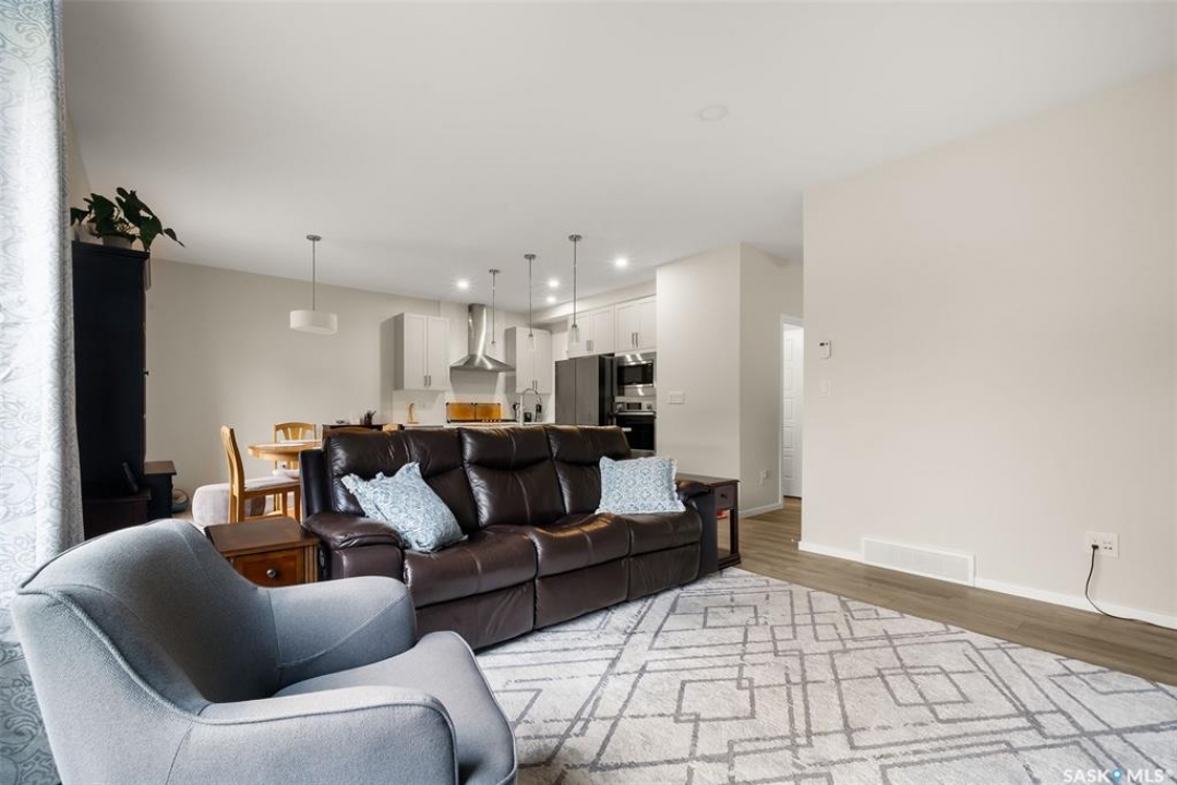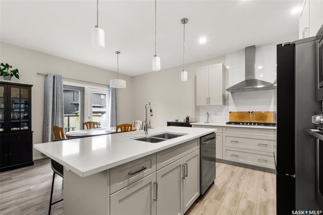Welcome to 5270 Green Crescent E in the Greens on Gardiner—a bright, move-in-ready two-storey with great curb appeal and a finished, heated double garage. The main floor is made for everyday living and easy entertaining: a sun-filled living room with a cozy gas fireplace flows to the dining area and a stylish kitchen with quartz counters, soft-close cabinetry, handy pull-outs, and a sleek 5-burner gas cooktop. A walk-through pantry/mudroom keeps life organized and connects to that dream garage, complete with drywall, heater, and a floor drain. Upstairs, a versatile bonus room (set up for a future sliding barn door, if you like) anchors the family level. The private primary suite offers a walk-in closet and a spa-inspired ensuite with both tub and shower, and it's complemented by two comfortable secondary bedrooms, full bath, and convenient laundry. Thoughtful upgrades put comfort first: triple-pane casement windows with a garden door to the deck, durable vinyl plank flooring, central air, a whole-home surge protector, an air-quality/radon system, and a practical utility sink in the mechanical area. The home is also pre-wired throughout for strong TV/internet connections in the living spaces, bedrooms, bonus room, and basement. Outdoors is truly turn-key. Enjoy summers on the 16' x 12' composite deck (on piles) with a matching composite front step. The yard is fully landscaped and fenced in low-maintenance vinyl with two gates, and there's a quality shed for extra storage. With its maintenance-free exterior siding package and a welcoming street, this home blends style, comfort, and function—perfect for families who want to settle in and start living.