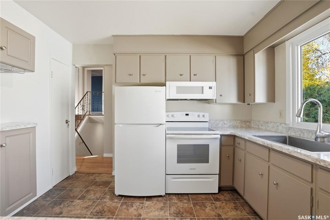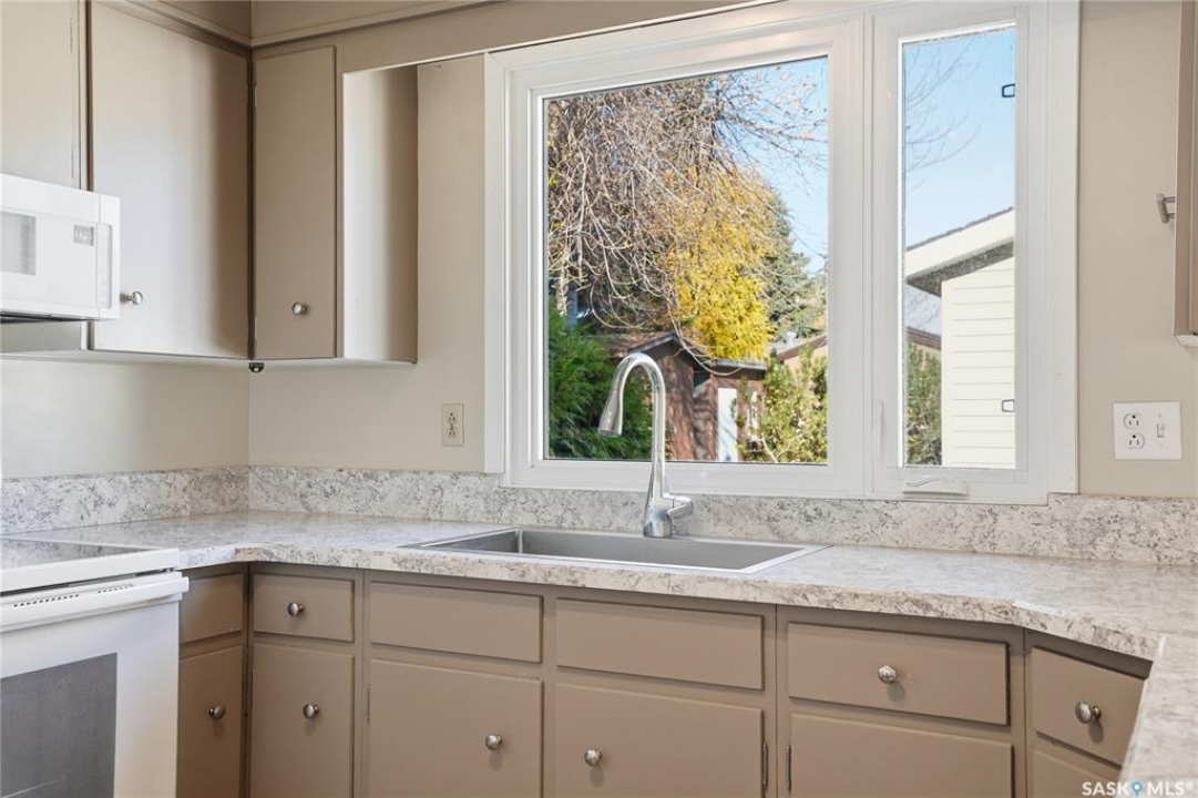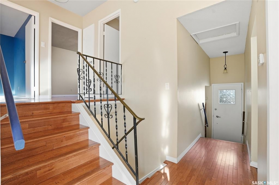 Welcome home to this mid-century modern 4-level split that radiates pride of ownership throughout! This exceptionally well-kept home features a bright living room with an abundance of natural light, a functional kitchen with ample cabinetry, and an inviting dining area on the main floor. The second level offers three generous bedrooms with beautiful hardwood flooring and a 4-piece bathroom. The third level includes a cozy family room, an additional den that could be used as a bedroom, and a renovated 3-piece bathroom. The basement completes the home with a versatile games room — perfect for a home gym, kids' play space, or extra family hangout area. Enjoy the private, fully fenced yard and a large double detached garage for plenty of storage or workspace. Additional features include central air conditioning for year-round comfort.