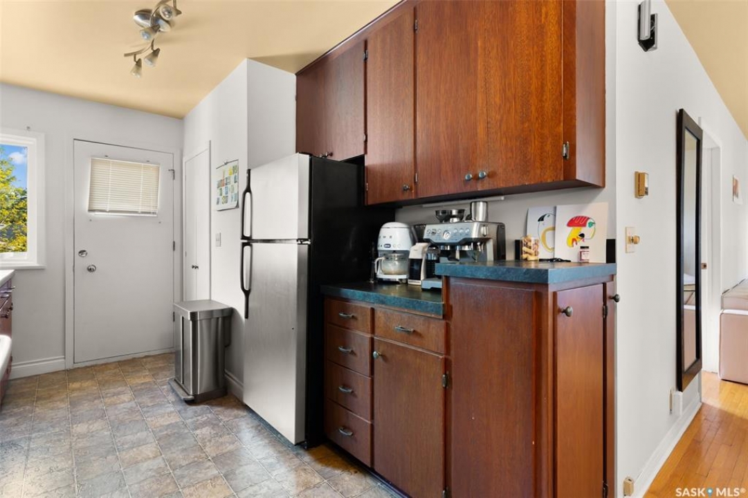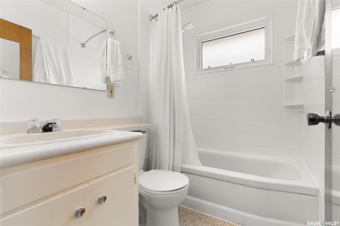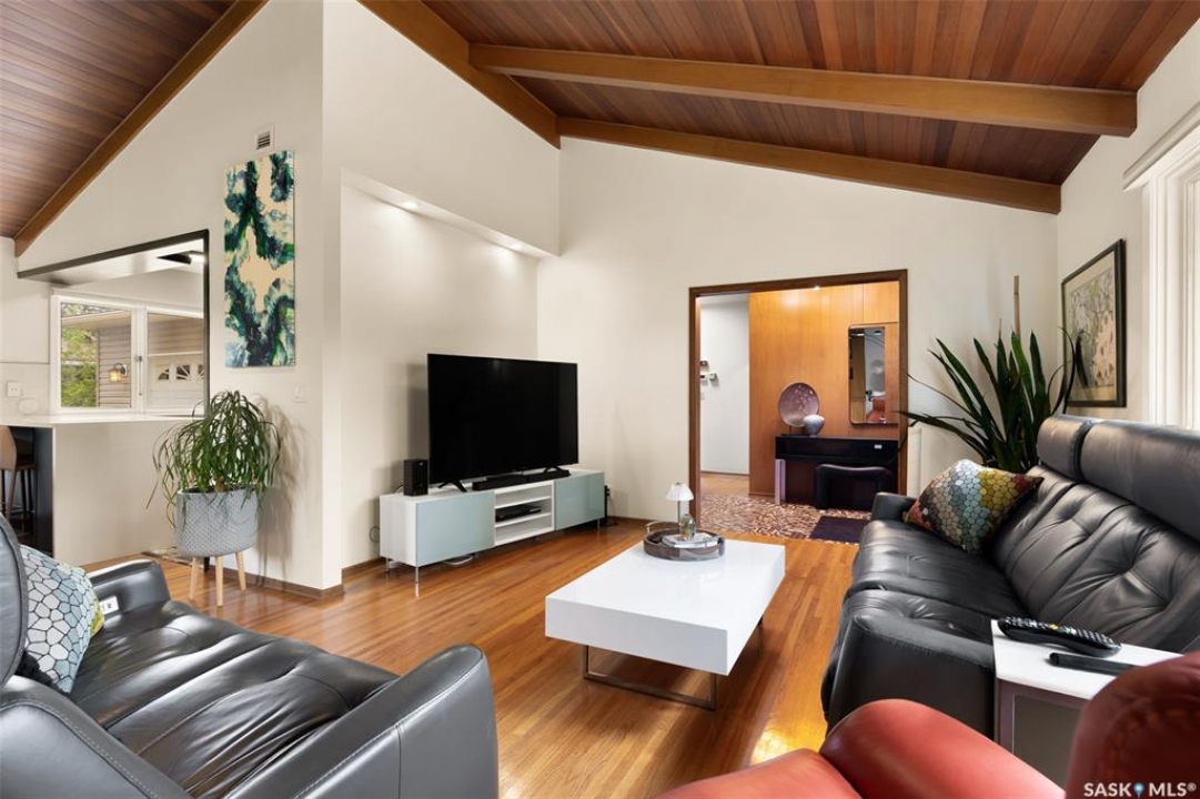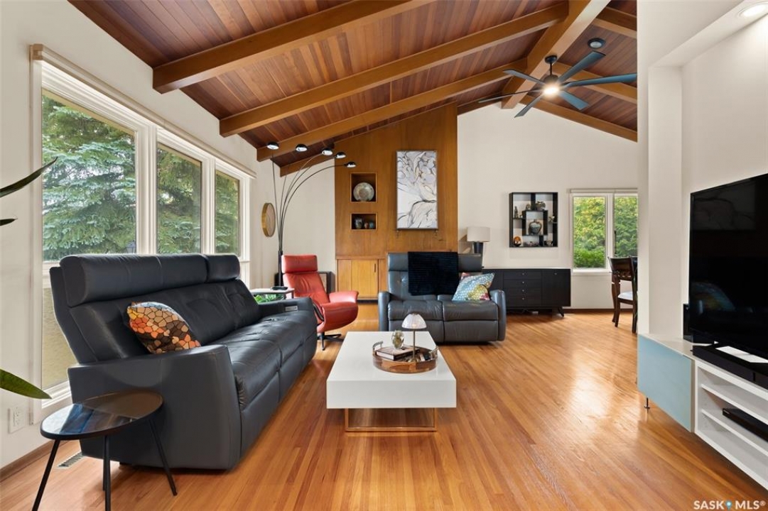 Welcome to a truly unique opportunity in the heart of South Regina. Tucked away on a quiet cul-de-sac overlooking green space, this home offers both privacy and convenience in a prime location. Originally designed as a single residence, the layout now provides a rare opportunity for families in need of an attached nanny suite or multi-generational living. The main home showcases stunning cathedral ceilings that create a bright and open feel, complimented by a series of thoughtful updates in recent years. The refreshed kitchen features stone counters with a waterfall edge, glass tile backsplash, updated flooring, and newer appliances. The primary bedroom is spacious and can double as an exercise space or reading nook. Here garden doors lead to a two-tiered composite deck with pergola and view of the east-facing backyard. Down the hall, a recently remodelled 3-piece bathroom with stylish shower and off the kitchen is access to an attached and heated (20'x26') garage. The fully finished basement adds to the living space with a 2nd bedroom, a den, 4-piece bathroom and laundry. Additional upgrades include modern lighting, a newer furnace, shingles and eaves all within the last 10 years. The second home offers more of the original 60's charm with its own private entrance. Here you will find a cozy space with a galley kitchen and an additional 3 bedrooms and 2 bathrooms. Paved walking paths right out your front door will take you to Kinsmen Park or watch your kids cross the street to school with the recently completed joint-use École St. Pius & Argyle Elementary Schools just a few steps away. Set on an impressive 100ft frontage (with 4 x 25ft lots), this property falls within the City of Regina Secondary Intensification Area which allows for the opportunity for multi-unit residential re-development. With its unique configuration and sought-after location this property presents an incredible opportunity you won't find anywhere else.