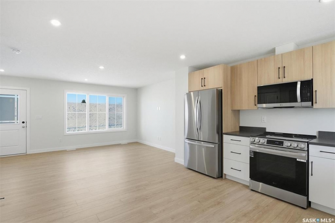 Discover exceptional townhome living in Saskatoon's sought-after Brighton neighbourhood on Asokan Bend. This premium 4-plex, built by North Ridge Development Corporation, offers a great opportunity at an affordable price. The 'Jardin', is an 1120 sq ft townhome that includes 3 bedrooms, 1.5 baths, a kitchen and laundry appliance package, and features your very own private rear vinyl fenced yard! This townhome comes fully landscaped with front yard sod and walkway, low maintenance artificial turf (rear), a concrete patio, front porch, and an off street parking pad. Brighton's family-friendly community provides the perfect balance of urban convenience and suburban tranquility, with easy access to Saskatoon's amenities, parks, schools, and shopping centers. Ideal for first-time buyers, young professionals, or downsizers seeking quality construction and modern design in Saskatoon's fastest-growing east side neighbourhood. Saskatchewan Home Warranty Coverage, GST/PST included in purchase price with applicable rebates to builder. This home is now complete and ready for you!