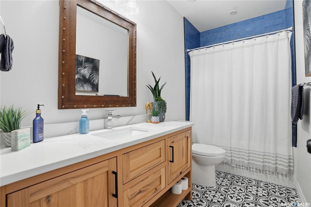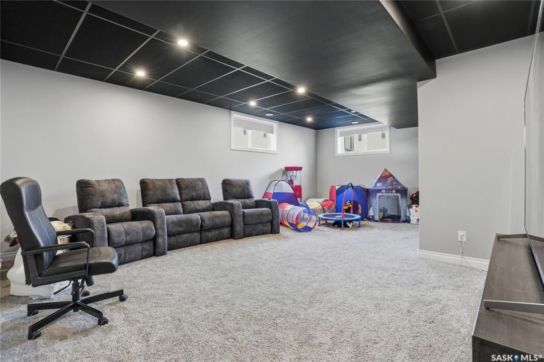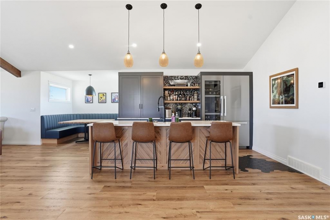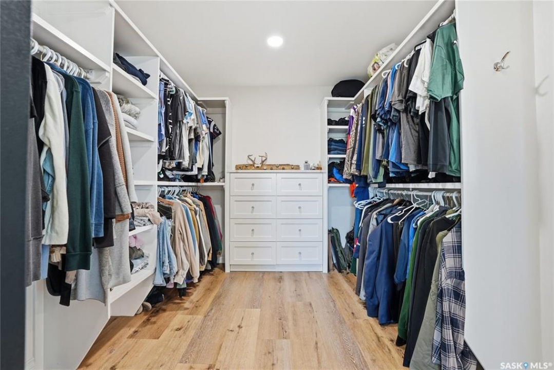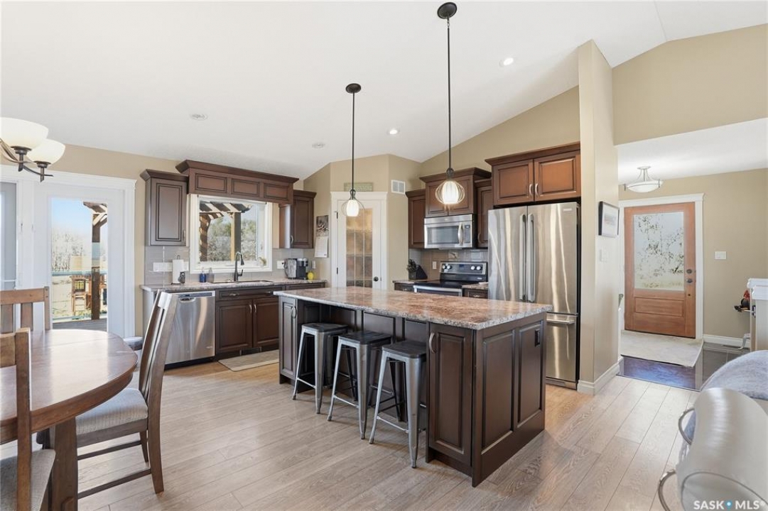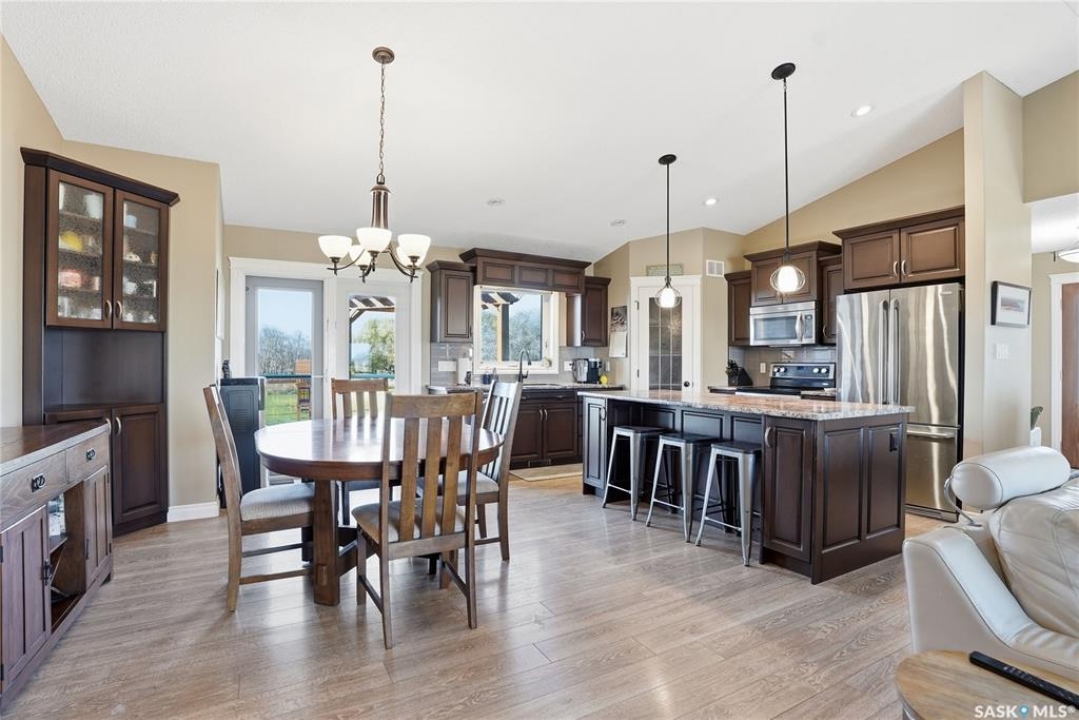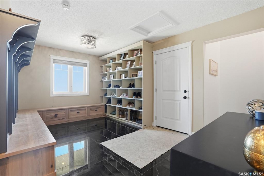 Located southeast of Saskatoon in the RM of Blucher, off Highway 16, along McConnel Road. This stunning 10-acre property offers the perfect blend of luxury and country living. Nestled among scenic farmland, the impressive 4,170 sq ft family home boasts 5 spacious bedrooms and a thoughtfully designed layout ideal for multi-generational living. Step into the grand front foyer, where sleek black tile flooring extends into the main floor laundry and bath. The open-concept main floor is bright and welcoming, featuring a chef-inspired kitchen with wooden cabinetry, tile backsplash, stainless steel appliances, a corner pantry, and a large island perfect for entertaining. Two main-floor bedrooms include one with a private ensuite, while a custom mudroom off the triple heated garage(31'x36') adds practical elegance with built-in shelving and bench storage. Upstairs, the loft showcases a striking glass railing, exposed beams, a cozy stone gas fireplace, and a wet bar complete with tile backsplash, Miele fridge, and dishwasher. The luxurious primary suite is a true retreat with vaulted ceilings, white paneling, a beautiful chandelier, and a spa-like ensuite, featuring white marble tile, quartz counters, double sinks, a glass-enclosed rain shower, heated floors and a corner Jacuzzi tub. The custom walk-in closet offers abundant built-in storage. The fully developed basement includes a large family room, a 4-piece bath with heated floors, two additional bedrooms, and a mechanical room with drip system, a/c, HRV. The 36' x 31' triple heated garage (12' ceilings) is complemented with a bonus space—a home gym or studio—with floor-to-ceiling windows and 12' ceilings. Perfect for fitness or yoga classes. Start the day with morning coffee on the east-facing deck off the kitchen and enjoy serene prairie sunsets from the west-facing back deck or on the stamped concrete patio roasting hotdogs and marshmallows. Call Today. Must be viewed to be truly appreciated.