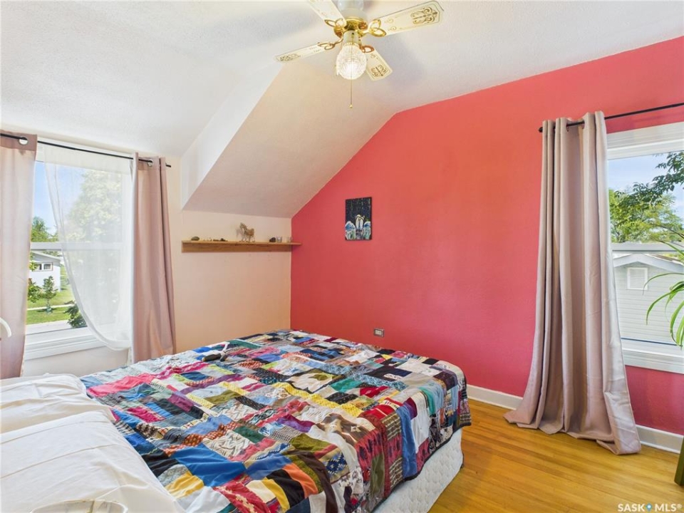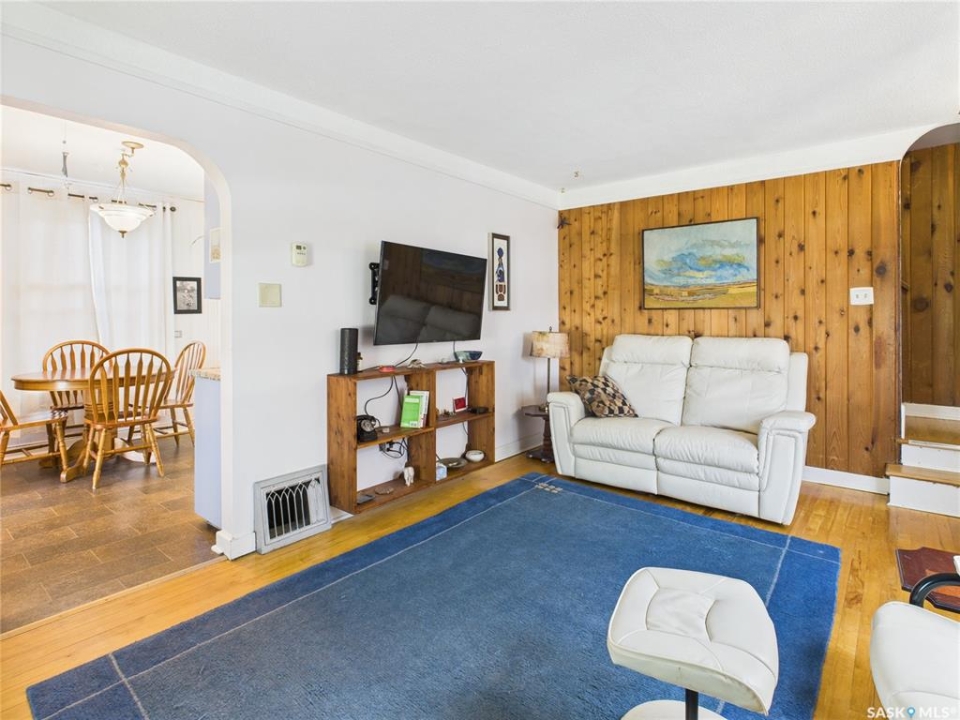 This charming 1 � storey home in Westview is full of character, charm and warmth. With three bedrooms upstairs and 885 square feet of smartly designed living space, it's the perfect fit for anyone wanting both charm and practicality. The main floor features arched doorways, hardwood floors in the living room, and a peek-through from the kitchen to the dining room that makes entertaining feel easy and connected - not to mention the wood stove for snuggling up on cold winter nights! Many of the windows have been upgraded in recent years, with the most recent being the living room window installed this spring. The large bathroom has all newer features, plus plenty of space to get ready each morning. Outside, the fully fenced yard is surrounded by mature trees and colourful wildflowers in the front garden, along with garden beds ready for herbs, vegetables, or more flowers. The location is ideal for those who love the outdoors, with the Rotary Trail just steps away for morning walks or evening bike rides. It also offers a quick and convenient commute to the Saskatchewan Penitentiary, making it an excellent option for those relocating to work there. With its character details and smart layout, this move-in ready (and oh-so-sweet!) home is ready to welcome its next owner.