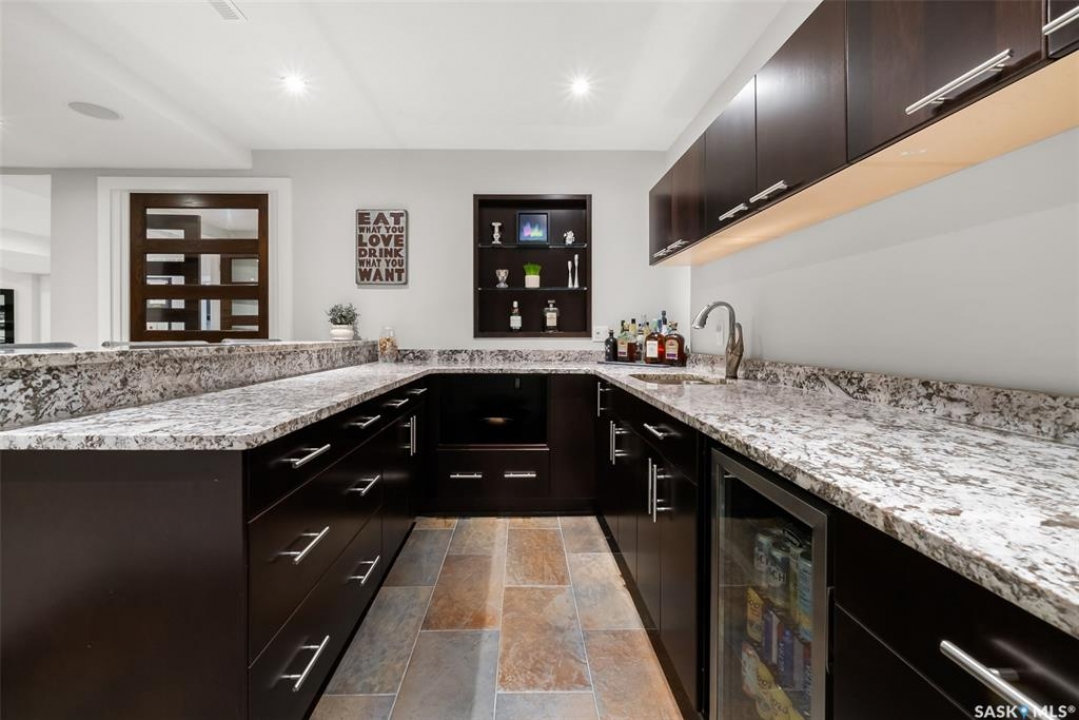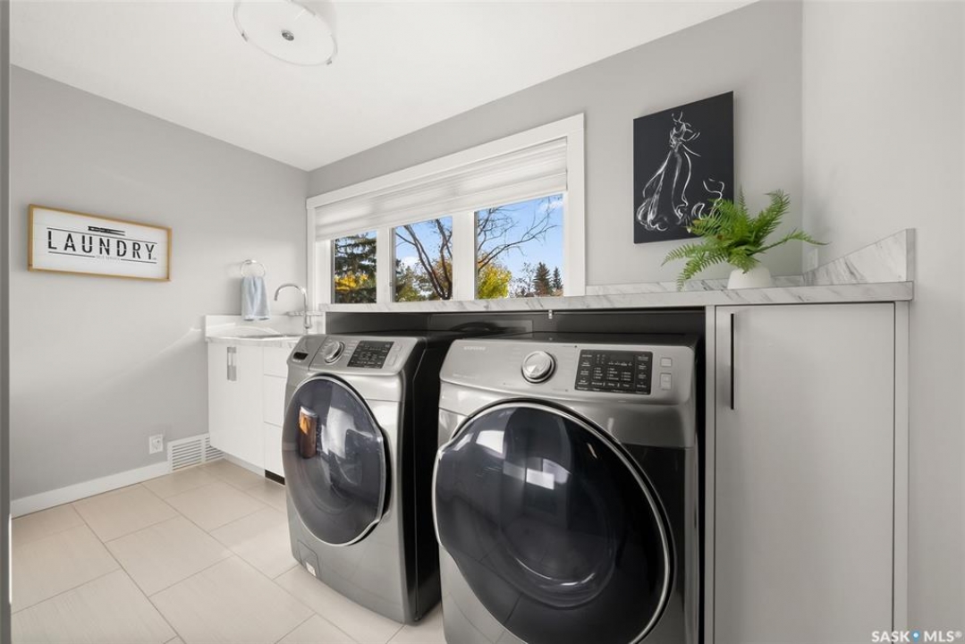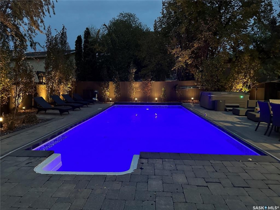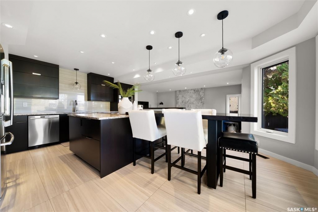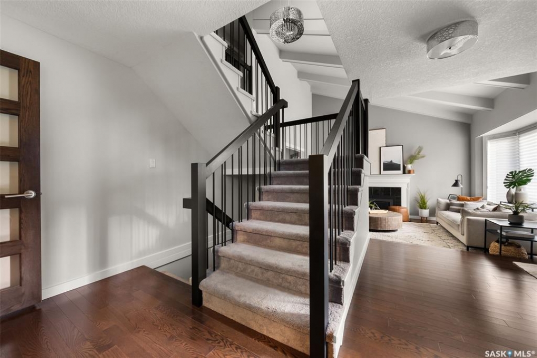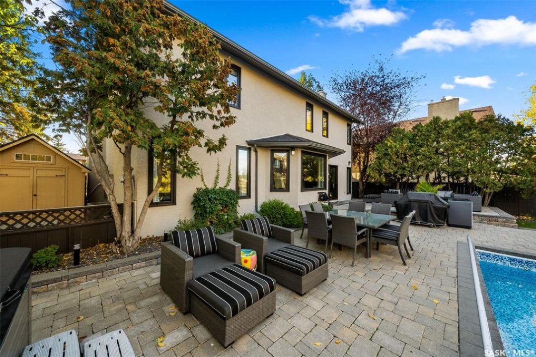 Tucked away on a quiet street in desirable University Park East, this elegantly redesigned 2-storey home offers a rare blend of luxury, comfort, & connection to nature, backing green space & scenic walking paths. The formal living room welcomes you with vaulted ceilings, a gas fireplace with a custom hearth & large windows that fill the space with natural light. It flows seamlessly into the formal dining area, an inviting setting for gatherings. The completely upgraded kitchen is a true showpiece, featuring quartz countertops, Electrolux appliances, tile flooring, and a one-of-a-kind Zapatero wood plank live-edge overhang. Just off the kitchen is a comfortable family room, perfect for relaxing evenings, anchored by a gas fireplace with a marble surround. A custom half bath & mudroom complete the main level. Upstairs are 3 spacious bedrooms and 2 full bathrooms. The primary suite is a luxurious retreat, with a spa-inspired 5-piece ensuite featuring dual sinks, a custom tile shower, and a built-in closet system. Laundry has been thoughtfully relocated upstairs for convenience, & the secondary bedrooms include custom closets. The fully developed basement, built on a structural slab with in-floor heat, is made for entertaining — with an impressive wet bar, a rec room with a gas fireplace & a custom entertainment unit. There's also a 4th bedroom & a 3-piece bath with a large tiled shower. The heated garage is a dream — complete with luxury vinyl tile flooring, custom shelving, insulated 2x6 walls, a new smart garage door, & even a floor pit for the hobbyist or car enthusiast. Step outside to your private backyard oasis, a “secret garden” designed for relaxation. It features a 16x36 ft in-ground pool with upgraded heater, liner, locking safety cover, winter cover, and color-changing pool light. The yard also includes a paving stone patio, wired lighting, mature trees, and lush landscaping for complete tranquility. No detail has been overlooked in this stunning renovation.