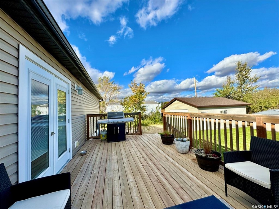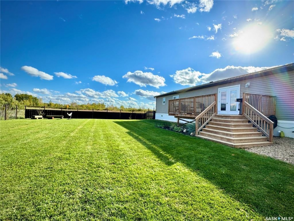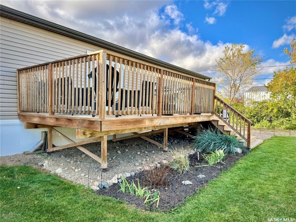 If you've been searching for a home that blends convenience, space, and style — this one checks all the boxes! Ideally located on the southeast edge of Stockholm, 100 Macdonald Street offers the perfect balance of peaceful prairie views and small-town connection. Watch the sunrise with your morning coffee and catch those cotton-candy sunsets from your picture window in the evening — it doesn't get more Saskatchewan than this. This modern modular home features 3 spacious bedrooms and 2 full bathrooms, designed with everyday comfort in mind. Vaulted ceilings, large windows, and a show-stopping kitchen straight from a magazine make the main living area the heart of the home. The thoughtful split floor plan provides privacy with the primary suite on one end — complete with a walk-in closet and oversized 4-piece ensuite — and the kids' or guest rooms tucked neatly on the other. Storage is abundant, and every room feels open and inviting. Outside, you'll love the space and privacy of the fenced backyard, where no neighbors are in sight. The large deck is perfect for barbecues and summer evenings, while the newly built double garage offers extra parking and workshop potential. With the school just down the street and quick access to trails for ATVs or snowmobiles, this property truly gives you the best of small-town living. Homes like this don't come along often — book your personal tour today!