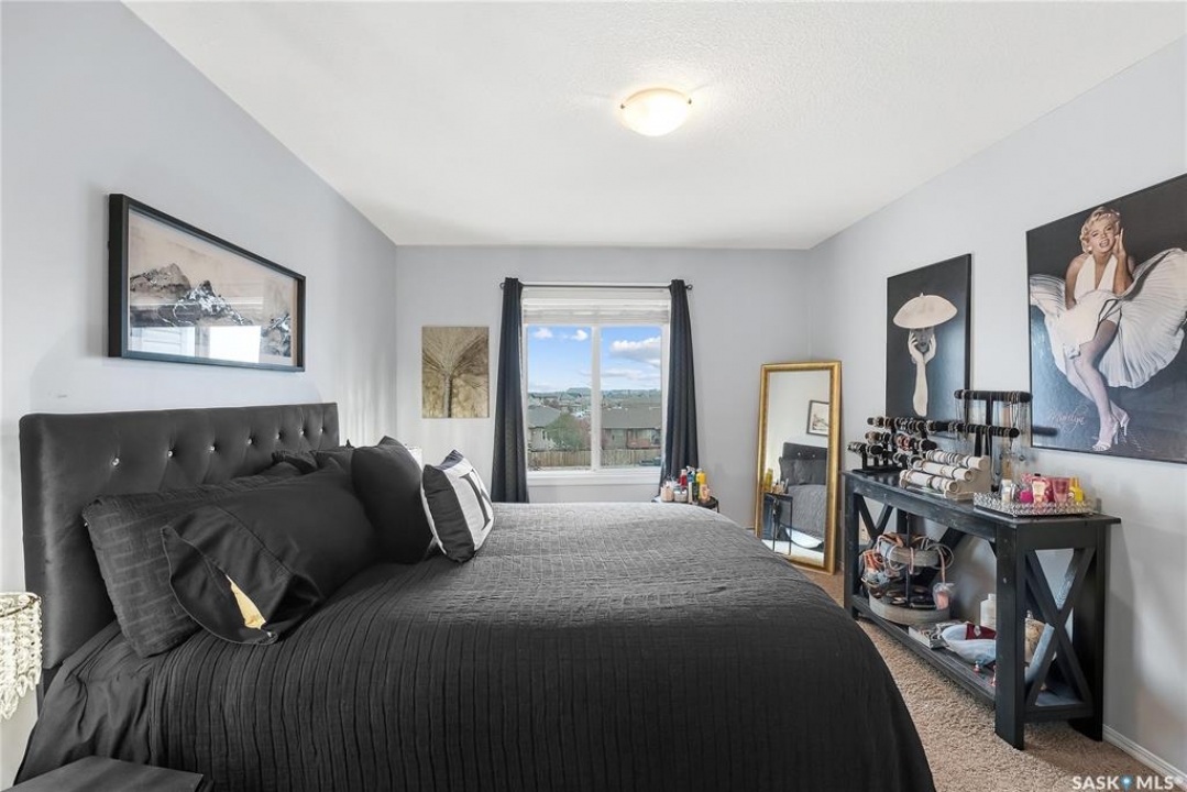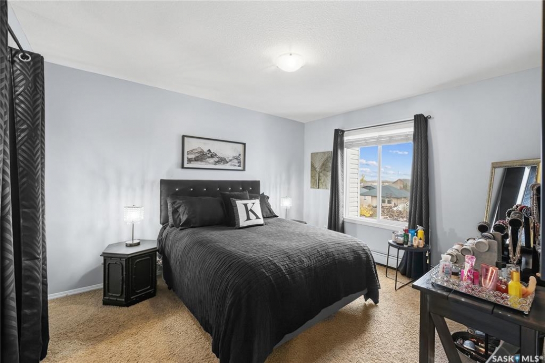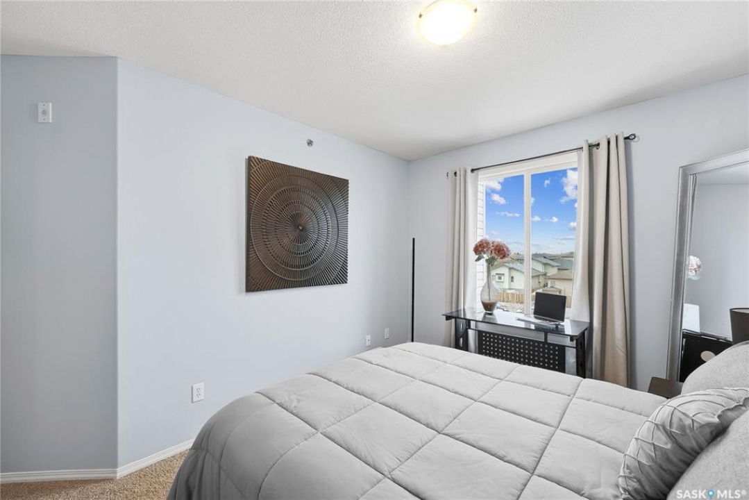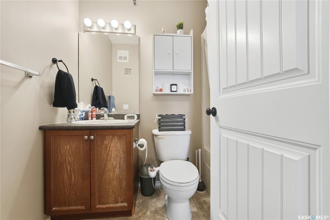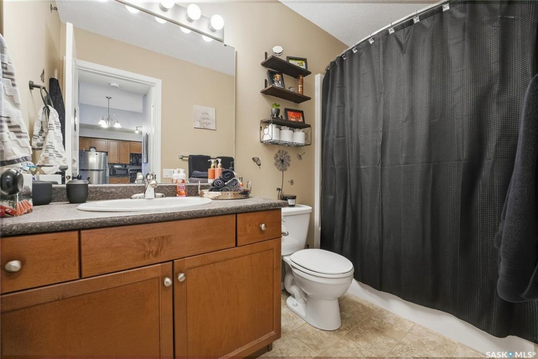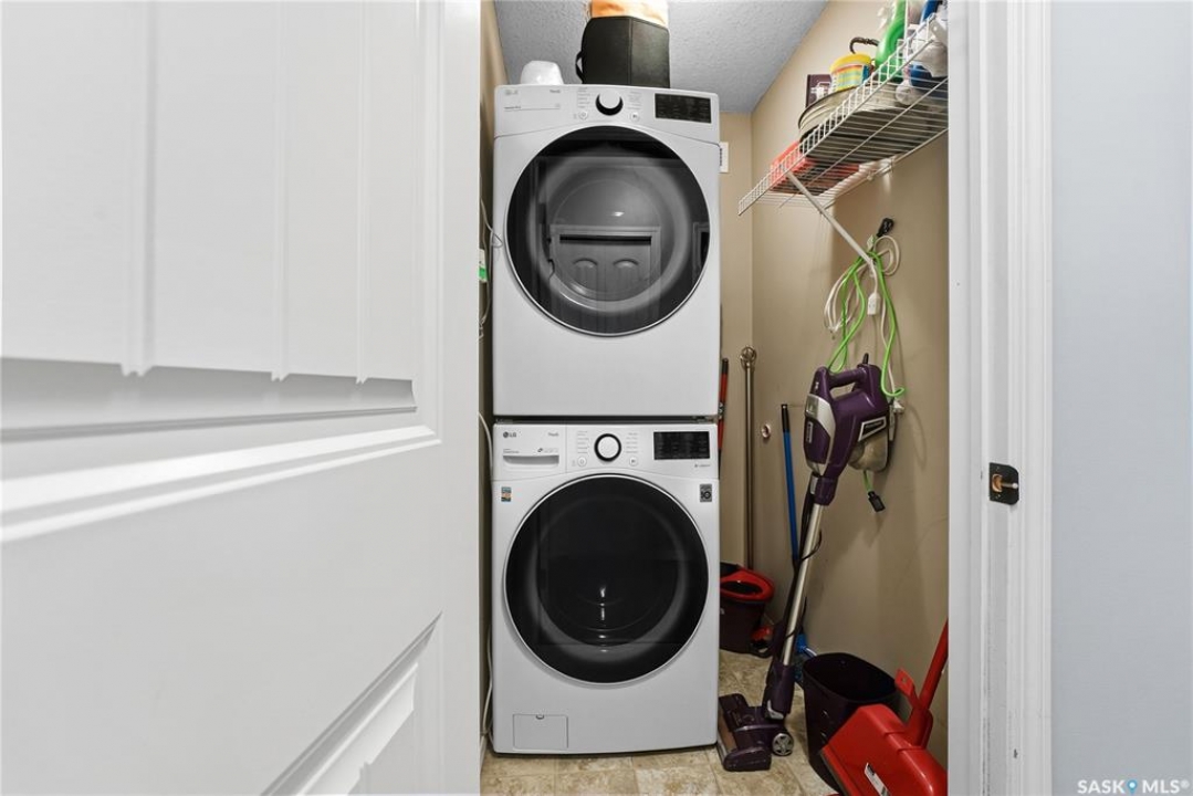 Welcome to The Lofts on Stockton—a well-managed condo in Lakeridge, steps to north-end shopping, parks, and transit. This bright 2 bed, 2 bath apartment offers 826 sq. ft. with soaring living-room ceiling lines, a transom window, and a garden door to your private balcony with skyline views. Thoughtful finishes include warm laminate floors in the main living areas, plush carpet in the bedrooms, and convenient in-suite laundry. The open kitchen provides excellent cabinet space and comes complete with the appliances. A wall A/C helps keep summers comfortable. The generous primary suite features a walk-through closet into a full 4-piece ensuite, while the second bedroom sits beside another full bath—perfect for guests, roommates, or a home office. Ownership is easy here: condo fees of $352/month include common & exterior building maintenance, heat, water, sewer, reserve fund, lawn care, snow removal, and garbage service. There is also a large storage room attached to the balcony. The unit sits on the 4th floor of the building, offering extra light and privacy. Whether you're a first-time buyer, downsizer, or investor, this move-in-ready condo delivers space, convenience, and value in a prime north-Regina location. NOTE: Fridge, Washer & Dryer were updated in 2025.