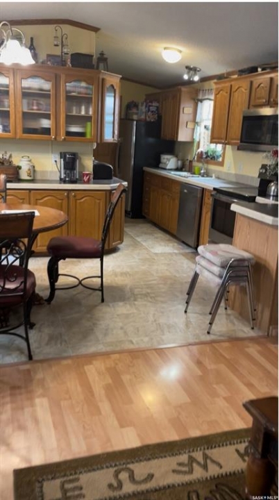 Welcome home, this 3 bedroom, 2 bathroom open concept home is ready for its next owners. The large master bedroom has a 5 pce en-suite ( a sink for him and her!) and walk in closet. Fully fenced yard that has been specially cared for that includes a fish pond and raised flower beds and numerous perennials. This home has lots of storage and includes a storage shed outback as well. Move in ready! Water, sewer, garbage and recycling are included with monthly lot rental. Contact your agent today for your personal viewing.
