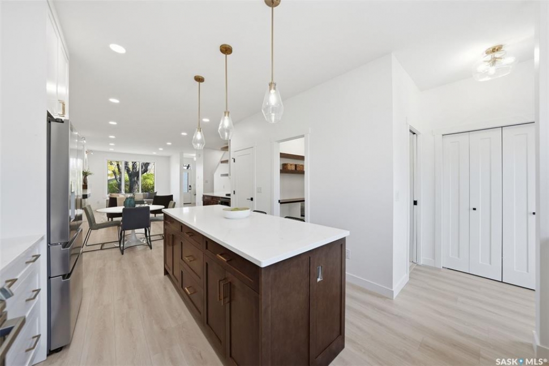 Here is your dream property just mere steps from the river and connected to Saskatchewan Crescent. The easy access to downtown and close to all amenities makes this location very desirable. Situated at 1914 Herman Ave is this new custom 1672sqft two storey outfitted with high end finishings and many features throughout, including a double detached garage and even basement suite ready! The curb appeal welcomes you with Hardie Board siding on the front of the home accented with a front covered landing. Inside the main floor you are greeted with 9' ceilings with huge windows at both ends of the home allowing for an abundance of natural light. The floorplan is an open concept layout with an upgraded designer kitchen, white cabinets accented with a maple stained island topped with quartz counters. There is a full kitchen appliance package included. There is a full size walkin pantry to host all your supplies for cooking and entertaining to help keep you fully organized. Extra features such as a built in coffee/drink bar with an under counter refrigerator helps make this home feel luxurious. The living room boasts custom wall features & a 3 sided fireplace. Upstairs hosts your 3 bedrooms & 2 more bathrooms & laundry off the bedrooms. Also featured upstairs is another living space with the bonus room - with a feature wall to tie it all together. The primary bedroom has a walkin closet & a 3pc ensuite bathroom with a tiled walkin shower. Downstairs you have the added feature of hosting a potential basement suite with separate entrance, boasting 9' ceiling, secondary panel, and roughed in plumbing - this is a very easy location/community to be able to rent out your basement suite for that extra mortgage helper! This home also features a 20x22 garage in the rear of the lot. This home has so many custom features throughout keeping the flow consistent and impressive. Possession is ready to go! Contact our Team today for more info on this home.