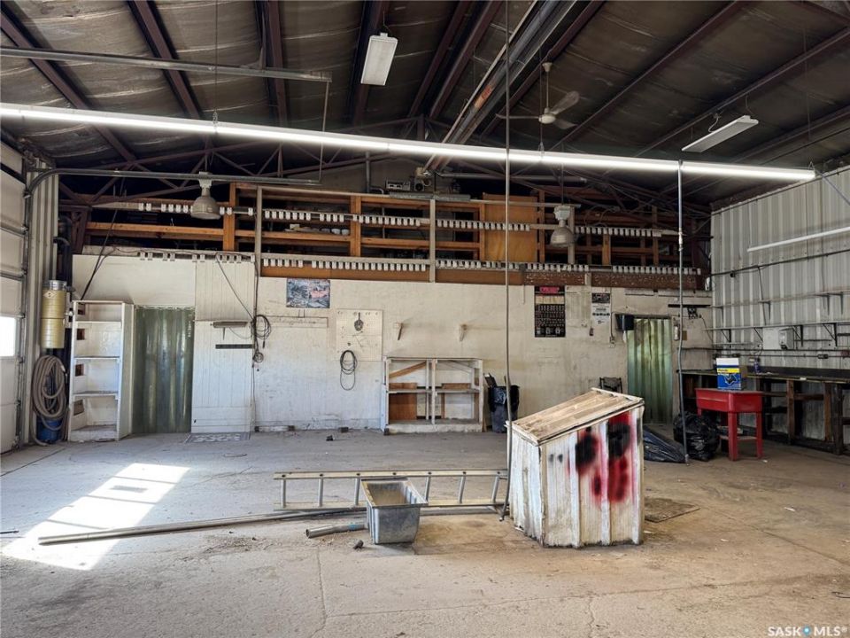 Located right in downtown Leroy, this commercial property at 124-126?Aspen Street is ideal for trades, service-based operations, or light industrial use. With 150 feet of street frontage, the site includes two large service bays with overhead doors, a paved apron, and street parking, offering excellent functionality and access for both staff and customers. The front of the building features a showroom, perfect for retail display or client-facing services, along with a two-piece washroom for convenience. A mezzanine level above includes an office and extra storage space, keeping administration separate from shop activities. Radiant heat efficiently warms the shop area, making it usable year-round. At the back, there's a detached two-car garage, plus a separate storage building on the side of the lot—great for equipment, materials, or additional vehicles. This property is being sold “as-is.” The seller makes no warranties or representations about the condition of the property. Buyers are encouraged to complete their own due diligence. Buyer to verify property line.
