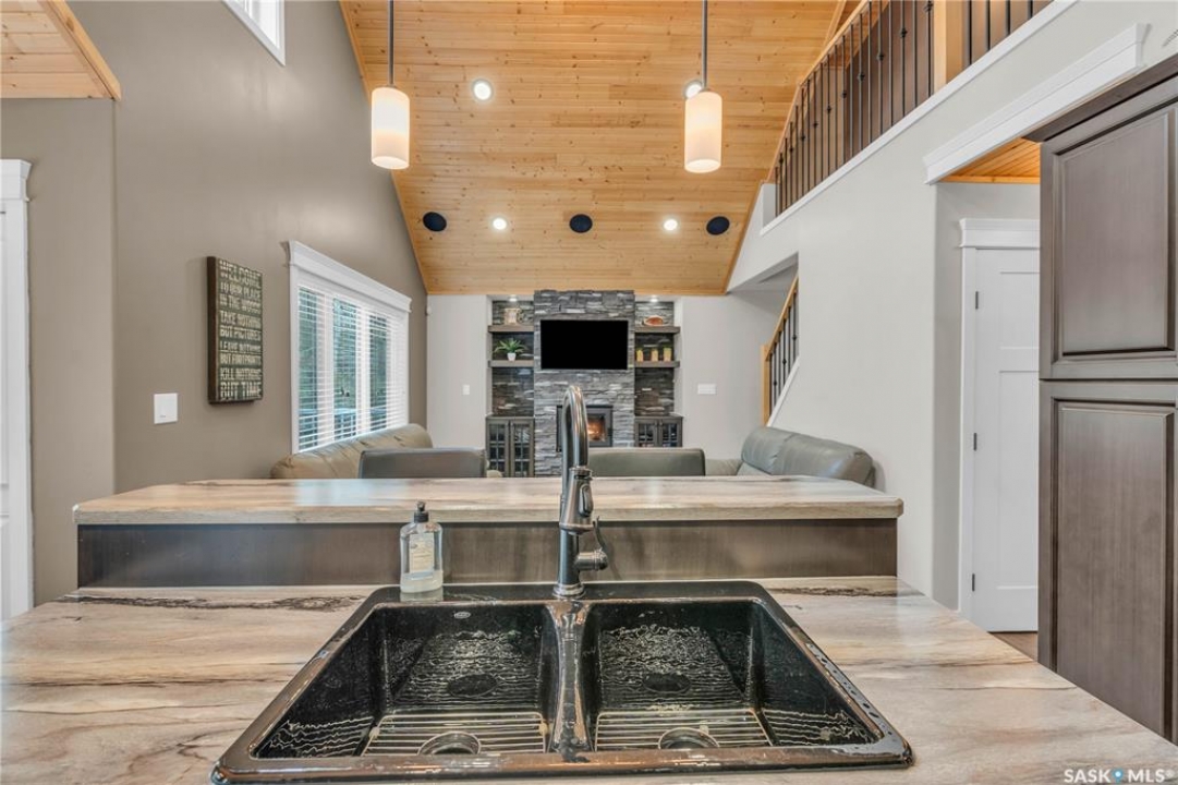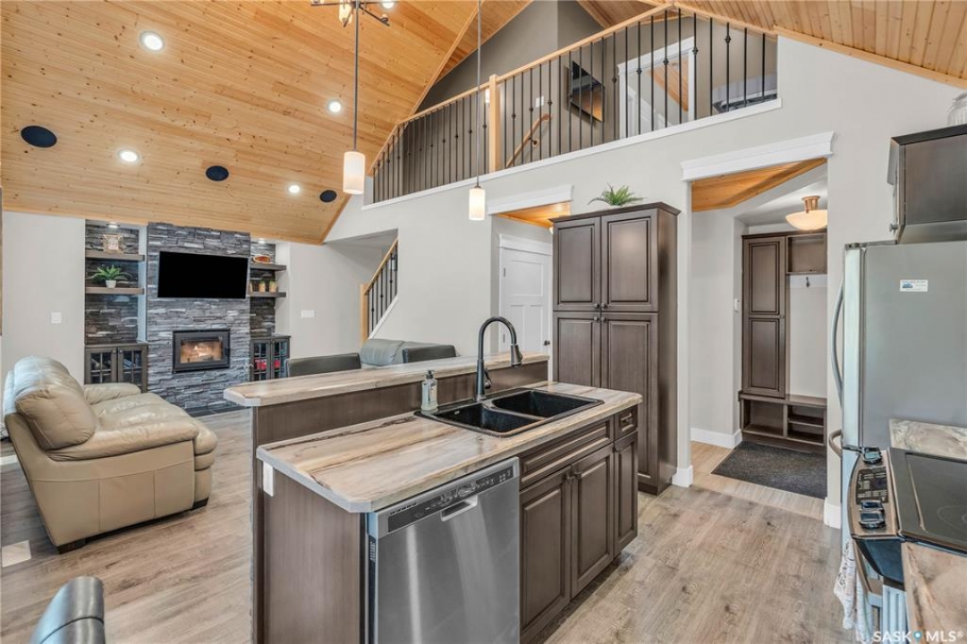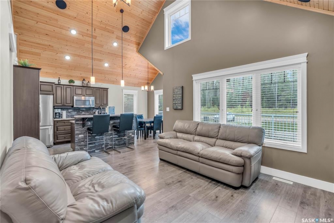 Escape to this stunning winterized cabin, perfectly positioned for all your seasonal adventures! With snowmobile trails and groomed cross-country paths just steps from your door, plus fantastic ice fishing opportunities, this property is a true outdoor enthusiast's dream. Turn key and nestled among mature trees and directly across from crown land, this 1.5-story gem offers unparalleled privacy, backing onto a serene bay. Just a short walk to the beach and close to a golf course, it's the ideal retreat for nature lovers. Step inside to discover an inviting foyer that flows into a breathtaking open kitchen and great room, highlighted by vaulted ceilings that create a spacious ambiance. Elegant touches abound, from tongue and groove pine accents to espresso cabinets adorned with a beautiful backsplash. The kitchen features stainless steel appliances and a generous island, perfect for gathering with family and friends. The garden door opens to a wrap-around deck, complete with a gas BBQ hookup and aluminum railing—an entertainer's paradise. The great room, with its cozy wood-burning fireplace and built-in bookshelves, is designed for family living and creating unforgettable memories. On the main floor, you'll find two spacious bedrooms, a four-piece bath, and a convenient three-piece ensuite. Upstairs, a loft overlooks the great room, providing a connected yet private space. The primary suite is a true retreat, boasting a massive walk-in closet and a luxurious five-piece ensuite that transforms every day into a spa day. Additional features include a 4ft crawl space with a concrete floor, a holding tank, an on-demand hot water heater, and a spacious 24x32-foot garage with a 12-foot door, ensuring all your storage needs are met. The back deck is equipped with built-in speakers, perfect for enjoying music during your outdoor gatherings. This exceptional cabin is designed for family enjoyment in one of Canada's premier destination spots. Don't miss out!