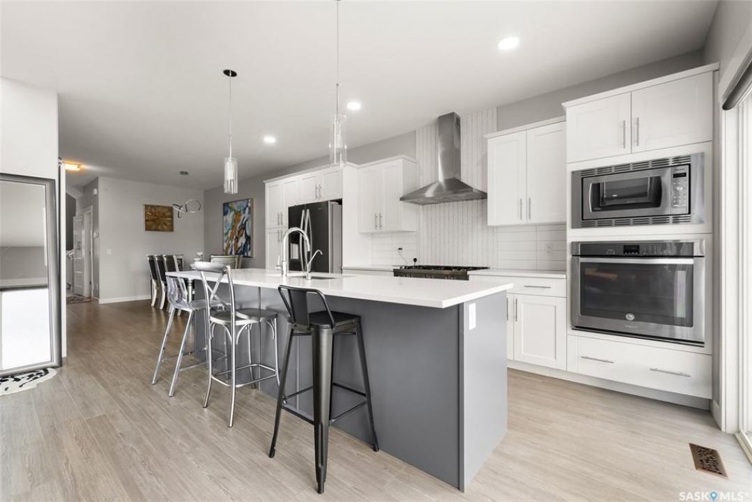 Welcome to this stunning 2031 sqft, two-story custom-built home by Glenrose, situated on a quiet crescent and backing directly onto serene green space. Constructed in 2018 on piles for superior stability, this "Grayson" model boasts exceptional features including a triple-car garage, triple-pane windows, and an open web floor truss system. You are greeted by a grand two-storey foyer that leads into a spectacular open-concept area, where the living room and dining room are flooded with natural light from ample windows and feature an impressive 18-foot ceiling. The stunning kitchen is an entertainer's dream, centered around a large island with quartz countertops, a tile backsplash, and high-end appliances including a 36" gas cooktop, built-in oven and microwave, dishwasher, and refrigerator. Patio doors off the kitchen provide a beautiful, uninterrupted view of the environmental reserve. Step outside to a low-maintenance, professionally landscaped backyard complete with a hot tub and a generous composite deck, perfect for relaxation and hosting guests. Practicality is ensured with a main-floor mudroom featuring a convenient laundry, discreetly closed off by a sliding barn door. Upstairs, discover a well-appointed bonus room, a luxurious master suite with a walk-in closet and a large ensuite, two additional spacious bedrooms, and a 4-piece bathroom—all bathrooms feature elegant quartz countertops. The massive triple-car garage offers abundant space for vehicles and a workshop. The fully ready-to-develop basement presents a fantastic opportunity to easily add even more living space to suit your needs. Don't miss your chance to own this impeccable home—call your agent to schedule a private tour today.