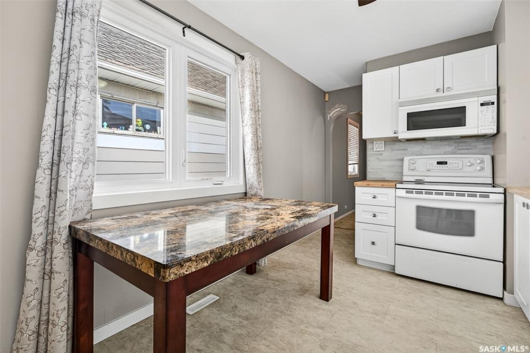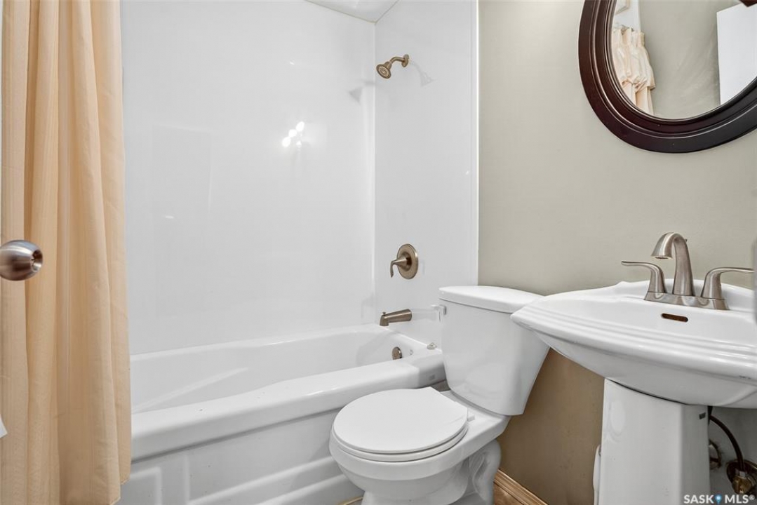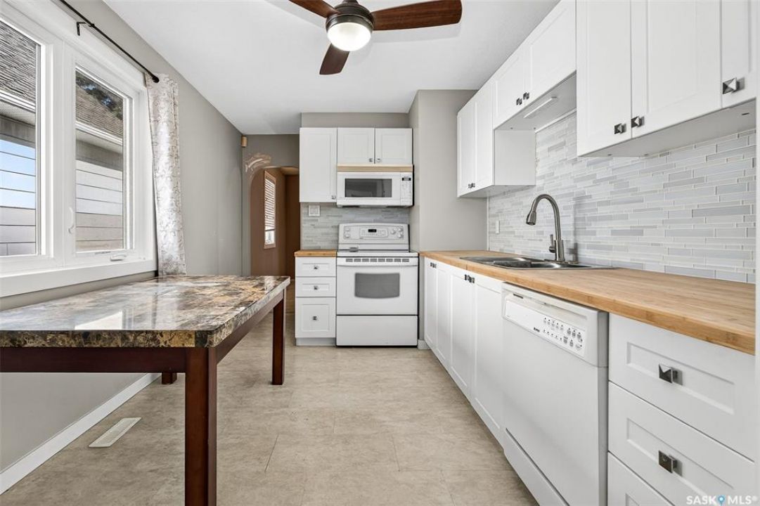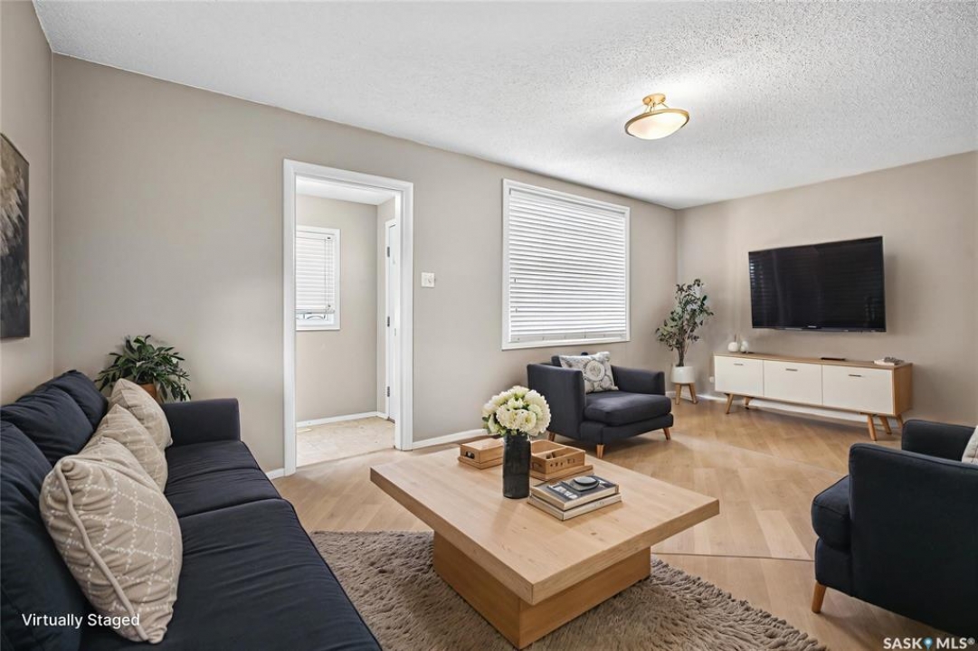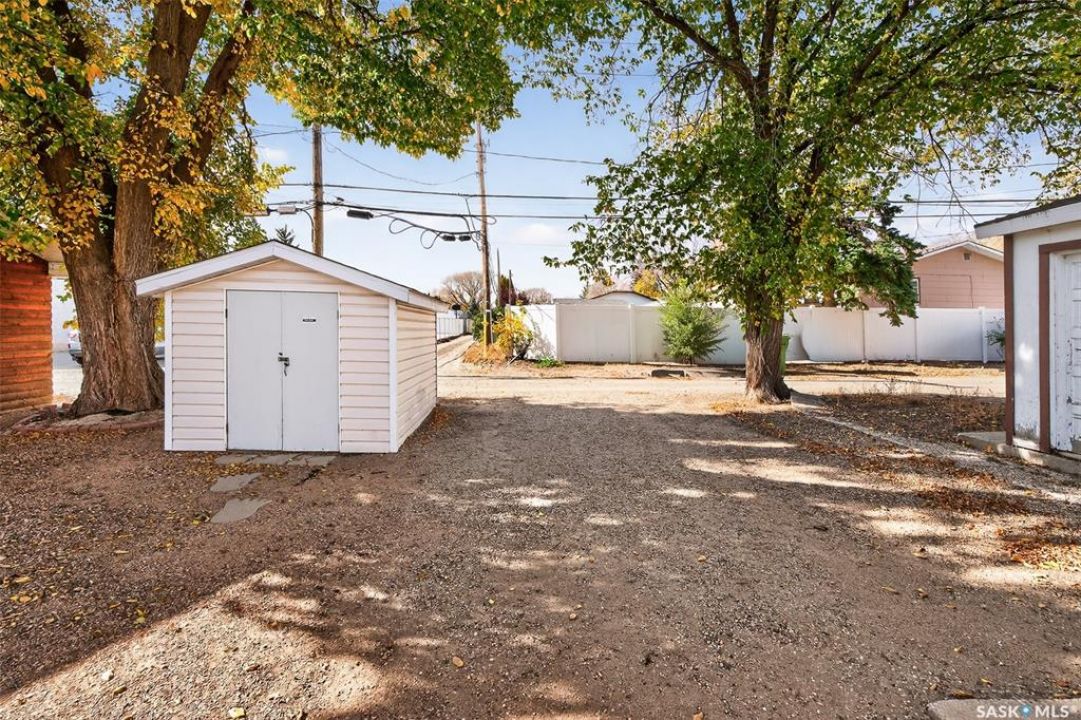 Charming 3-Bedroom Bungalow — Ideal for First-Time Buyers or Investors! This well-maintained 845 sq. ft. bungalow is an excellent opportunity for a first-time homebuyer or a great addition to a revenue portfolio. The main level offers a comfortable layout featuring a spacious family room and living room, perfect for relaxing or entertaining. The kitchen and dining area flow together nicely and feature clean white cabinetry that adds a bright, modern touch. Completing the main floor is one bedroom and a four-piece bathroom. The lower level offers additional living space with two bedrooms, another four-piece bathroom, and a convenient utility/mechanical/laundry area. Outside, the property is fully xeriscape for low-maintenance living — no mowing or yard work required. A storage shed provides extra space for tools and equipment, and there is one dedicated parking spot at the back. This home is also closely located to 3 elementary schools, public transit, convenience stores and Sask PolyTech. Some updates this home has seen are: updated windows, HE furnace. Whether you're looking to enter the housing market or invest in a rental property, this home offers comfort, convenience, and value.