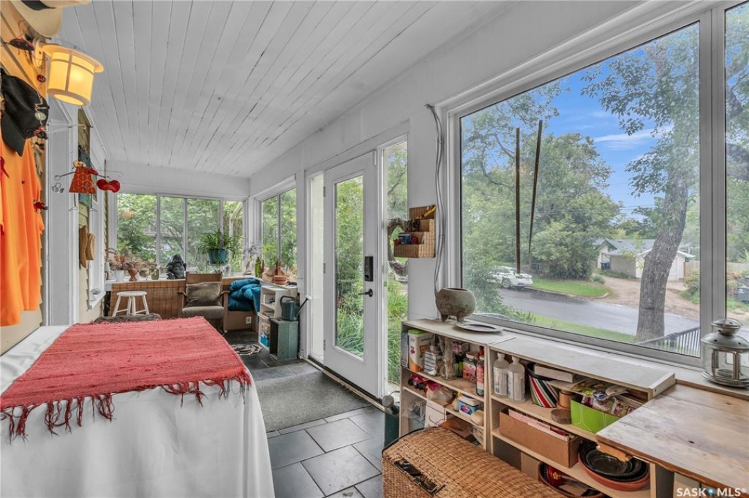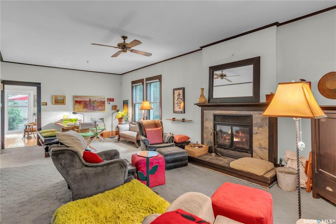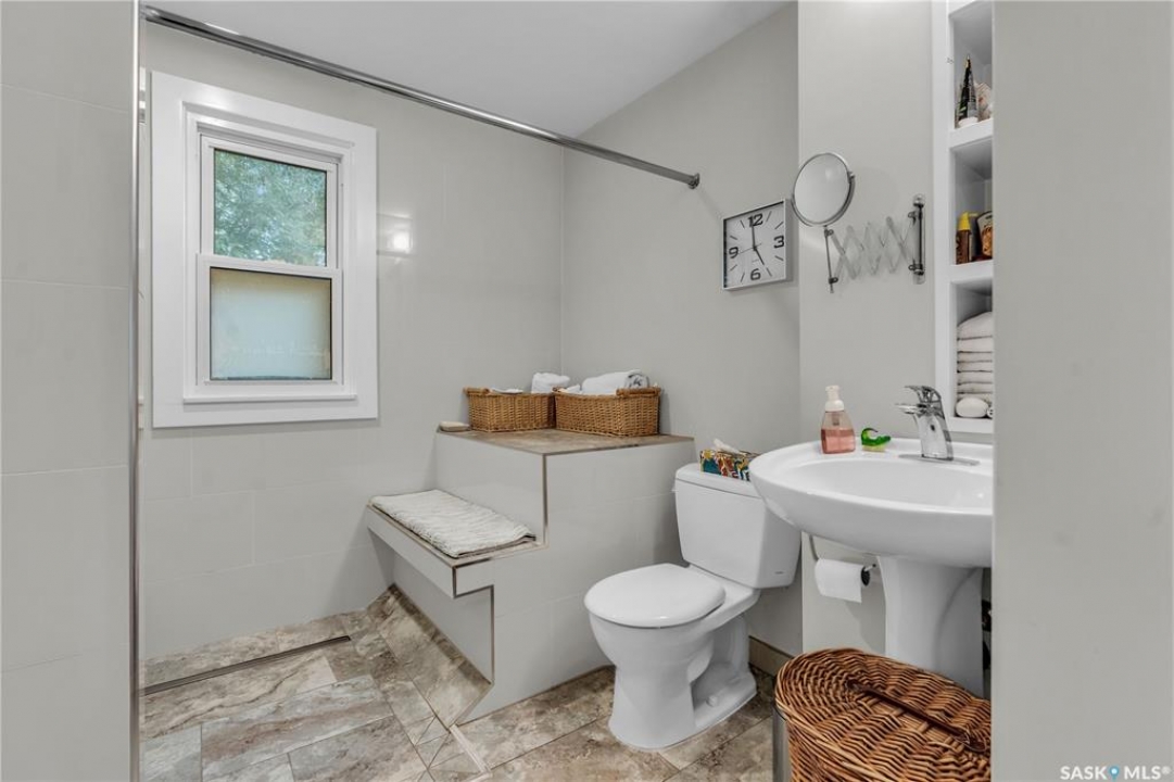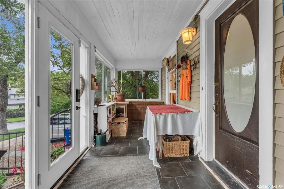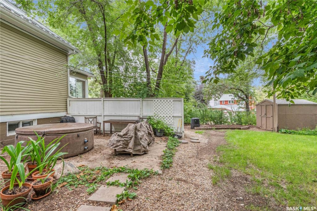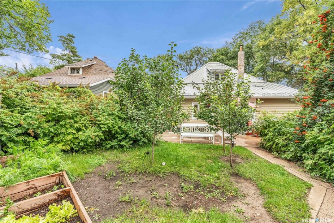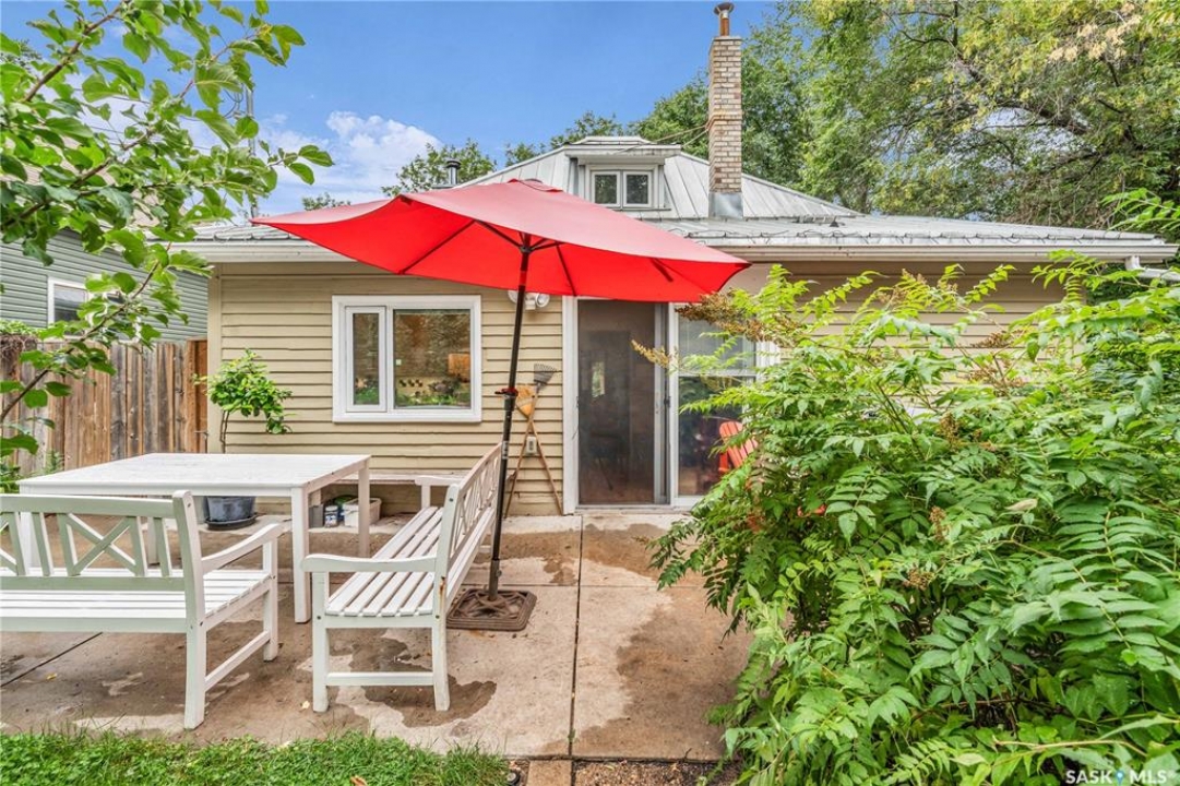 Charming 1 �-Storey Home Full of Character in Caswell Hill! Located in the desirable Caswell Hill neighborhood, just steps from downtown and close to all amenities, this beautiful 1 �-storey home offers over 1,200 sq. ft. of living space on the main and upper levels. The top unit features 3 bedrooms and 2 bathrooms, including a main bathroom with heated floors, and is filled with natural light from multiple skylights. Enjoy the comfort of an insulated front porch with heated floors, perfect for year-round use and added living space. The owners have lovingly maintained and updated the home over the years, blending modern comfort with historic charm. Updates include kitchen and bathroom renovations, new fascia and eavestroughs, and a basement bathroom (2015–2016), city sewer and water connection (2019), new furnace and freshly painted window trims and doors (2020), and a hot water tank (2022). Additional features include a wood-burning fireplace, metal roof, and fenced yard. The home sits on a unique 7,200 sq. ft. lot that offers a private, peaceful backyard — it truly feels like lake life right in the city! The property also includes a 1-bedroom, 1-bathroom suite with a separate entrance and its own laundry, offering great flexibility for guests, extended family, or rental income potential. Built in 1912, this home beautifully combines historic character with thoughtful modern upgrades in one of Saskatoon's most loved neighborhoods.