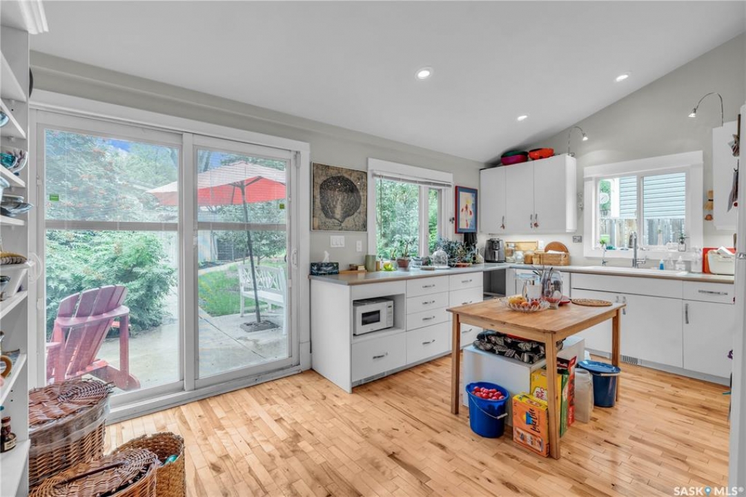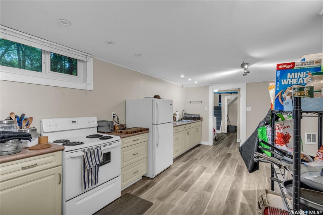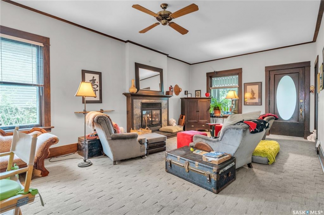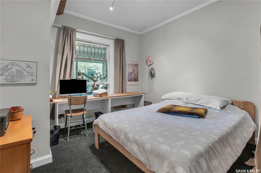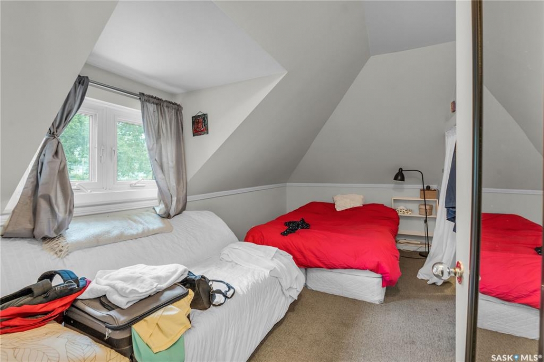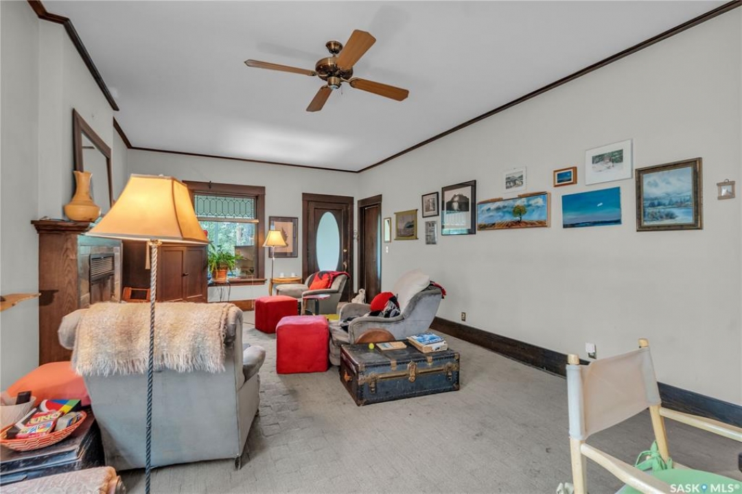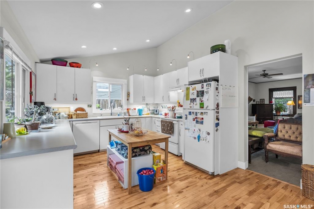 Charming 1 �-Storey Home Full of Character in Caswell Hill! Located in the desirable Caswell Hill neighborhood, just steps from downtown and close to all amenities, this beautiful 1 �-storey home offers over 1,200 sq. ft. of living space on the main and upper levels. The top unit features 3 bedrooms and 2 bathrooms, including a main bathroom with heated floors, and is filled with natural light from multiple skylights. Enjoy the comfort of an insulated front porch with heated floors, perfect for year-round use and added living space. The owners have lovingly maintained and updated the home over the years, blending modern comfort with historic charm. Updates include kitchen and bathroom renovations, new fascia and eavestroughs, and a basement bathroom (2015–2016), city sewer and water connection (2019), new furnace and freshly painted window trims and doors (2020), and a hot water tank (2022). Additional features include a wood-burning fireplace, metal roof, and fenced yard. The home sits on a unique 7,200 sq. ft. lot that offers a private, peaceful backyard — it truly feels like lake life right in the city! The property also includes a 1-bedroom, 1-bathroom suite with a separate entrance and its own laundry, offering great flexibility for guests, extended family, or rental income potential. Built in 1912, this home beautifully combines historic character with thoughtful modern upgrades in one of Saskatoon's most loved neighborhoods.
