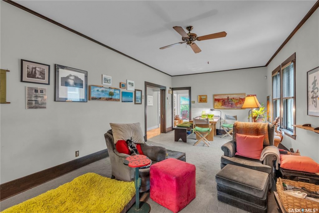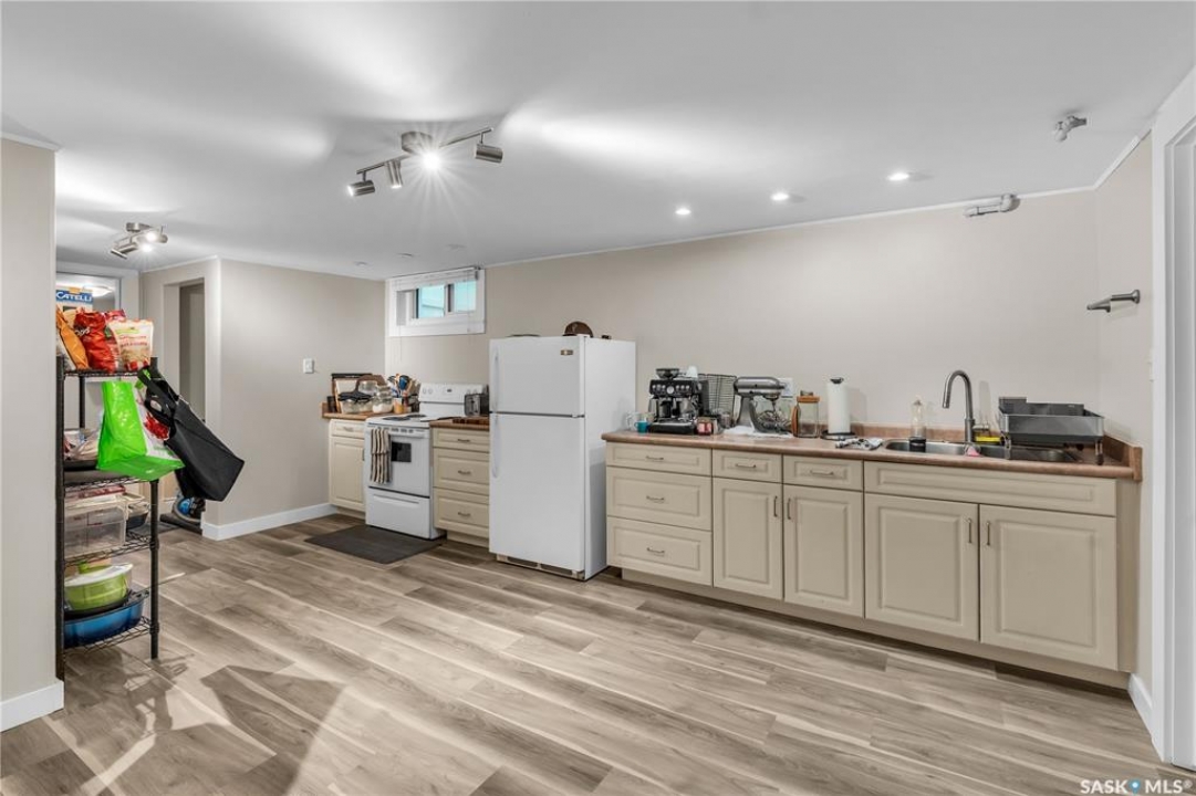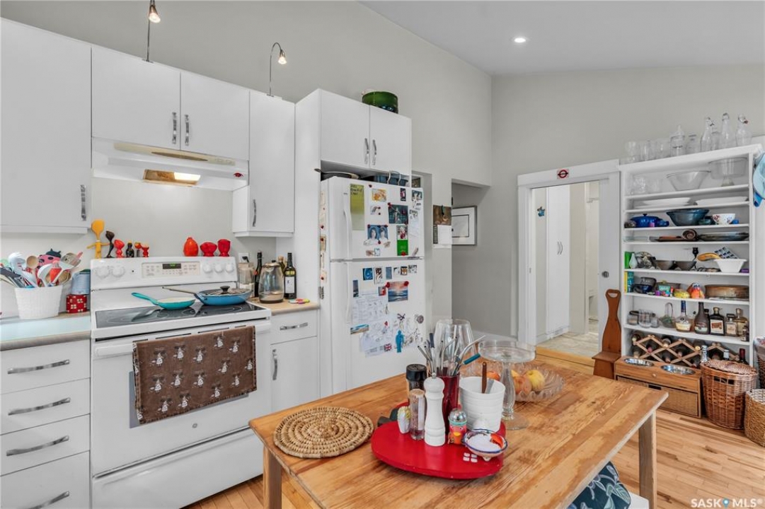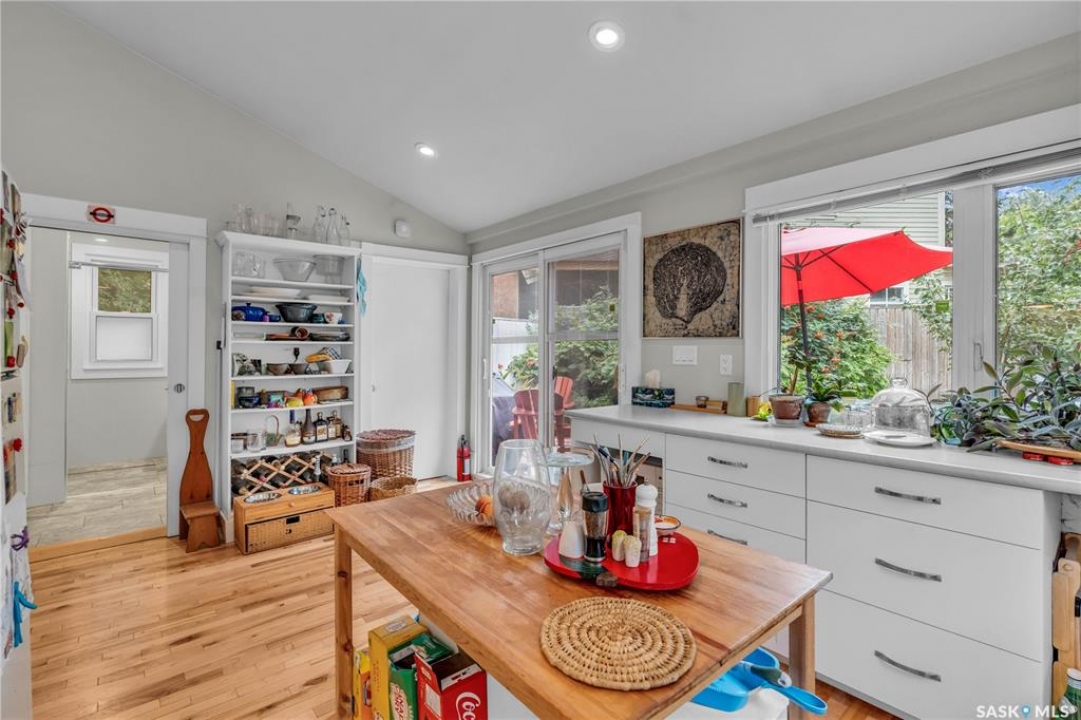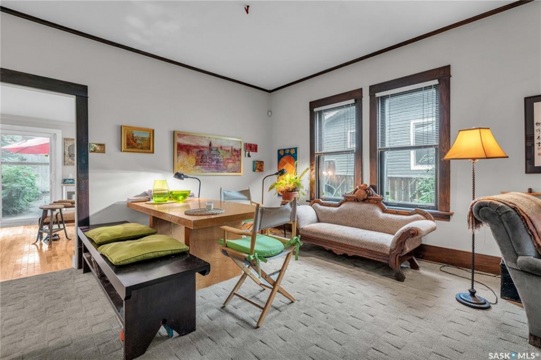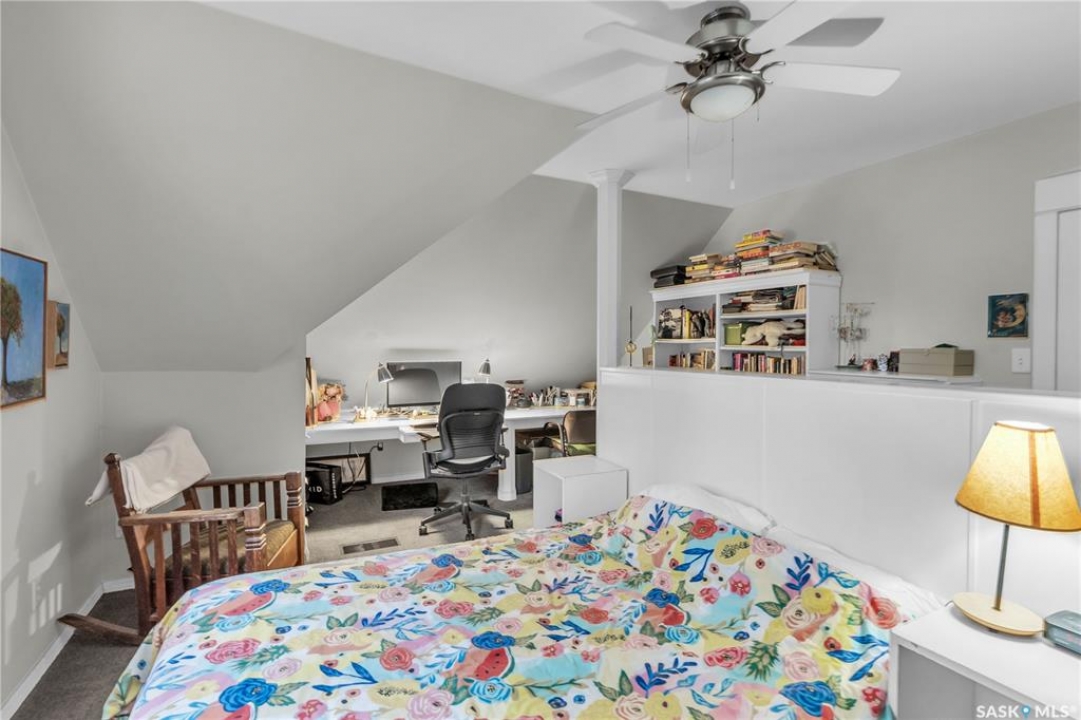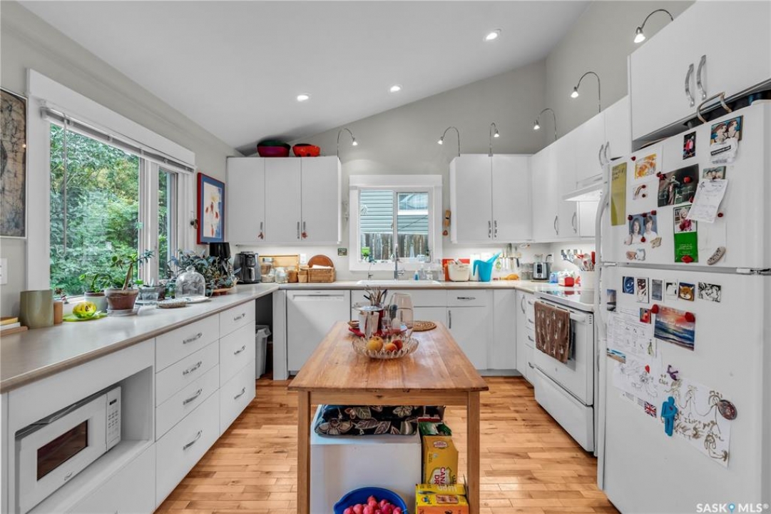 Charming 1 �-Storey Home Full of Character in Caswell Hill! Located in the desirable Caswell Hill neighborhood, just steps from downtown and close to all amenities, this beautiful 1 �-storey home offers over 1,200 sq. ft. of living space on the main and upper levels. The top unit features 3 bedrooms and 2 bathrooms, including a main bathroom with heated floors, and is filled with natural light from multiple skylights. Enjoy the comfort of an insulated front porch with heated floors, perfect for year-round use and added living space. The owners have lovingly maintained and updated the home over the years, blending modern comfort with historic charm. Updates include kitchen and bathroom renovations, new fascia and eavestroughs, and a basement bathroom (2015–2016), city sewer and water connection (2019), new furnace and freshly painted window trims and doors (2020), and a hot water tank (2022). Additional features include a wood-burning fireplace, metal roof, and fenced yard. The home sits on a unique 7,200 sq. ft. lot that offers a private, peaceful backyard — it truly feels like lake life right in the city! The property also includes a 1-bedroom, 1-bathroom suite with a separate entrance and its own laundry, offering great flexibility for guests, extended family, or rental income potential. Built in 1912, this home beautifully combines historic character with thoughtful modern upgrades in one of Saskatoon's most loved neighborhoods.