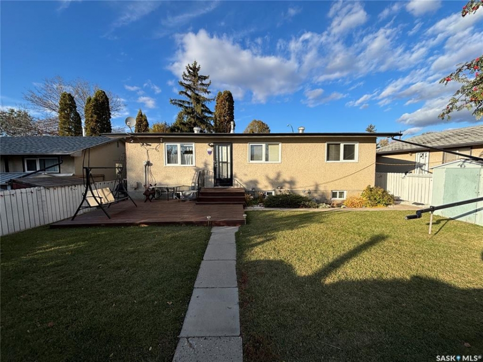 Very well maintained 960 sq ft 3+1 bedroom bungalow in Massey Place. Same owners since 1975. Beautiful, bright eat-in style oak kitchen. Spacious 4-piece bathroom. Upgraded windows. Central air. Fully developed basement with family room, bedroom, laundry, half bath and good-sized storage area. Huge yard with deck, storage sheds, garden area and plenty of parking with easy access from the back lane. Lots of room for future garage.