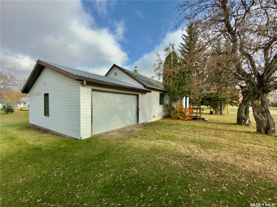 This charming home in the quiet community of Margo offers an affordable, move-in-ready opportunity for anyone seeking small-town living with room to breathe. The 966 sq ft bungalow sits on a spacious 0.29-acre lot with mature trees, garden space, and a 17x23 attached garage, perfect for parking, storage, or a small workshop. The exterior is finished in low-maintenance vinyl siding with a durable metal roof for years of easy upkeep. Inside, the home features a bright and practical layout with two comfortable bedrooms, a large kitchen/dining area with plenty of cabinet space, and an inviting living room ideal for relaxing or entertaining. The main floor also includes a full bathroom and a convenient laundry/mudroom area with direct access to the yard and garage. The property is connected to town water and sewer and includes all major appliances (no warranties on appliances). Whether you're downsizing, buying your first home, or looking for a peaceful getaway, this well-kept home is ready for you to move in and make it your own. Affordable, efficient, and full of small-town charm, come see what life in Margo has to offer.