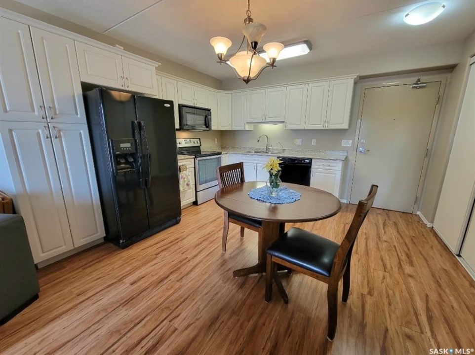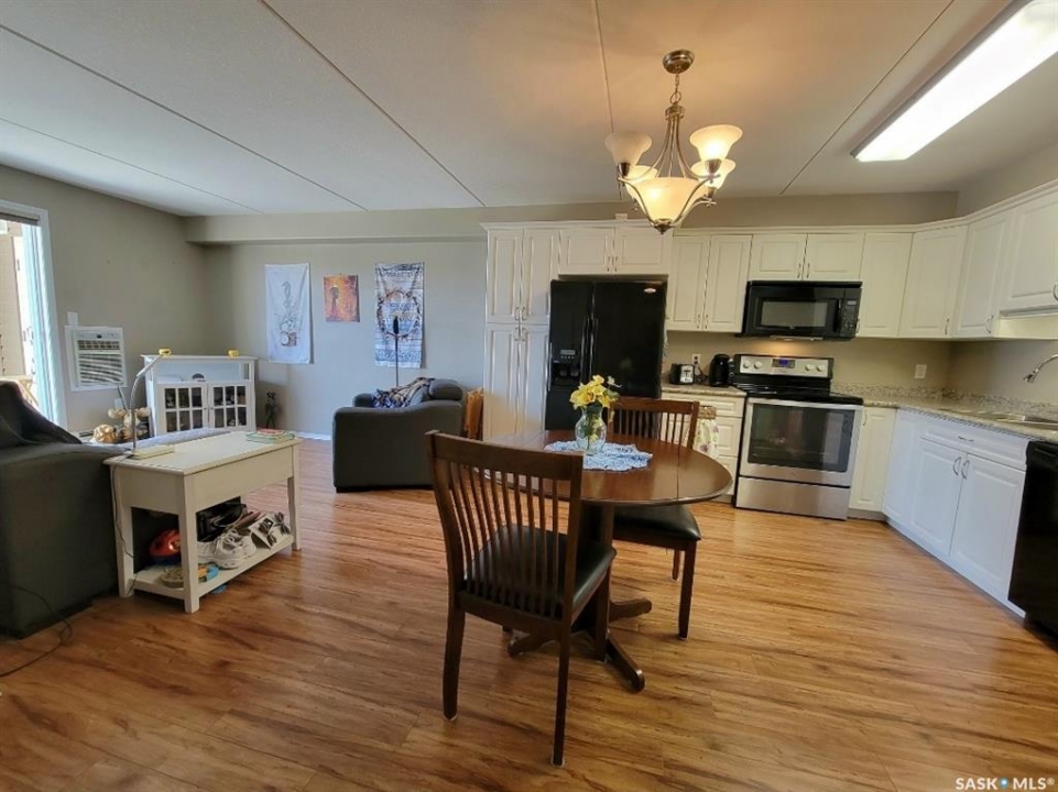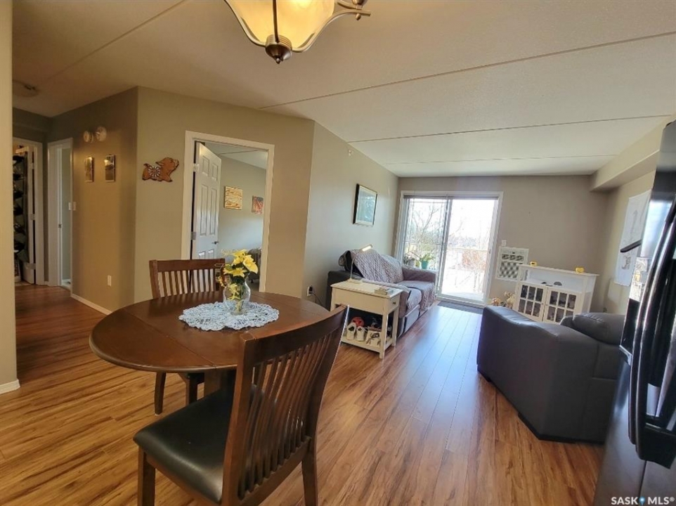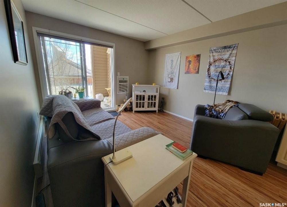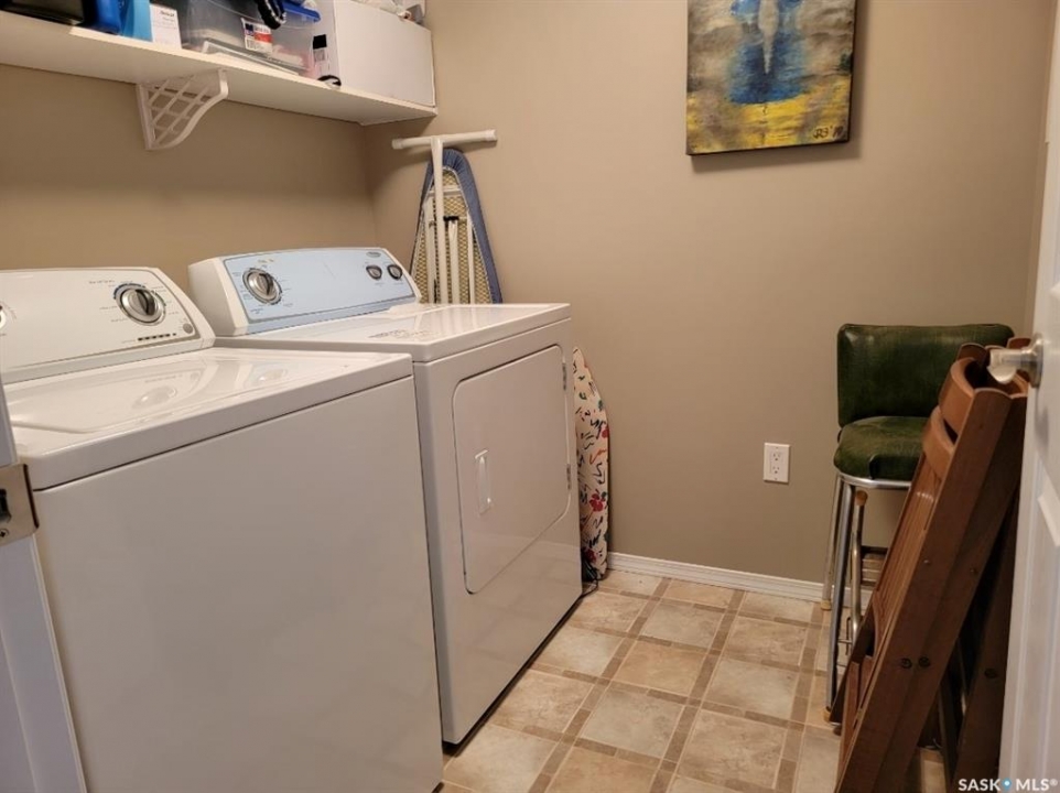 Located in the heart of Battleford, this move-in ready second-level condo at River Valley Estates offers the perfect blend of comfort and convenience. Featuring an open-concept design, this bright and inviting unit includes two spacious bedrooms, a full 4-piece bathroom, and in-suite laundry. The modern kitchen comes complete with all appliances, including a fridge, stove, washer, dryer, dishwasher, and a wall air conditioner unit. Step out onto the large, south-facing balcony where you'll find two storage areas and a natural gas BBQ hookup—ideal for outdoor entertaining. This home also comes with a heated parking stall in the exterior garage for your added comfort. Residents enjoy access to excellent amenities including an elevator, common area, exercise room, and visitor parking. With its prime location backing onto green space and a self-managed, well-maintained building, this condo is an incredible opportunity you won't want to miss. Schedule your showing today!