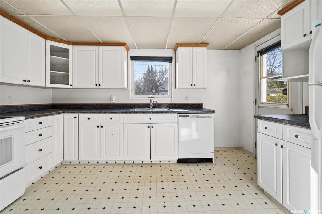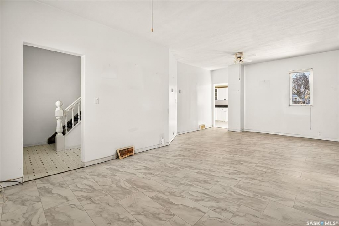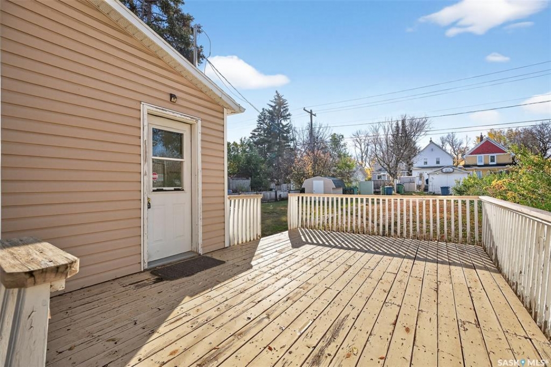 CHARMING 1 3/4 Storey Home on 50x125 ft lot.... Main floor features large living room/dining room, bright kitchen with ample white cabinets, a 1/2 bath and main floor laundry complete with newer stackable washer and dryer. Upstairs we find 2 bedrooms and a 3pce bathroom featuring a unique corner clover-leaf design tub. Open veranda on the front to sit out on and also features a good size back deck. Large back yard with room to build a garage. Updates include water heater, most windows, some flooring and a new furnace (2025). Call A REALTOR Today To View!!!