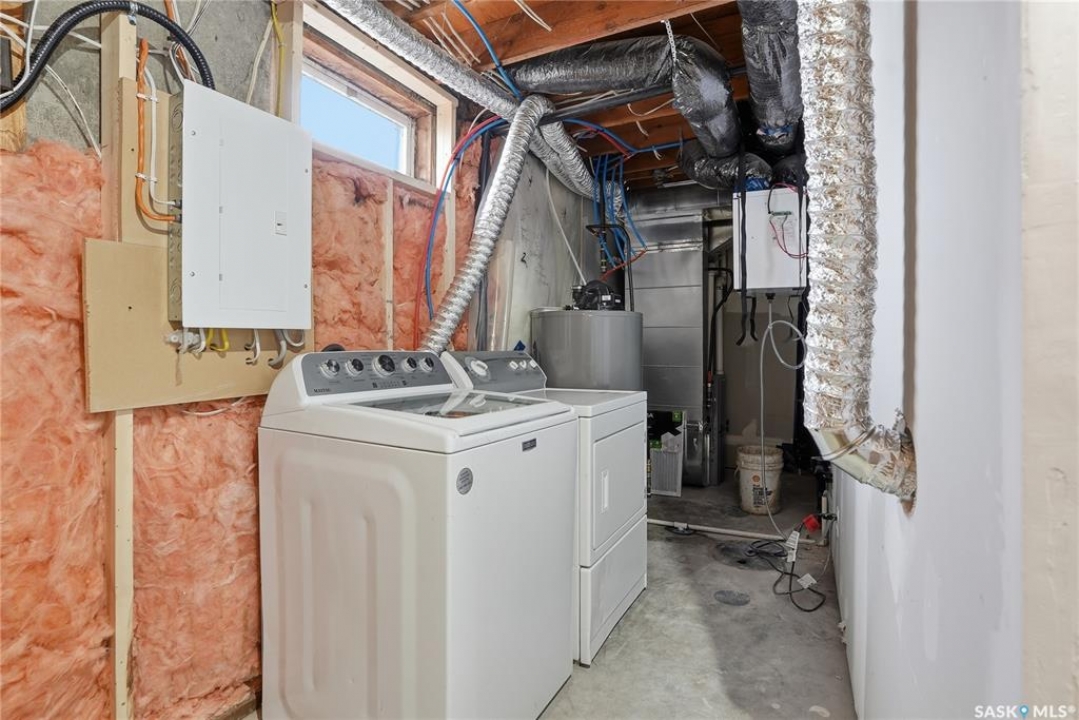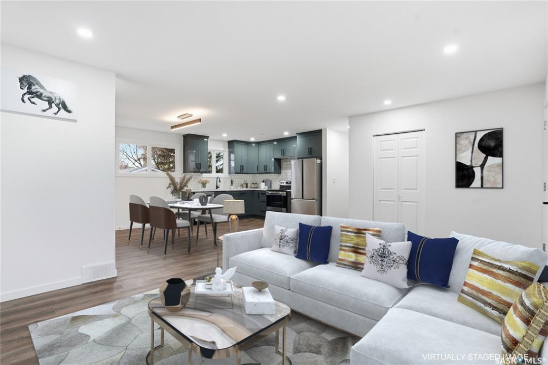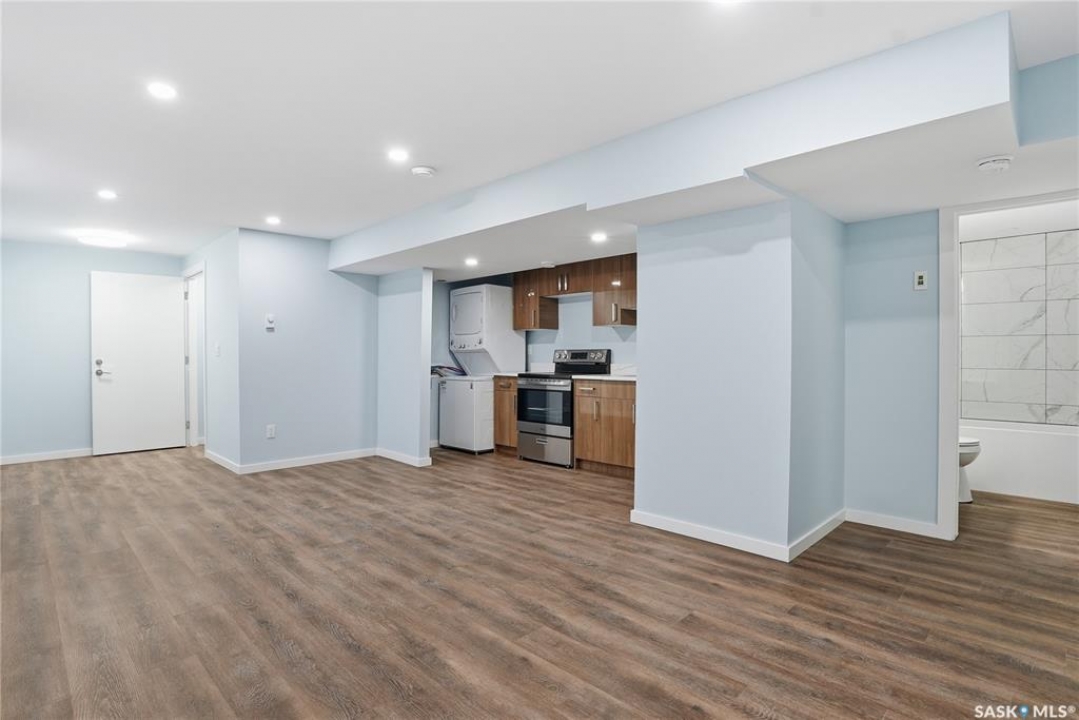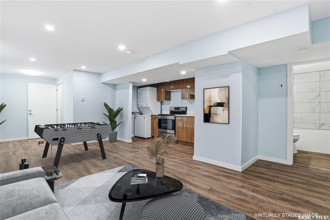 Welcome to this fully renovated gem in the heart of Warman featuring a LEGAL two bedroom basement suite! This 1,000 sqft. home has been completely redone from top to bottom, offering the feel of a brand-new home in a well-established neighbourhood. The main floor features a bright and spacious living room accented by a stunning electric fireplace with shiplap feature wall. The brand-new kitchen boasts custom high-gloss cabinetry, stylish backsplash, quartz countertops, and sleek stainless steel appliances. Down the hall, you'll find three comfortable bedrooms with all new vinyl plank flooring and a fully renovated 4-piece bathroom with luxe modern finishes. Downstairs, the legal 2-bedroom basement suite is a showstopper in itself. This brand-new suite includes a large living space, modern kitchen with quartz countertops, full appliance package, in-suite washer and dryer, all-new egress windows, and sound bar insulation in the ceiling for added comfort and privacy, an ideal setup for generating rental income. No detail has been overlooked in this renovation — with all-new mechanical systems including new furnace, water heater, HRV, and sump pump. Additional upgrades include new windows throughout, new siding, new electrical, new doors and trim, re-poured and levelled basement slab, and fully re-insulated basement walls. The property also features a double detached garage with new siding and an oversized garage door, adding convenience and value. This home stands out for its exceptional craftsmanship, practical design, and outstanding investment potential. Ideally located just minutes from Great Plains College and all of Warman's amenities, with quick and convenient access to the highway. Don't miss this incredible opportunity, a turn-key home with a legal suite in Warman doesn't come around often! Ask your agent for a full list of the extensive work that was put into this property.