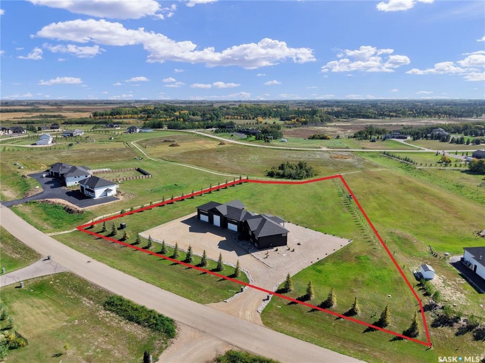 Welcome to this exceptional custom-built estate, a rare combination of sophistication, comfort, and modern design. Strategically located within the exclusive Grasswood Estates, this property provides the epitome of luxury lifestyle both in and out. Walk in and find yourself in a considerate floor plan with 12mm waterproof laminate flooring throughout, in-floor heat in the basement, and central air for warmth all year round. The gourmet kitchen boasts a natural gas hookup, waterfall island, microwave/oven combination, and streamlined finishes to create a fashionable and efficient space. Live outdoors on the front and rear composite decks, including a covered deck perfect for year-round entertaining. The beautifully landscaped yard boasts an irrigation system with a well that provides water only for the irrigation system (drip irrigation system), crushed rock landscaping, and more than 100 mature trees for shade, privacy, and serenity. Relax in the spa-inspired bathroom with a 12-inch rain shower, or withdraw to the huge 2400SQFT heated garage with a 20-foot interior room, ideal for truck parking or 10 vehicles or workshop layout with industrial ceiling fans, industrial heaters and industrial led lights. Among these are natural gas BBQ hookup, high-end construction, and an unmatched combination of luxury and usability. Whether entertaining guests or simply soaking up peaceful prairie sunsets, this rare property was crafted to awe. Enjoy the finest combination of estate living and contemporary convenience - only minutes from Saskatoon. Buyer and Buyer's agent to verify measurements. Please don't hesitate to call me or your favourite realtor to book a showing.