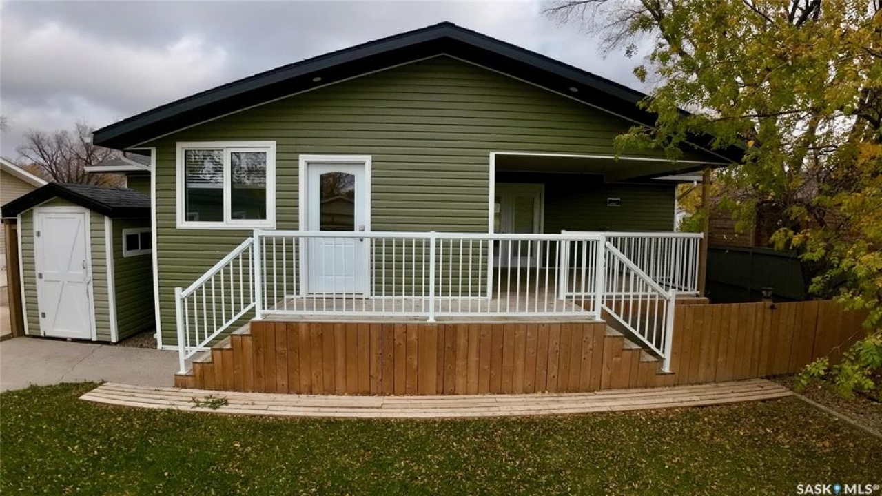 Nestled in a serene cul-de-sac in the heart of Shaunavon, this beautiful home offers the perfect blend of comfort, style, and functionality. Step onto the inviting front veranda and feel instantly at home. Inside, the open-concept main floor boasts a spacious, light-filled living room that flows seamlessly into a well-appointed kitchen. The kitchen is a chef's dream, featuring a corner pantry, ample cabinetry, and large, bright windows that bathe the space in natural light. Garden doors lead directly to a generous back deck, perfect for indoor-outdoor entertaining. The main floor also includes a cozy office space, ideal for a home business, and convenient washer and dryer hookups near the kitchen for added practicality. The master bedroom is a true retreat, complete with a luxurious four-piece ensuite featuring a heated lamp, oversized jetted tub, and dual showerheads. Two additional bedrooms on the main floor offer ample closet space, ensuring comfort for family or guests. The fully renovated basement, updated within the last two years, showcases modern finishes with new flooring, doors, lighting, and a sleek three-piece bathroom. Two spacious bedrooms, a utility room, and a generous storage room complete this versatile lower level. Stay comfortable year-round with central air conditioning. Outside, the professionally landscaped backyard is a private oasis, featuring a new fence (2022), a fire pit area, and automatic underground sprinklers for both front and back yards. A single detached, insulated, and heated garage provides additional convenience. This move-in-ready home combines modern upgrades with thoughtful design, making it perfect for families, professionals, or anyone seeking a peaceful retreat in Shaunavon. Don't miss your chance to own this gem!