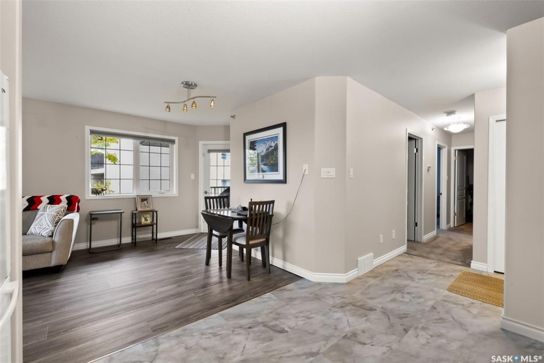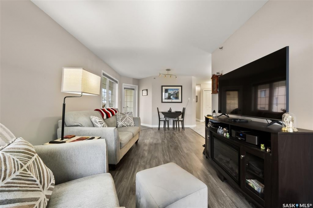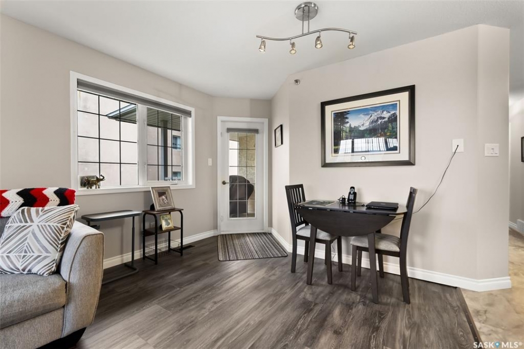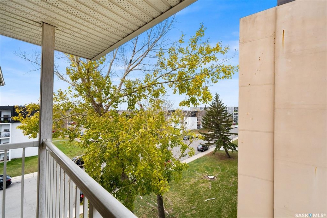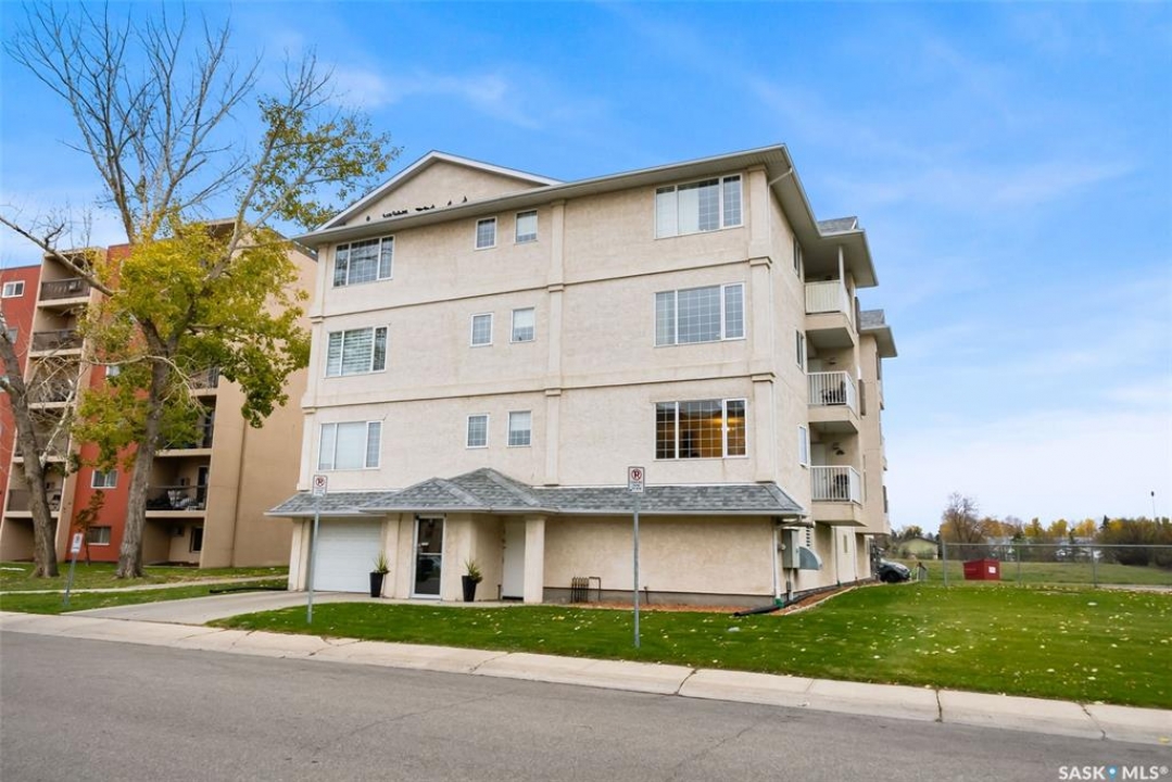 Welcome to this top floor corner unit condo located in the desirable Cityview neighbourhood. This building is backing green space and is located in a well established area, with easy access to all North end amenities, shopping and transportation. This 817 sq ft unit features 2 bedrooms and 1 bathroom, offering an open concept layout with southwest exposure and plenty of natural light. The upgraded kitchen includes rich cabinetry, a built-in pantry, granite countertops, and modern appliances. The floor plan allows for seamless flow into the bright dining and living area with direct balcony access. Additional highlights of this affordable unit include in-suite laundry with extra storage, central air conditioning, new flooring, built-in dishwasher, and a designated electrified parking stall. Condo fees cover: Common Area Maintenance, External Building Maintenance, Garbage, Insurance (Common), Lawncare, Reserve Fund, Sewer, Snow Removal, Water. Please note: pets are not permitted in this building. This clean and neat condo unit makes an exceptional choice for affordable home ownership!