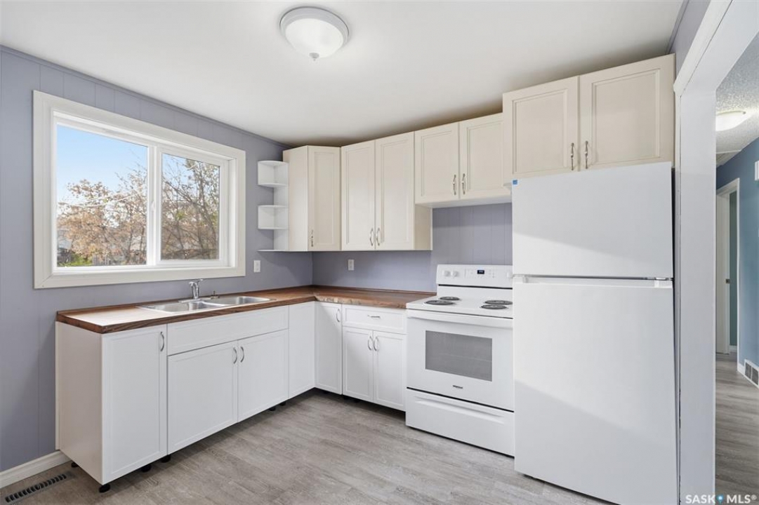 Welcome to 109 Grant Street, a beautifully updated bungalow in the family friendly community of Forest Grove — one of Saskatoon's most sought-after neighbourhoods. This cozy and inviting home is ideal for first-time buyers or anyone looking to downsize without compromise. Inside, you'll find three comfortable bedrooms on the main floor, a fully modernized four-piece bathroom, and a bright, refreshed kitchen, dining, and living area. The basement offers added versatility with a spacious family room, an additional bedroom, and a spacious laundry area. The large backyard provides the perfect outdoor space to relax, garden, or host family and friends. Throughout the home, thoughtful updates give it a fresh, modern feel — including new vinyl plank flooring, updated kitchen cabinets and countertops, a renovated bathroom, new windows, interior and exterior doors, new shingles (September 2025), and composite front and back decks. Located within walking distance to schools, parks, and everyday amenities, this home offers both comfort and day-to-day convenience. With limited inventory of single-family homes on Saskatoon's east side in this price range, this is a rare opportunity to own an updated property — without paying condo fees or sacrificing yard space. Call your Realtor today to book a showing. This is one opportunity you won't want to miss!