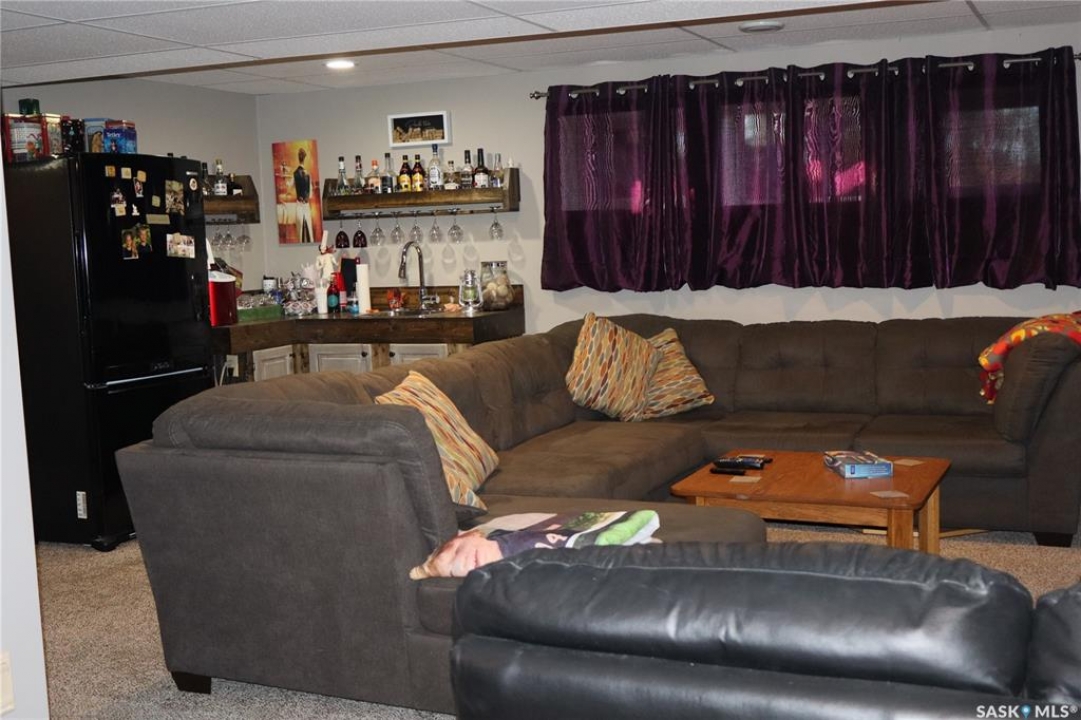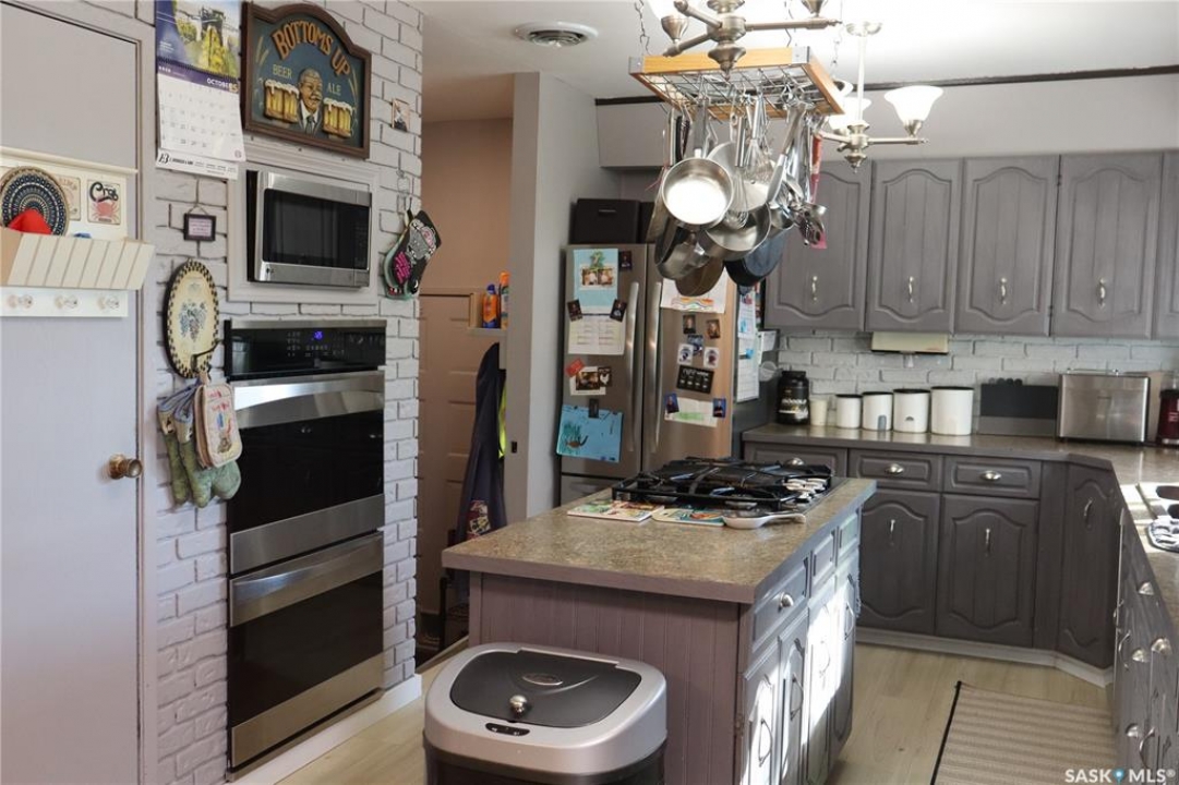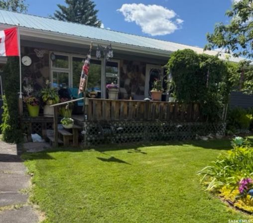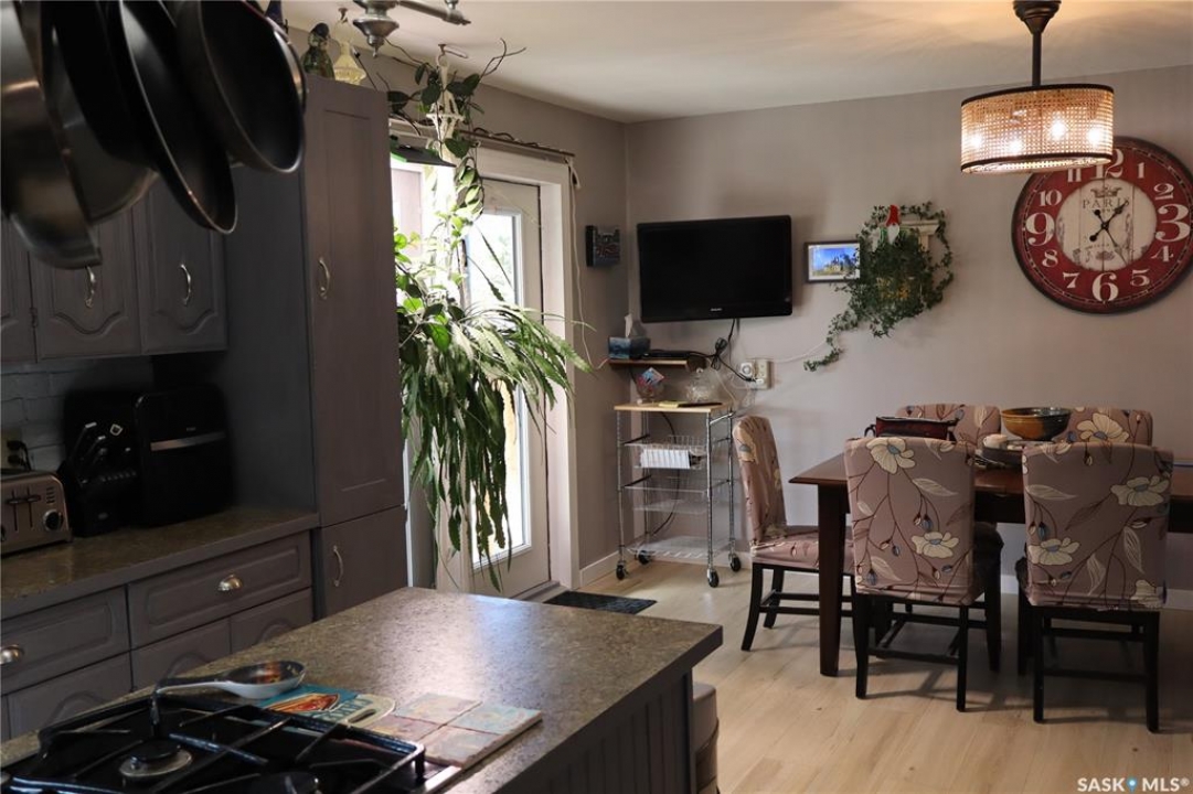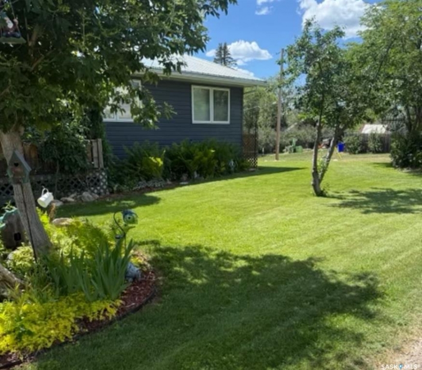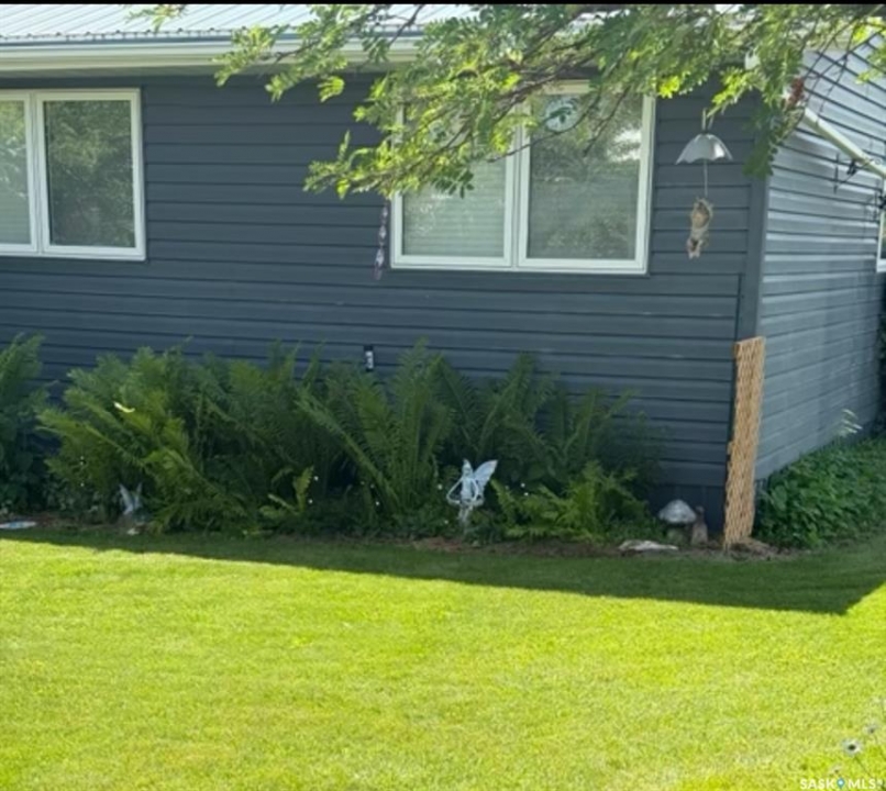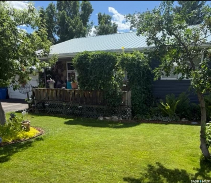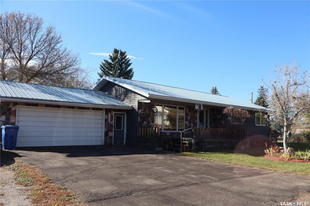 Situated on a spacious double corner lot in the Town of Rockglen, this property showcases upgraded vinyl siding and faux stone accents, complemented by a durable metal roof. All windows and doors are high-quality vinyl replacements. The insulated and heated double attached garage provides reliable year-round utility. Check out the awesome view of the rolling hills! The kitchen features an island with a cooktop, extensive cabinetry, and a nook ideal for a coffee bar setup. An open-concept dining area connects seamlessly to the kitchen and grants access to a tiered deck through a garden door. The living room offers ample natural light via an oversized window. The primary bedroom is enhanced by an updated three-piece ensuite with a walk-in shower. Two additional bedrooms are located on the main floor, along with convenient laundry facilities tucked into the hallway. The developed basement includes a sizable family room equipped with a wet bar, a three-piece bathroom, and a den currently functioning as a bedroom (buyers are advised to verify window egress compliance). Additionally, there is a versatile multipurpose room—well-suited for crafts or hobbies—with attached storage space. The utility room provides built-in shelving and houses a natural gas forced air furnace. The exterior boasts abundant storage solutions, numerous upgrades, and a tiered deck designed for outdoor cooking and entertaining. The landscaping is arranged for low maintenance and incorporates underground sprinklers. This property is ready for its next family to enjoy.