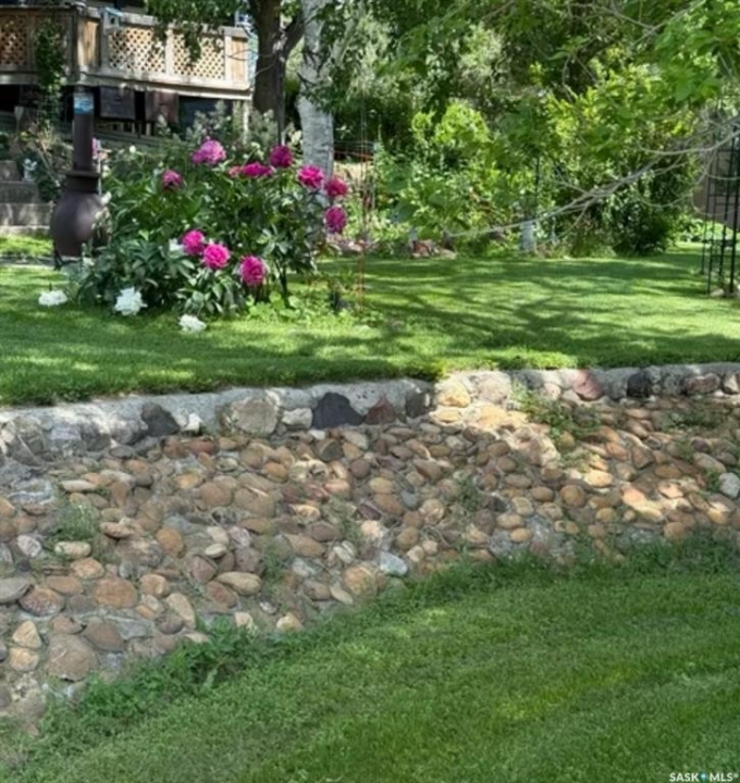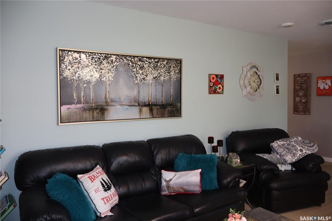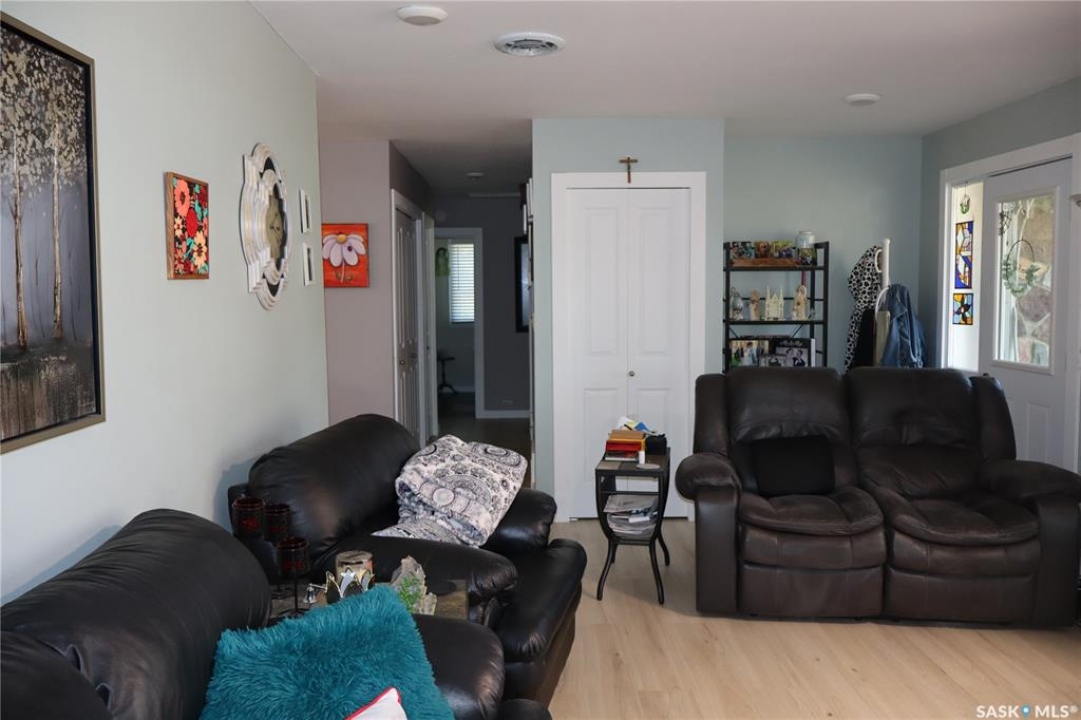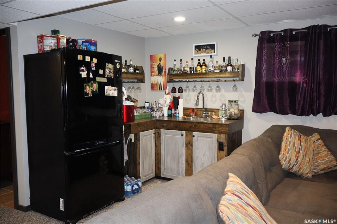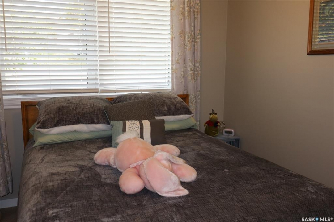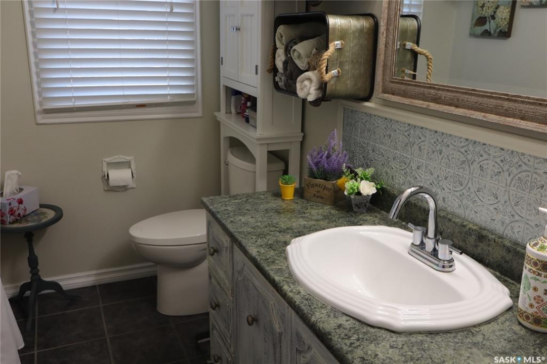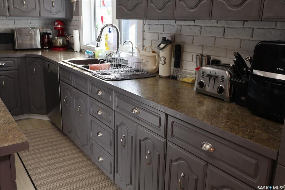 Situated on a spacious double corner lot in the Town of Rockglen, this property showcases upgraded vinyl siding and faux stone accents, complemented by a durable metal roof. All windows and doors are high-quality vinyl replacements. The insulated and heated double attached garage provides reliable year-round utility. Check out the awesome view of the rolling hills! The kitchen features an island with a cooktop, extensive cabinetry, and a nook ideal for a coffee bar setup. An open-concept dining area connects seamlessly to the kitchen and grants access to a tiered deck through a garden door. The living room offers ample natural light via an oversized window. The primary bedroom is enhanced by an updated three-piece ensuite with a walk-in shower. Two additional bedrooms are located on the main floor, along with convenient laundry facilities tucked into the hallway. The developed basement includes a sizable family room equipped with a wet bar, a three-piece bathroom, and a den currently functioning as a bedroom (buyers are advised to verify window egress compliance). Additionally, there is a versatile multipurpose room—well-suited for crafts or hobbies—with attached storage space. The utility room provides built-in shelving and houses a natural gas forced air furnace. The exterior boasts abundant storage solutions, numerous upgrades, and a tiered deck designed for outdoor cooking and entertaining. The landscaping is arranged for low maintenance and incorporates underground sprinklers. This property is ready for its next family to enjoy.