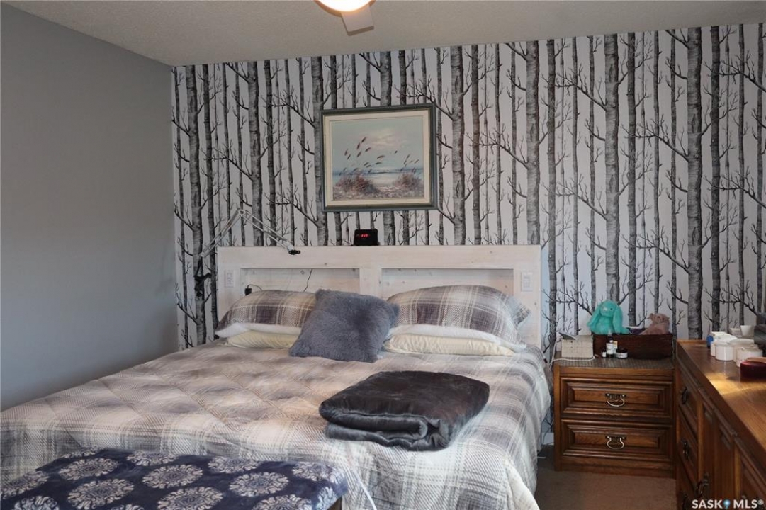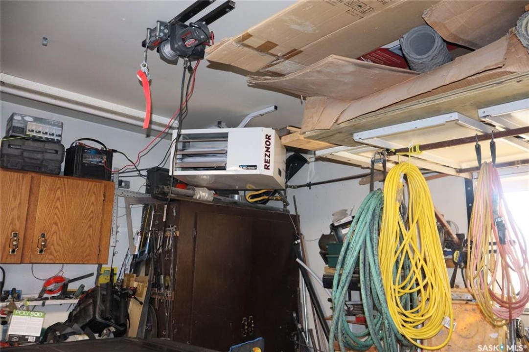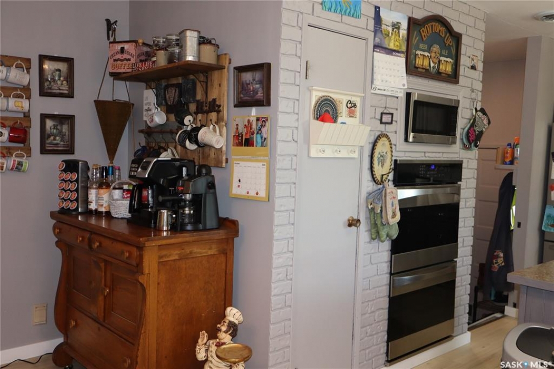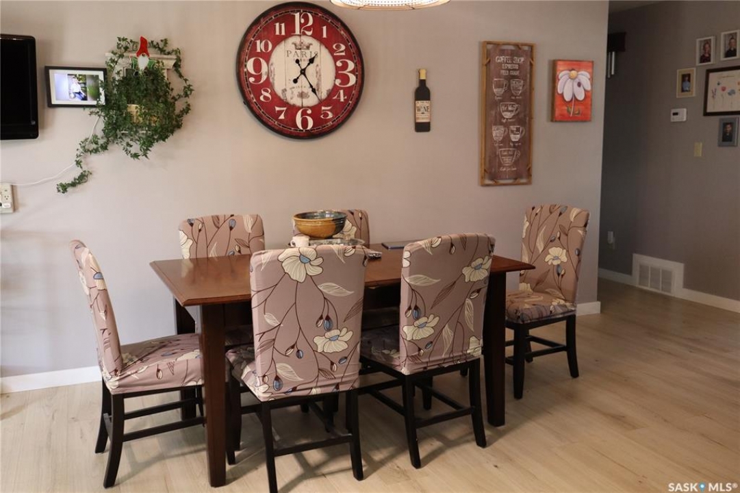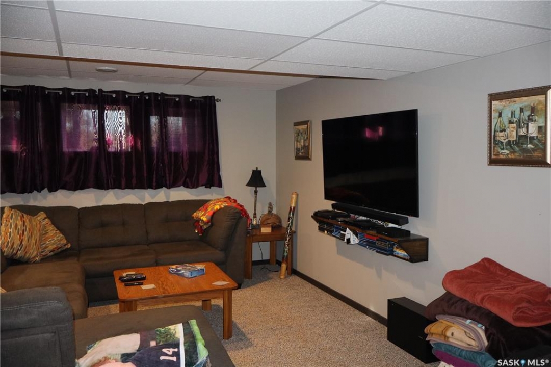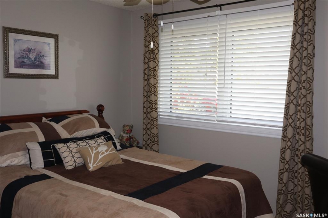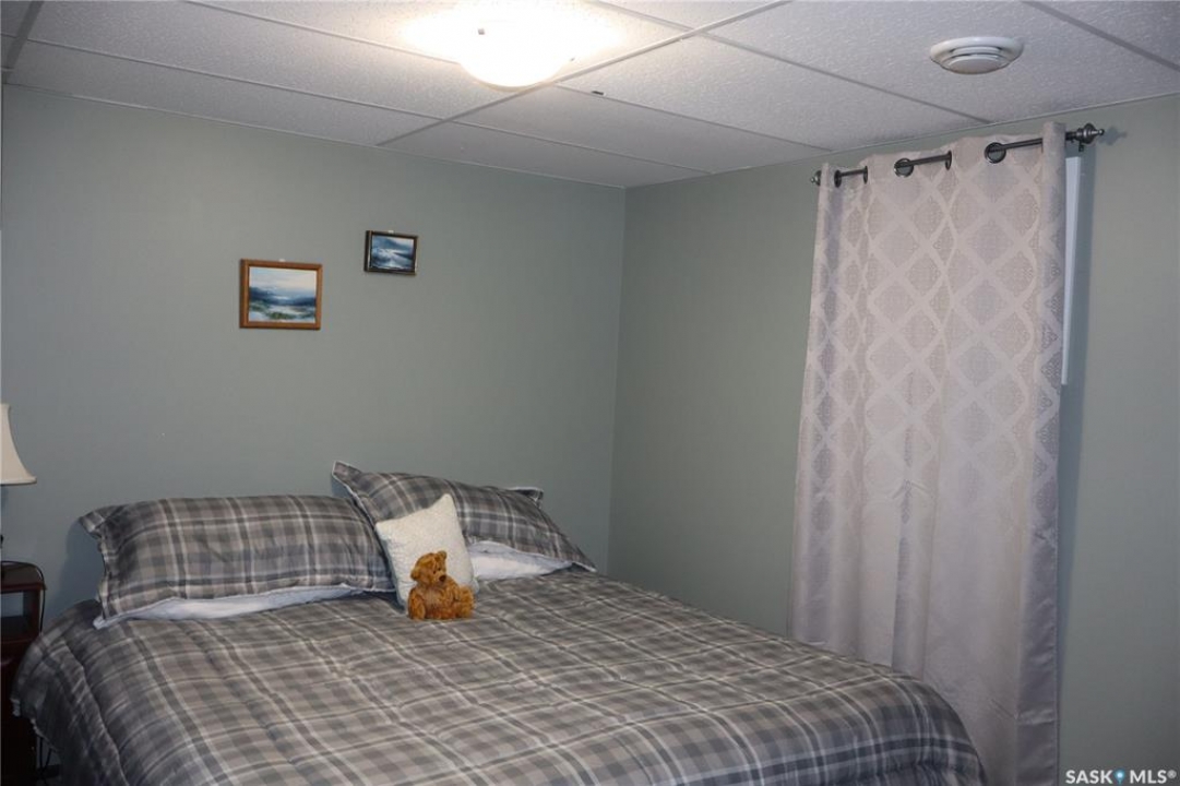 Situated on a spacious double corner lot in the Town of Rockglen, this property showcases upgraded vinyl siding and faux stone accents, complemented by a durable metal roof. All windows and doors are high-quality vinyl replacements. The insulated and heated double attached garage provides reliable year-round utility. Check out the awesome view of the rolling hills! The kitchen features an island with a cooktop, extensive cabinetry, and a nook ideal for a coffee bar setup. An open-concept dining area connects seamlessly to the kitchen and grants access to a tiered deck through a garden door. The living room offers ample natural light via an oversized window. The primary bedroom is enhanced by an updated three-piece ensuite with a walk-in shower. Two additional bedrooms are located on the main floor, along with convenient laundry facilities tucked into the hallway. The developed basement includes a sizable family room equipped with a wet bar, a three-piece bathroom, and a den currently functioning as a bedroom (buyers are advised to verify window egress compliance). Additionally, there is a versatile multipurpose room—well-suited for crafts or hobbies—with attached storage space. The utility room provides built-in shelving and houses a natural gas forced air furnace. The exterior boasts abundant storage solutions, numerous upgrades, and a tiered deck designed for outdoor cooking and entertaining. The landscaping is arranged for low maintenance and incorporates underground sprinklers. This property is ready for its next family to enjoy.