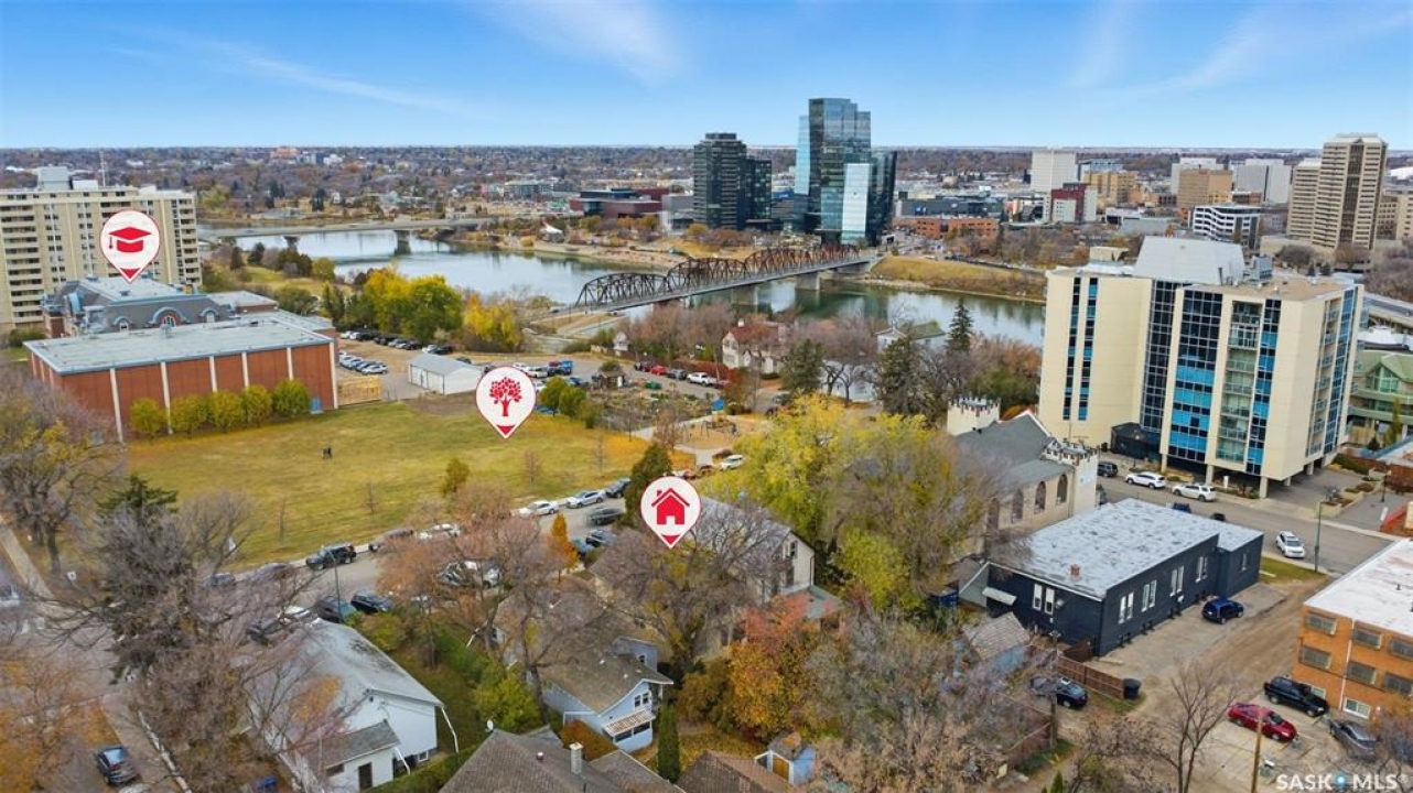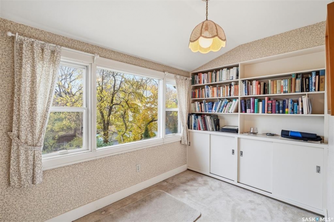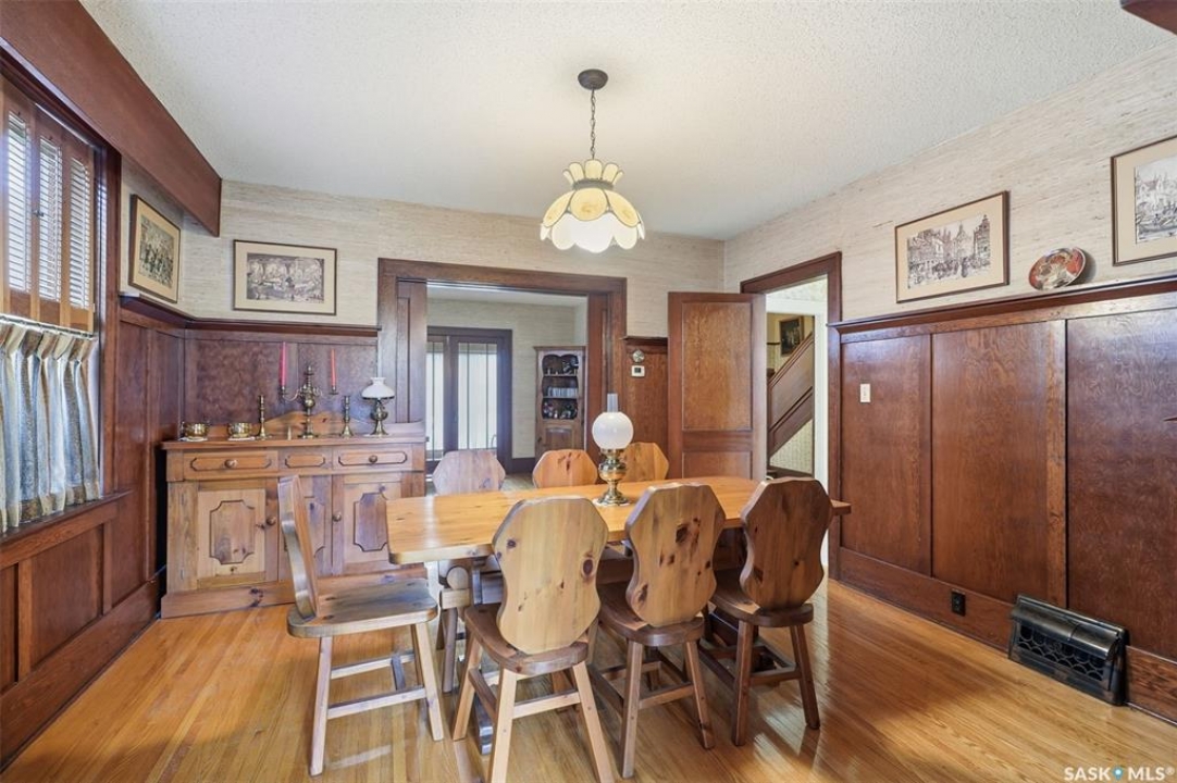Heritage home lovers - this one is for you! Built in 1923 and lovingly cared for, this 2 storey in the heart of Nutana has all the original charm and character intact, with gorgeous hardwood floors, wood trim, tons of built-ins and french doors! The living room opens to a separate den with an oversize window with views of the front yard and the park across the street. Host family and friends in the beautiful dining room which features wood wainscoting and a built-in display cabinet, while the cozy family room offers a great place to read or relax by the fire. The kitchen is absolutely charming, with plenty of storage and access to the back porch. Upstairs, you'll find 4 good sized bedrooms, each with lots of character. The primary bedroom has beautiful attached den with built-in bookshelf and access to a private balcony overlooking the backyard. The main bath has been updated and is a great size for your family's needs. The basement features a large workshop, tons of storage, laundry and a 2pc bath with rough-in for a shower. Outside, the charm continues with cute backyard, single garage and mature landscaping. Situated just steps to Broadway's restaurants, cafes and shops, as well as the river and Rotary Park, this home is in a prime location you will love! Don't wait on this gorgeous home...call your favourite realtor to see it for yourself!