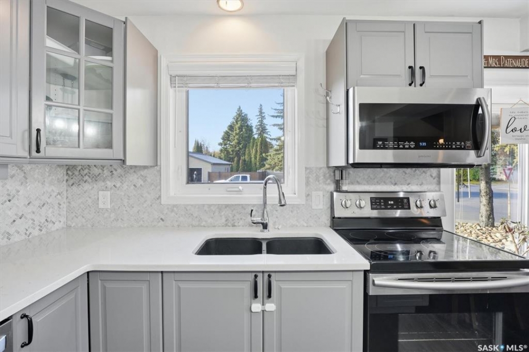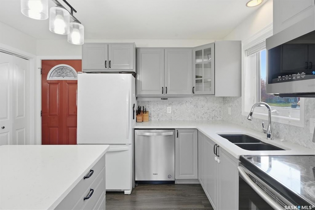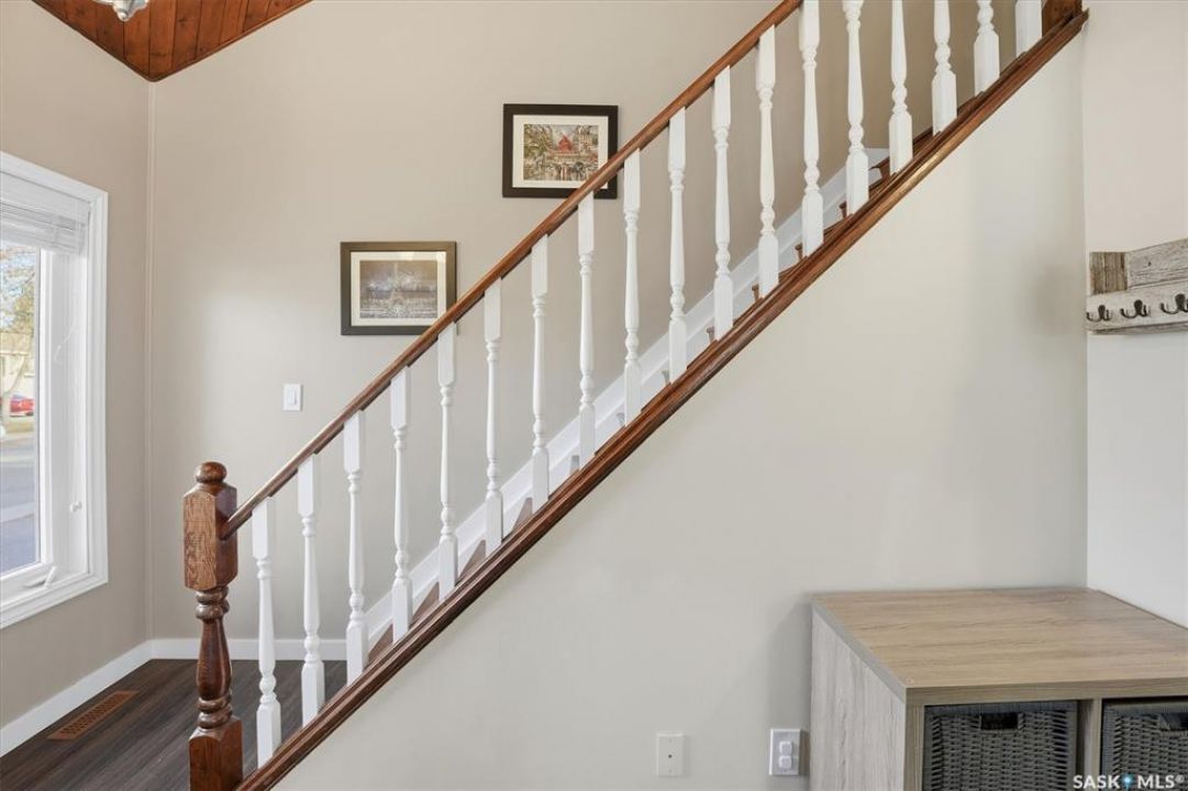 Welcome to 583 Tobin Crescent. A great location for this property! This home is within close proximity to two elementary schools, parks and the river! If location matters to you then you won't want to pass up on this property. This unique two story has a great layout with the main floor boasting a new kitchen that features a island and a pantry which is open to the dining and living room that features vaulted ceilings and a electric fireplace. Also on the main floor is a bedroom and a 3 piece bath. Upstairs has two bedrooms and a 4 piece bath with a walk way that overlooks the living room below. Downstairs you will find a large rec room, 2 piece bath, bedroom and a neat and tidy laundry/utility room. This home has a lot of the large items recently renovated including kitchen cabinets, updated bathrooms, flooring on main, shingles, trim and doors on the main, main door and updated appliances. Also the home has triple pane windows. This home features a huge 22x28 heated double attached garage. If the garage is a important part of your purchase you will love the room that this one has to offer. All this on a large corner lot that is completely fenced, lots of mature trees, raised garden beds, large patio and a covered deck. This home shows well with pride of ownership. Call today to view!
