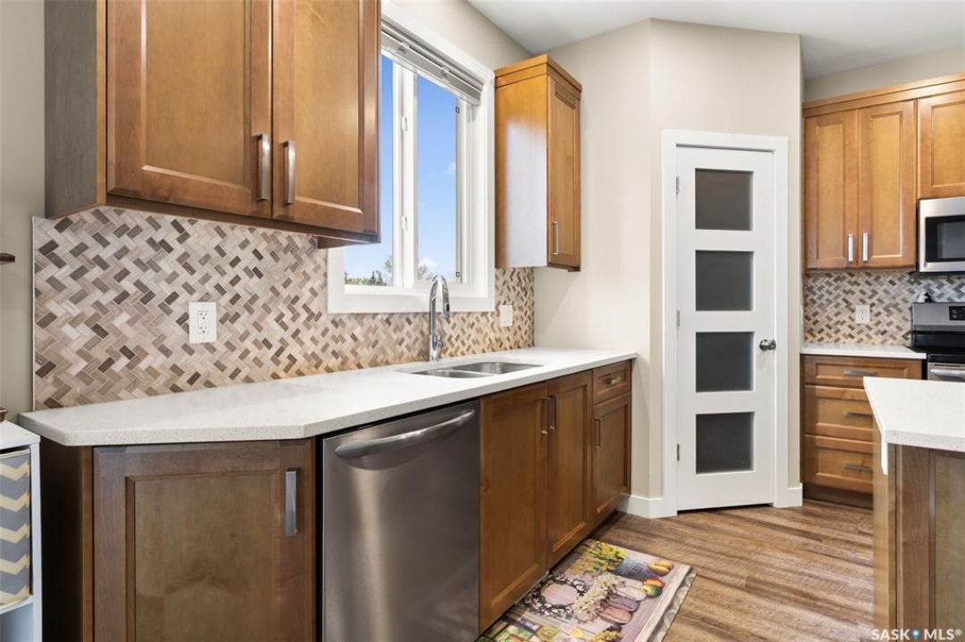 Discover the perfect blend of comfort and function in this spacious 5-bedroom, 3-bathroom family home. Step inside to find a welcoming and open main floor with 9ft ceilings. The sun-filled kitchen features maple cabinetry with stone counters, a stylish backsplash, pot filler, and plenty of drawers and prep space. Down the hall are 2 bedrooms, a 4-piece bathroom and main floor laundry for added convenience. Upstairs, the private and spacious primary suite offers a relaxing escape with a large walk-in closet and 5-piece ensuite with two sinks. The fully finished basement expands your living space with a cozy gas fireplace with custom mantle, perfect for movie nights or family gatherings. Here you will find 2 additional bedrooms ideal for guests or an at-home office. Outside, the yard is completely finished and offers a low maintenance fence, raised garden beds with underground sprinklers, a patio and covered deck. Enjoy the convenience of an attached and heated 24'x 24' garage and Govee permanent lighting that adds a touch of charm year-round. With no back neighbours this is a wonderful opportunity for those seeking space, quality, and privacy, all in one exceptional home.