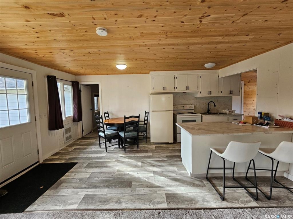 7 Aspen Cresc, Moose Mountain Provincial Park - YEAR ROUND COTTAGE - Enjoy the Park year round at this great location close to walking trails, ball diamond & walking distance to beach. The spacious year round cottage offers 3 bedrooms and large bath with corner shower & washer/dryer. Recent upgrades include interior pine lined ceiling, flooring, paint, kitchen fixture and 3 pc bath. Sasktel high speed internet/wifi. Electric recessed forced air heaters and fireplace. South Exposure brings in tons of natural light. Spacious yard to enjoy. Asphalt shingles replaced in 2023. Bonus of a garage for lake toys or sleds. To view this year round cottage contact realtors to schedule a private viewing.