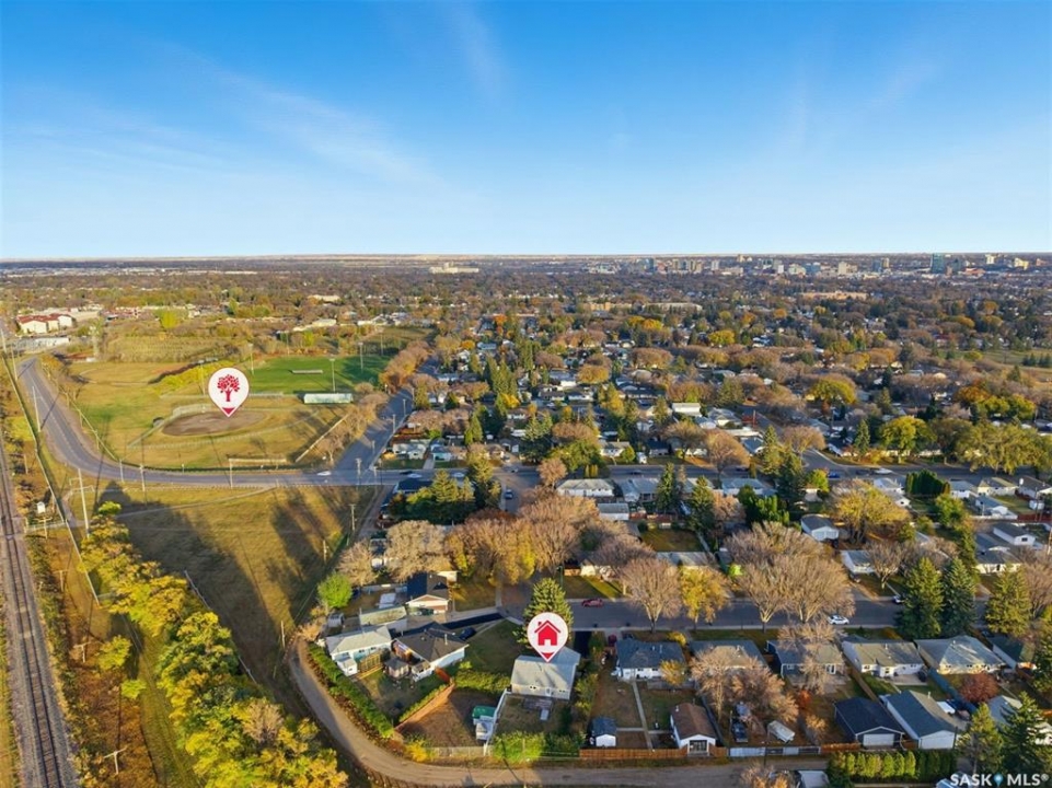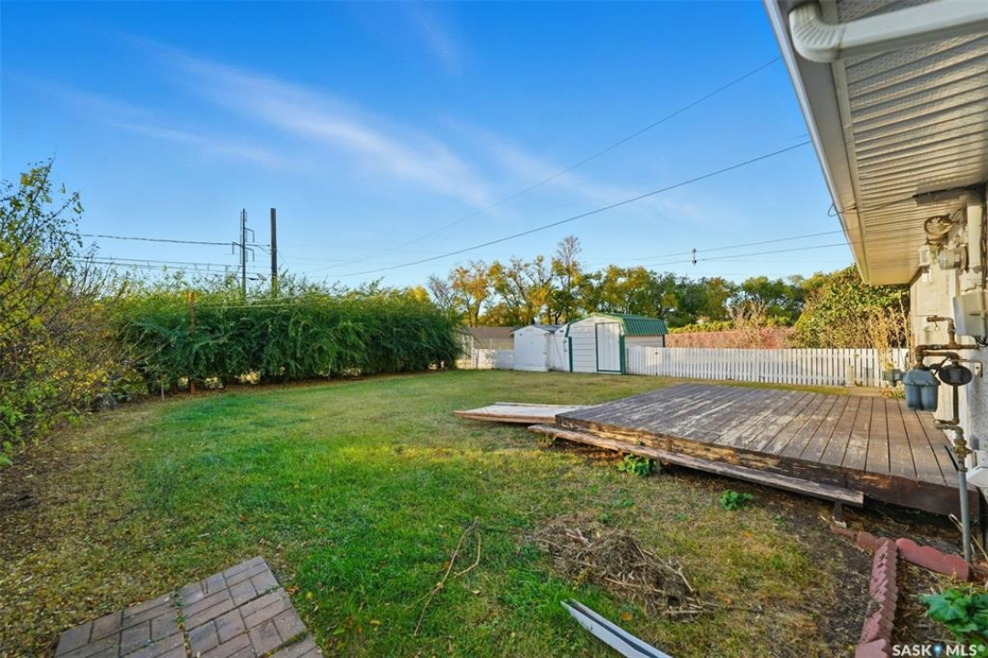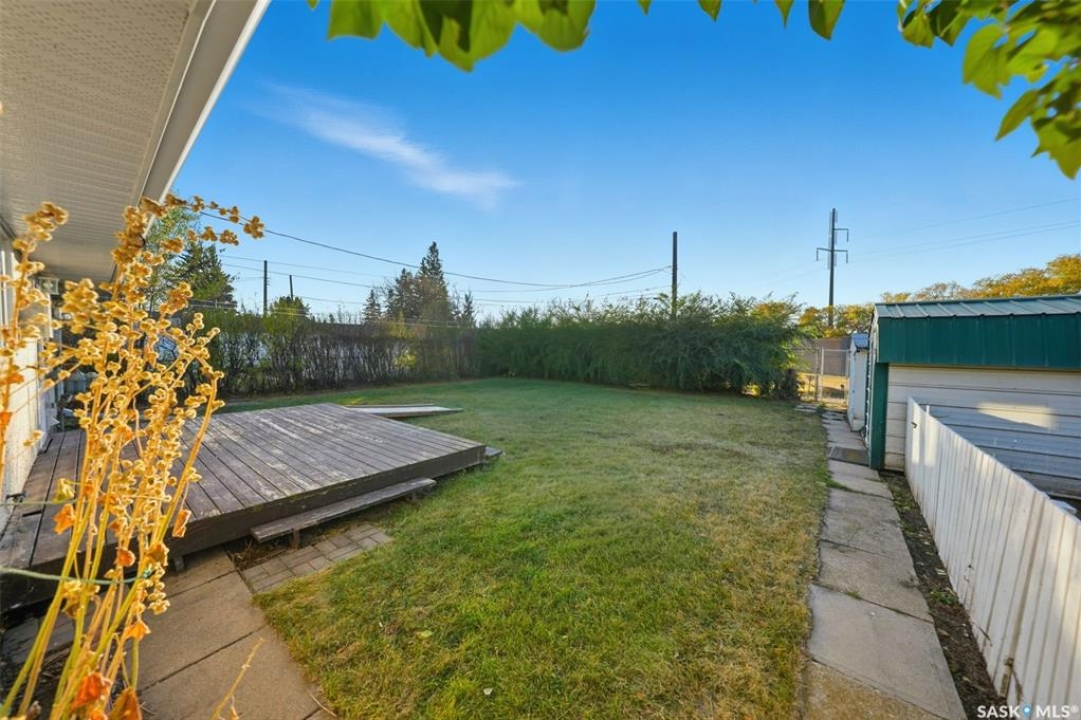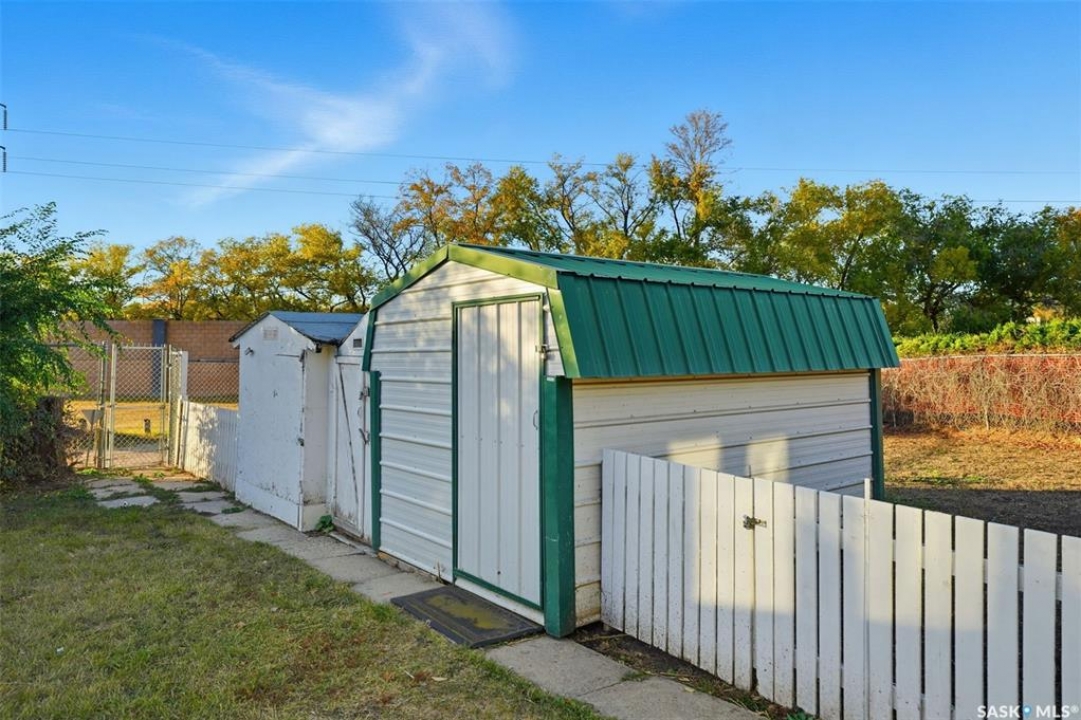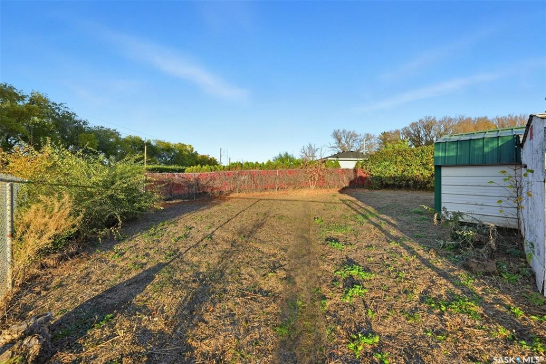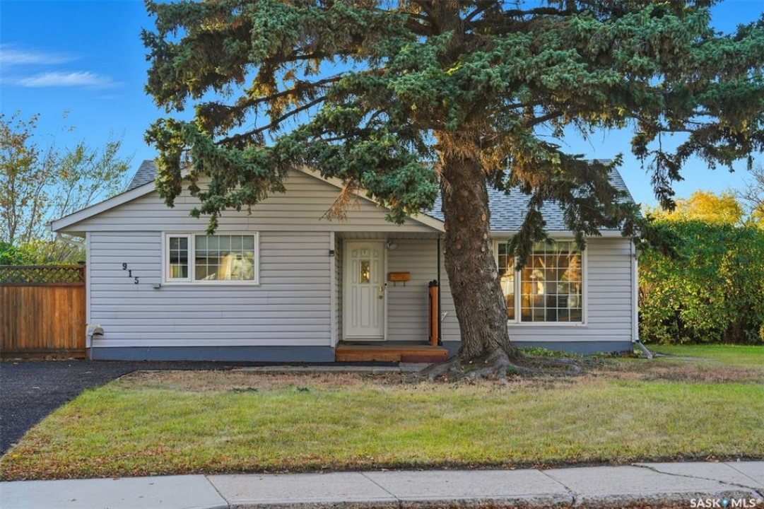 Welcome to 915 Avenue X North in Saskatoon! This charming 1060sqft bungalow offers a comfortable and functional layout, all conveniently situated on a slab—no basement to worry about. The home features three spacious bedrooms, a 4-piece bathroom, a bright living area, and a well-appointed kitchen with updated cabinets, countertops, taps and dining area. Practical touches include a handy laundry, utility closet, plus a separate storage room with shelving and stand up freezer. Numerous updates over the years make this home move-in ready, including a furnace (2006), windows, siding, soffit, fascia, and eaves (2009), water heater (2020), shingles (2020), and bathroom vanity and toilet (2015). The large irregularly shaped, oversized, 9,647 sq. ft. lot is a true standout, offering mature trees, shrubs, garden space, sheds, and plenty of room to build your dream garage. With green space directly behind, you'll enjoy a private and tranquil yard perfect for relaxing or entertaining. This well-cared-for home shows great and is ready for its next owners to move right in and enjoy!