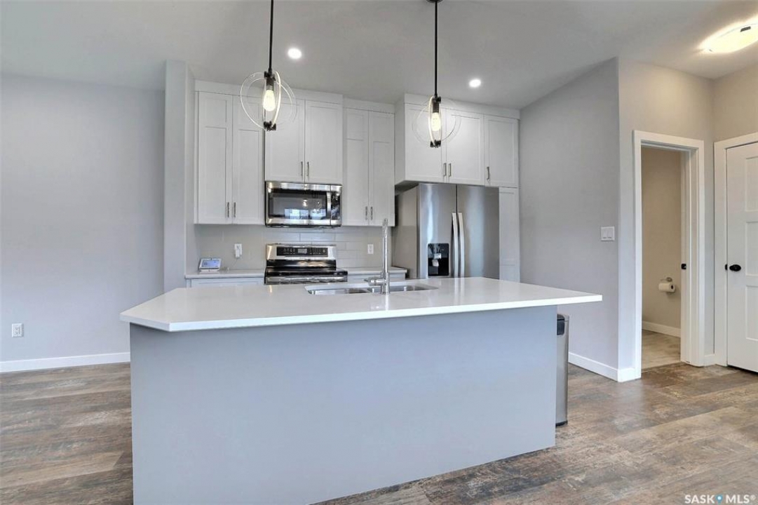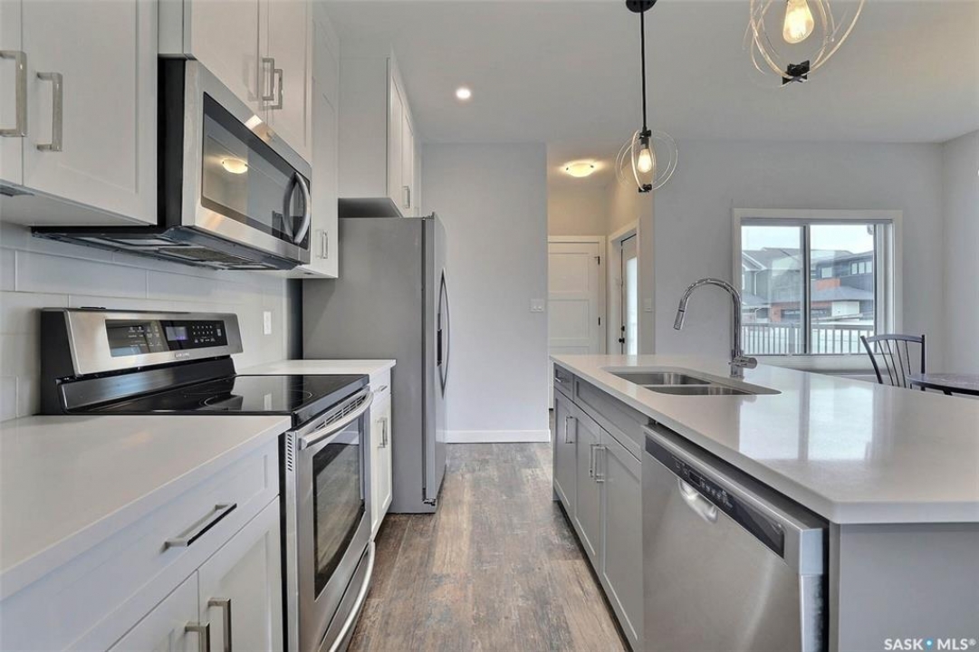 Gorgeous brick accented street appeal on this great family home built by master builder Ehrenburg Homes. This Ashwood model former Showhome is completely developed with many upgrades. New luxury vinyl plank flooring throughout main and 2nd level including the staircase allows carpet free living! Spacious front entrance leads to wide open floorplan. Large living room with fireplace stackstone feature wall and large south facing picture window allowing in an abundance of natural light. Gorgeous kitchen with upgraded white to the ceiling cabinetry, pantry cupboard, stone counter tops and custom tiled backsplash. Centre island in contrasting contemporary grey adds additional prep space and eating bar. Generous sized dining room surrounded by windows overlooking rear yard and side street. 2pc powder room and storage closet at back entrance. 2nd level features primary suite that will easily accommodate a king bed with walk in closet and 3pc ensuite featuring extra long double sink vanity for extra storage. 2 additional bedrooms are generously sized, main bath and handy 2nd floor laundry room. The large corner allows in extra light and on street parking and very easy side entrance access to the legal basement suite fully developed to builder specs! Large living room with kitchenette, bedroom and 3pc bath plus laundry and storage room. Suite also features durable LVP flooring throughout. Fully fenced rear yard has large deck and lush lawn with rock border accents. Double detached garage is fully insulated, heated and wired for 220. Has extra tall ceiling and overhead door allowing for larger or lifted vehicles. Alley access is also adjacent to the main street allowing more room to maneuver. All Ehrenburg Homes offer a superior construction foundation with a 4" rebar reinforced slab and are built on piles. Rebar reinforced rear pad under garage. Quick poss available. Call today!