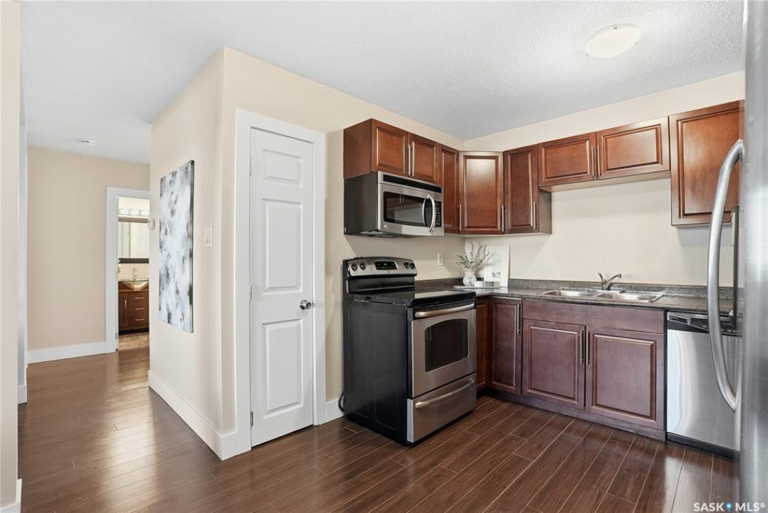 Attended first time homebuyers. This unit is truly a gem and it's located near the riverbank. This ground floor one bedroom condominium has an open concept and it has been completely upgraded. Cozy living room with an open floor plan and large window. Convenient laundry in the unit. Pets allowed with board approval. Just move in and enjoy.