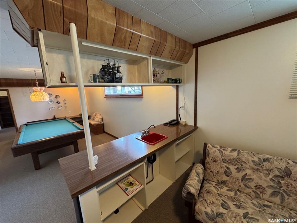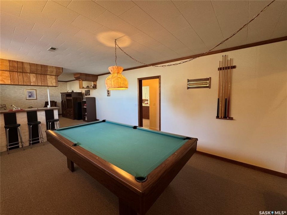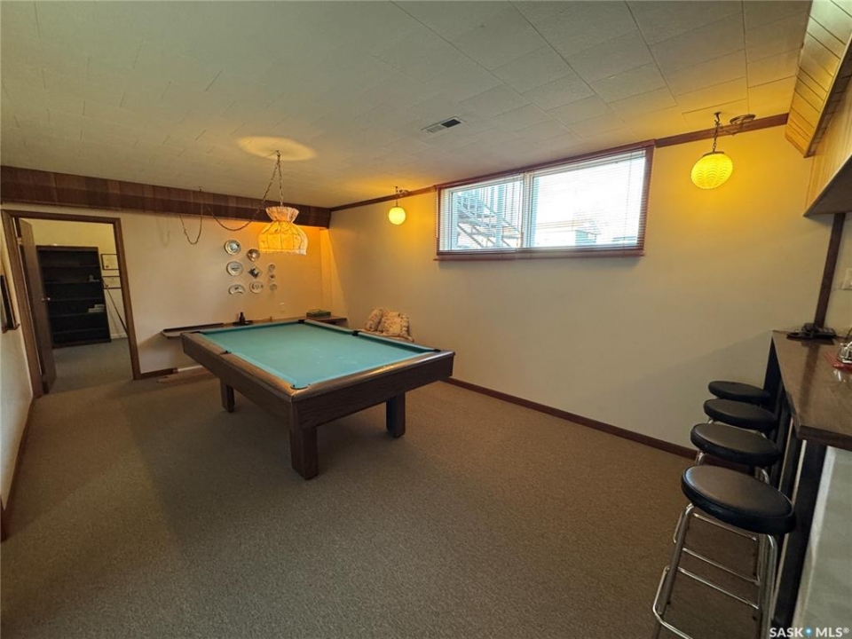 Beautifully Maintained Family Home in a Great Location! This inviting home offers comfort, space, and pride of ownership throughout. The main floor features a bright living room filled with natural light from the large picture window, creating a welcoming space to relax or entertain. The kitchen is a baker's dream, complete with custom cabinets, abundant counter space, a built-in desk, and a cozy eat-in dining area. You'll also find two generous-sized bedrooms, a spacious primary bedroom, and a 4-piece bathroom with a custom marble tile surround. The fully developed basement adds even more living space, including a family room with a classy retro wet bar, a recreation room with a pool table (included!), two additional bedrooms—one with direct access to a 3-piece bathroom—a laundry room, cold room, and a bonus room perfect for a workshop or extra storage. Step outside to enjoy the manicured yard with lush lawns, underground sprinklers, shrubs, and a covered deck. The three-season sunroom offers the perfect spot to unwind and take in your surroundings. The 24x24 double detached garage is insulated and accessible from the back alley, with a double concrete driveway providing extra off-street parking. Well maintained and thoughtfully cared for, this home boasts spacious rooms, a practical layout, and an excellent location close to schools and recreational facilities. Experience the comfort and quality this home has to offer. Schedule your viewing today!