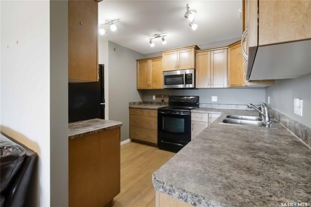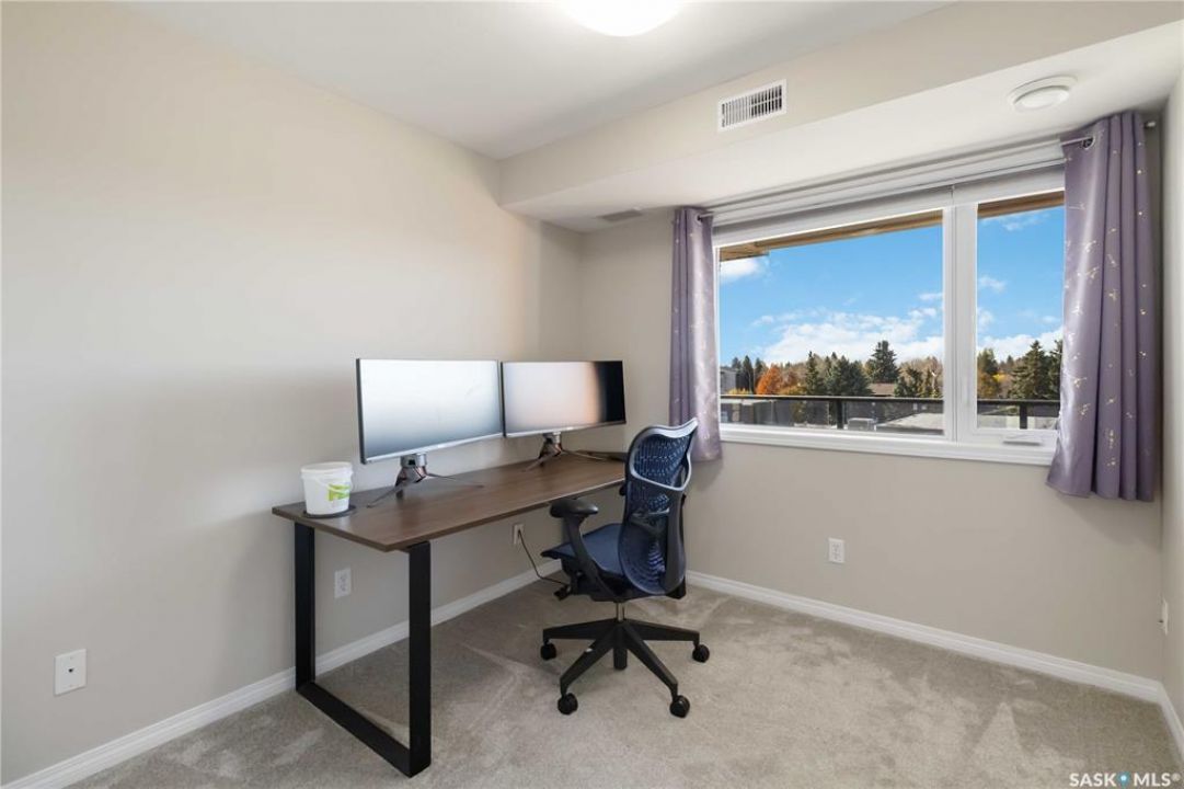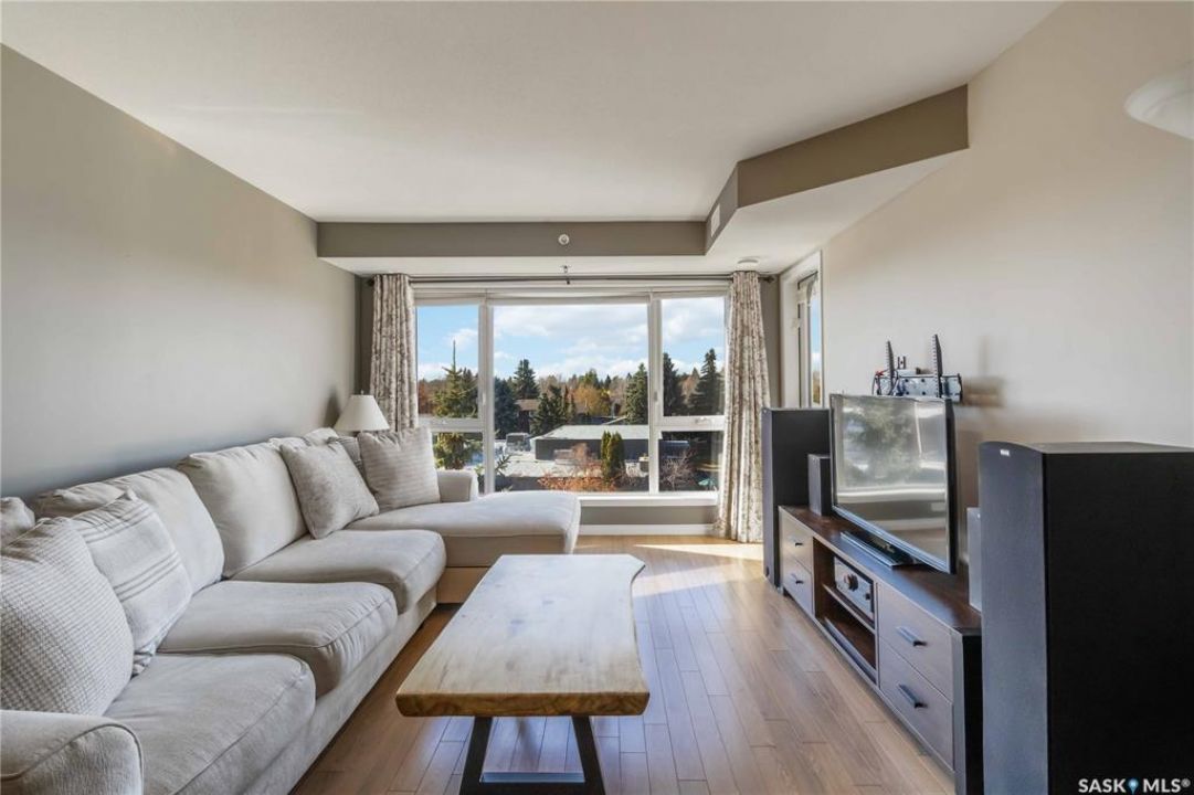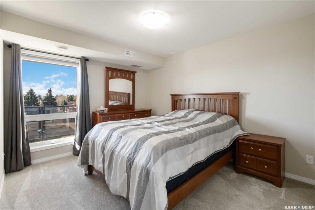 Welcome to this meticulously maintained 4th floor condo that truly has it all comfort, style, and convenience! Offering 944 sq. ft. of thoughtfully designed living space, this south facing unit offers an abundance of natural light and overlooks a peaceful tree line view that you will love waking up to. Inside, you'll find 2 spacious bedrooms and 2 full bathrooms, including a primary suite with its own private bath. The unit shows like new, all you need to do is move in and enjoy! Stay comfortable year round with central air conditioning and a forced air furnace. You will also enjoy the convenience of in suite laundry, underground parking, and a separate storage unit for extras. The building itself offers fantastic amenities, a meeting room for gatherings, a guest suite for visitors, and of course, a prime location close to shopping, restaurants, parks, golf course and more. Step out onto your sunny south facing balcony, sip your morning coffee, and soak up the view this is condo living at its best. Don't miss out on this great home book a showing today!