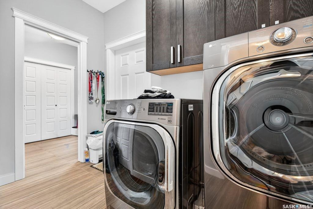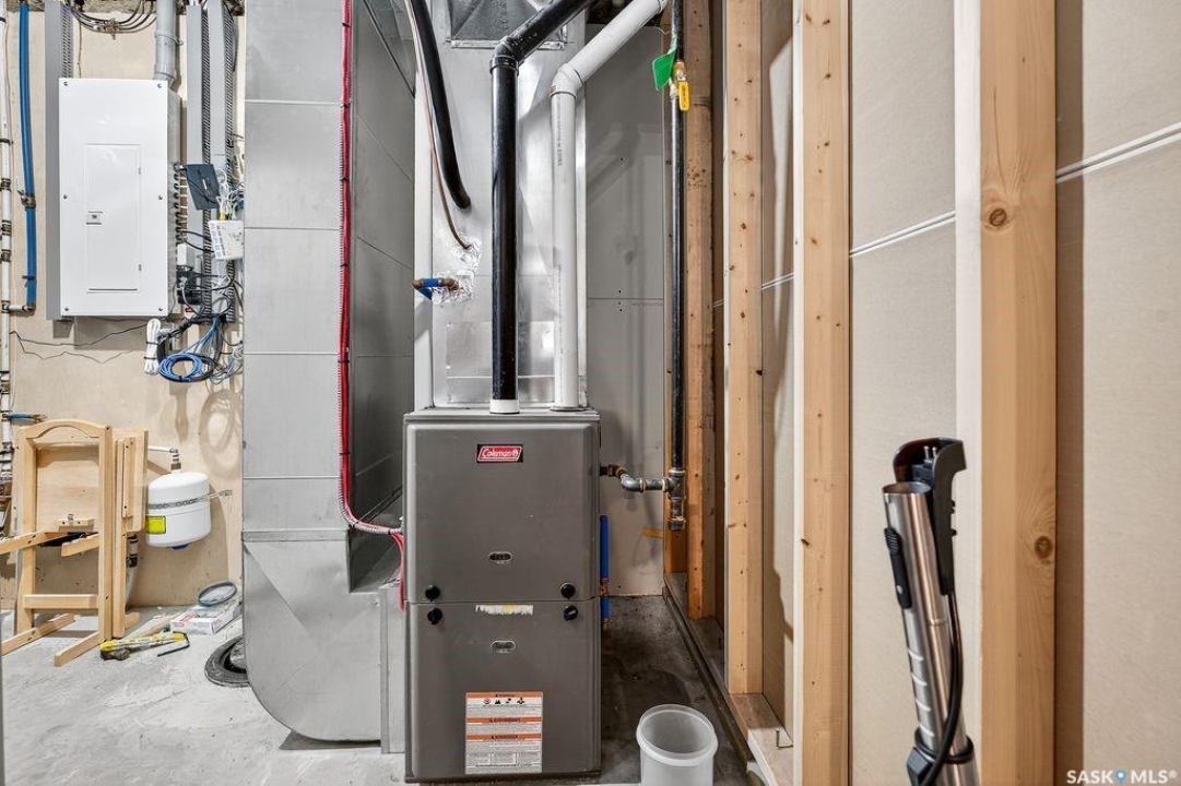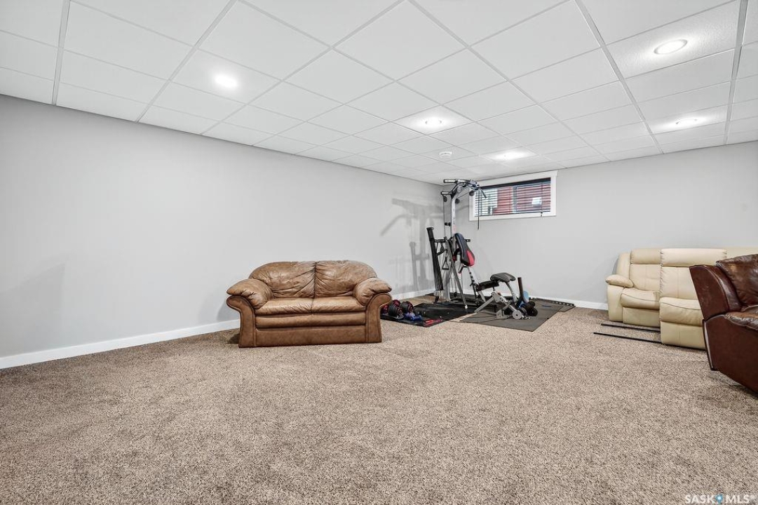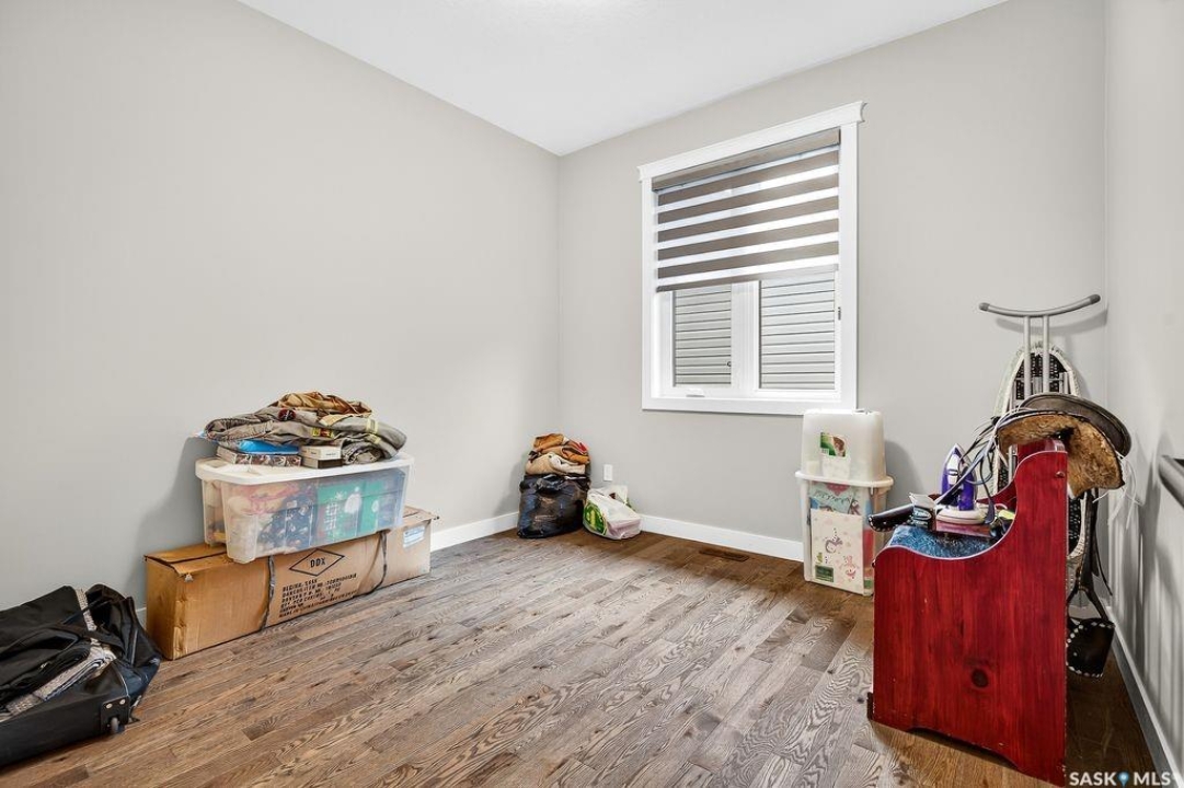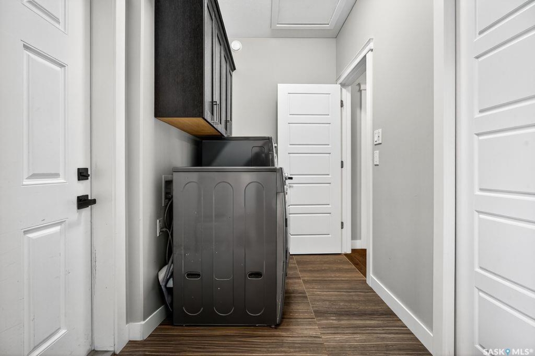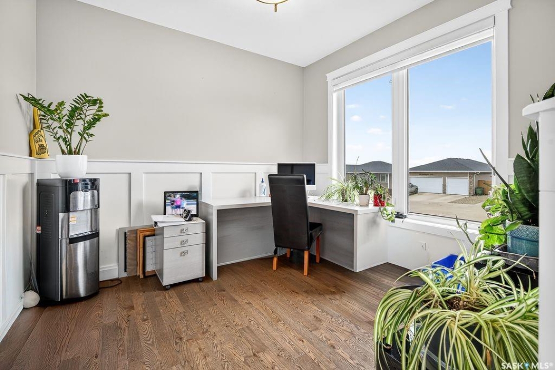 Welcome to 171 Wellington Drive! This beautiful 5-bedroom, 3-bathroom home, built in 2015, offers all the modern conveniences of newer construction. As you enter, you're greeted by 9-foot ceilings and a spacious foyer with direct access to the heated and insulated double attached garage. The main floor features hardwood flooring, stylish tiled bathrooms, and solid surface granite countertops throughout. The open-concept kitchen includes an oversized walk-in pantry, perfect for storage and organization. The living room boasts built-in cabinetry and a cozy gas fireplace, ideal for those chilly Saskatchewan winters. You'll also find main floor laundry for added convenience. The master bedroom includes a built-in window bench with cabinetry, a full 4-piece ensuite bath, and a walk-in closet. Two additional main floor bedrooms provide ample space for family or guests, along with another full 4-piece bathroom. The fully developed lower level offers a spacious family room, two more bedrooms, another 4-piece bath, a utility room, and a dedicated storage area. This home comes with all appliances included, as well as central air, central vac, a high-efficiency furnace, and hot water on demand. Outside, the property is fully landscaped and fenced, with underground sprinklers, a large shed (14' x 14' ) on a concrete pad, enclosed screened-in deck off the dining area—finished with authentic barnboard and privacy walls, making it perfect for three-season enjoyment. Located just around the corner from a newly opened school, this home is ideal for families seeking comfort, convenience, and quality. If this sounds like what you're looking for, don't miss your chance to take a peek!