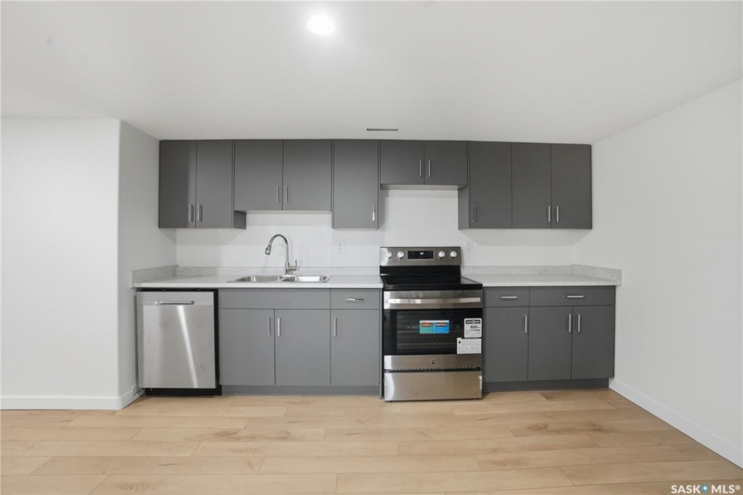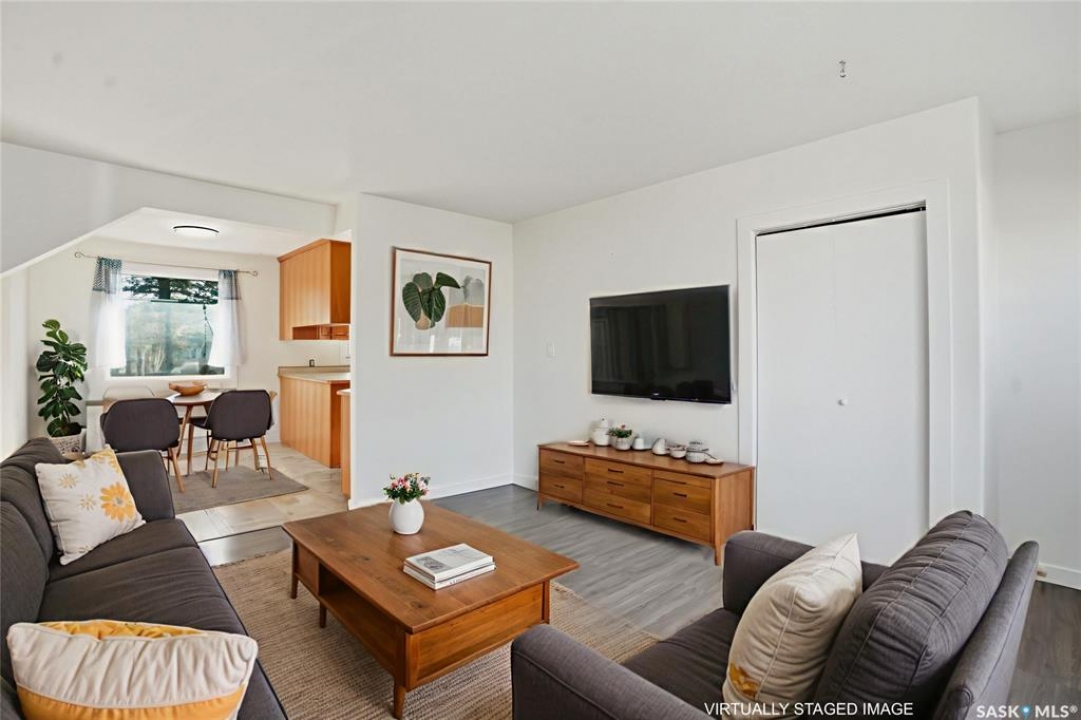Move-in ready bungalow on a massive 100' wide lot in a great Martensville location—close to schools, parks, and all of the town's amenities. This well-cared-for 1,000 sqft. home offers 3 bedrooms on the main floor, a renovated and stylish 4-piece bathroom, a bright and spacious living room, and an open, light-filled kitchen. The main floor features newer laminate flooring and fresh paint throughout, giving the home a clean, updated feel. The basement has been completely renovated and adds tremendous flexibility. It includes a brand new kitchenette with stainless steel appliances, two additional bedrooms, a full bathroom, new vinyl plank flooring, and recessed pot lighting. Perfect for hosting guests or extended family—and with easy potential to convert into a legal suite for added rental income or future resale value. The exterior is just as impressive, with a park-like backyard that feels private and spacious. The 100' wide lot provides endless options for outdoor living, gardening, or future expansion, it's the perfect property to build your dream shop or garage! Mature trees offer shade and character, while the attached oversized single garage and RV parking space on the driveway provides plenty of storage and parking. This property shows extremely well and represents a fantastic opportunity to own a move-in ready home with both comfort and income potential in one of Martensville's most convenient locations.
