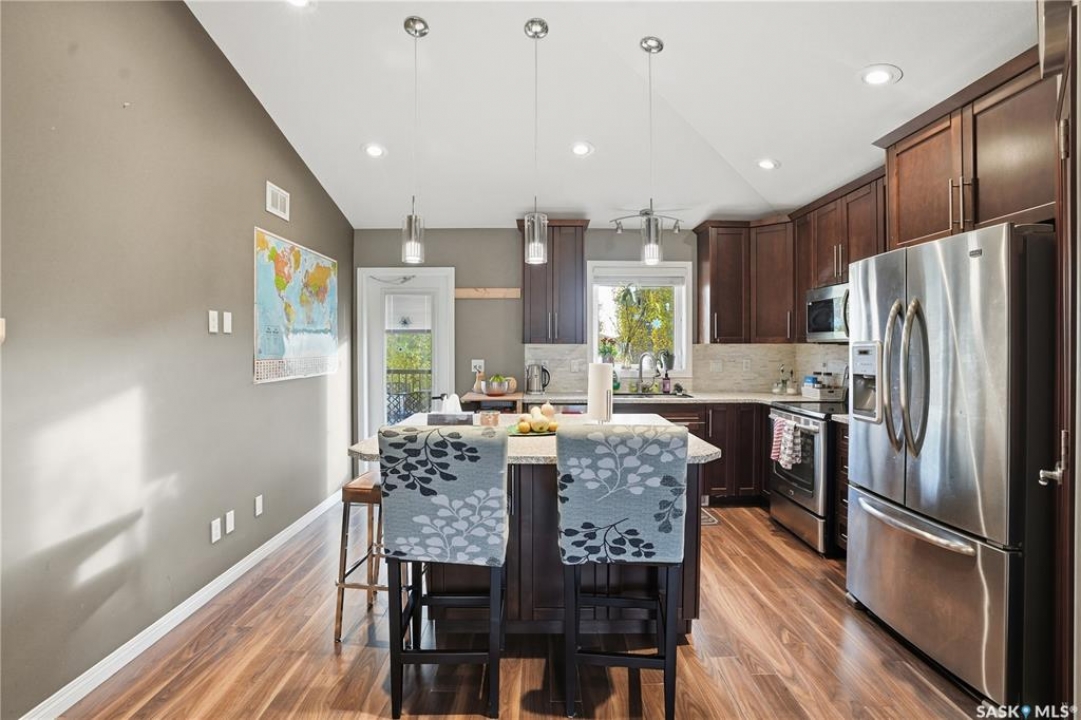 This great Stonebridge property is located on a quiet street, just blocks away from schools, parks and a vibrant commercial area that offers the amenities that you are looking for - shops, banks, restaurants and much more! A beautifully designed and fully developed bungalow offering bright light, vaulted ceilings, kitchen island with ample counter space, a corner pantry, and stainless-steel appliances as well as a garburator. From the kitchen area you can go out to the raised deck, down to the lower-level patio, and out to the lawn area in the back yard. Primary bedroom has an ensuite bath with a walk-in shower and a walk-in closet with built in shelving. Also, on the main floor there are two additional bedrooms and a 4-piece bath with a tub/shower combination. Located in the basement there is a fourth bedroom and an in-floor heated bathroom with a walk-in shower for all your guests to enjoy. In the basement area you will find an open concept exercise area/games room and a living area to watch television in. Basement features large windows. The attached 2 car garage is insulated and has a 11.5- foot ceiling and large overhead door. Added features are Central air, underground sprinklers, and natural gas BBQ hookup. Call your favorite realtor today and come out to view this great Stonebridge property!