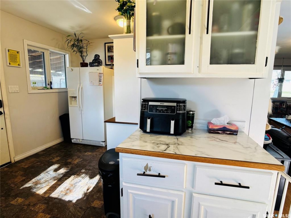 Welcome to 1703 McCormick Crescent, a beautifully maintained 3-bedroom, 1-bathroom home located in the highly sought-after neighbourhood of Pleasantdale. This move-in ready property sits on a slab foundation and offers comfort, style, and convenience in a family-friendly area close to schools, parks, and walking paths. Inside the bright and airy kitchen you will find modern white cabinetry, new countertops, and large windows that fill the space with natural light. The spacious open concept living and dining areas are warm and inviting, complemented by a cozy wood-burning fireplace—perfect for relaxing evenings at home. Enjoy peace of mind with numerous updates, including new furnace & central air conditioning (2022), new water heater (2020), new shingles, soffit, fascia, eaves, and exterior paint (summer 2025), along with a new stove (2024). Outside, the property shines with a private, fenced yard complete with mature trees, green space, and plenty of storage. The large deck is ideal for barbecues or outdoor entertaining, and the ample parking—including a covered carport—adds everyday practicality. Whether you're starting out, downsizing, or looking for a low-maintenance family home, this gem in Pleasantdale checks all the boxes!