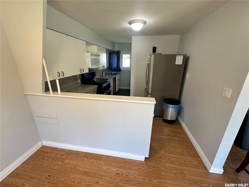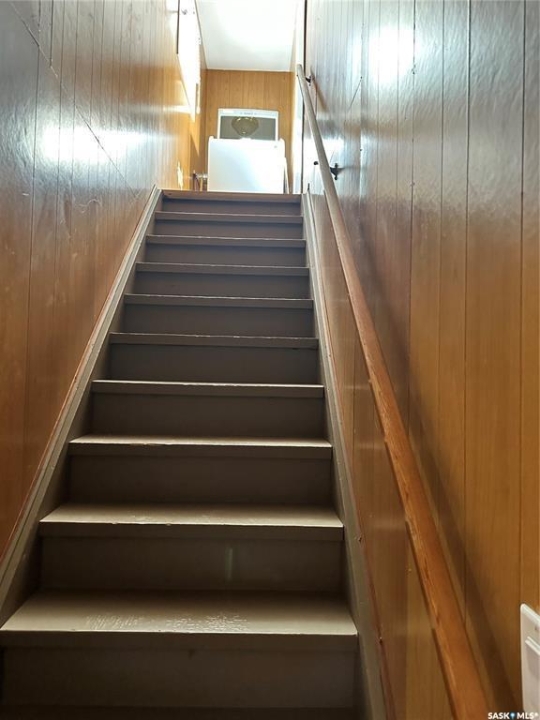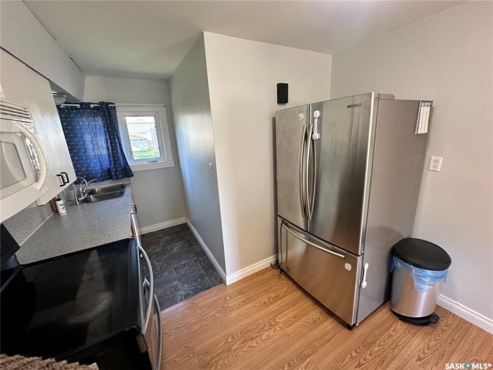 Renovated and cheaper than renting! This 3 bedroom property boasts of a lard lot, detached garage and modern updates throughout. Upon entering you will come into the foyer. The foyer accesses the main floor or can access the 2nd level of the home. The main floor consists of a large living room, dining room and galley style kitchen. The kitchen has ample cupboard space and an additional bar sink which is great for entertaining. The master bedroom and 4 piece bathroom are all on the main floor as well. Upstairs offers 2 good size bedrooms, a 4 piece bathroom and a den area. The home had an attached garage but the overhead door has been covered to make the area into additional living space. Should you want an attached garage a door can easily be added again. The basement is used for storage but just had a brand new HI EFF furnace installed in 2025. The outside yard is spacious and offers a garden area, fenced in space for a dog and a detached heated garage. The home is on a corner lot and is walking distance to town amenities. This property is great for a family or offers good rental income!