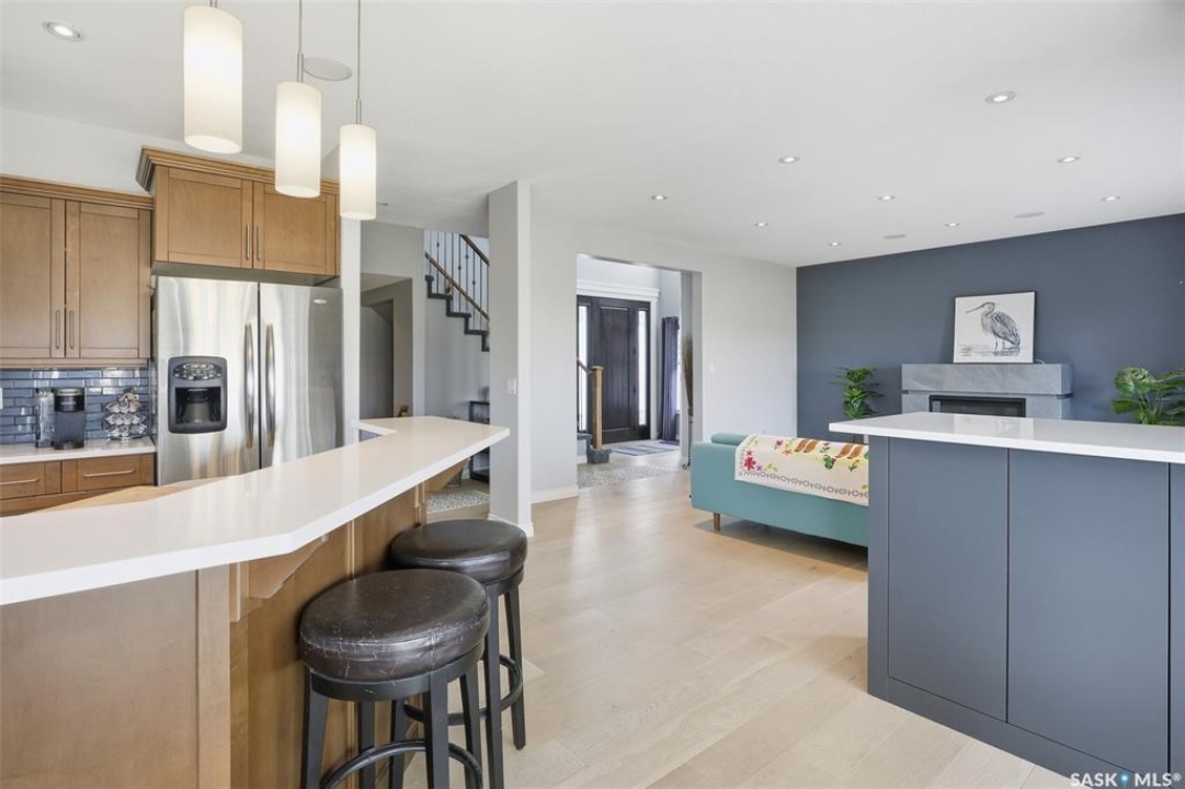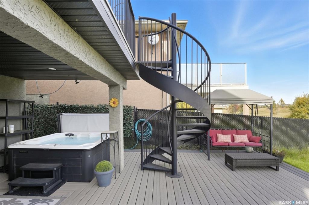 Unbeatable Location in Willowgrove! Watch your kids walk to school from this spacious 2-storey walk-out home, ideally situated backing both Willowgrove and Holy Family Schools. The open-concept main floor is perfect for entertaining, featuring a large kitchen island with bar seating, stainless steel appliances, and a separate dining area with picturesque views of the park. Cozy up by the custom gas fireplace or enjoy the elegance of newer European white oak flooring throughout the main level. Built-in surround sound enhances your everyday living experience. Upstairs, a bright and functional bonus room includes a custom built-in double desk with cabinetry—ideal for remote work or homework. The home offers 3 bedrooms and 4 bathrooms, including a luxurious 5-piece primary ensuite with a jetted tub, glass shower and double sinks. The fully developed walk-out basement features a large family room, a stylish wet bar with seating for four, and direct access to a stunning outdoor living space. Enjoy the double-tiered deck, spiral staircase, and private hot tub—perfect for relaxing or entertaining. A large shed doubles as a kids' playhouse, and the oversized double attached garage provides ample space for vehicles and storage. This one has it all—location, space, and style. Don't miss your chance to view this exceptional Willowgrove home!