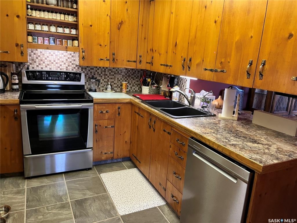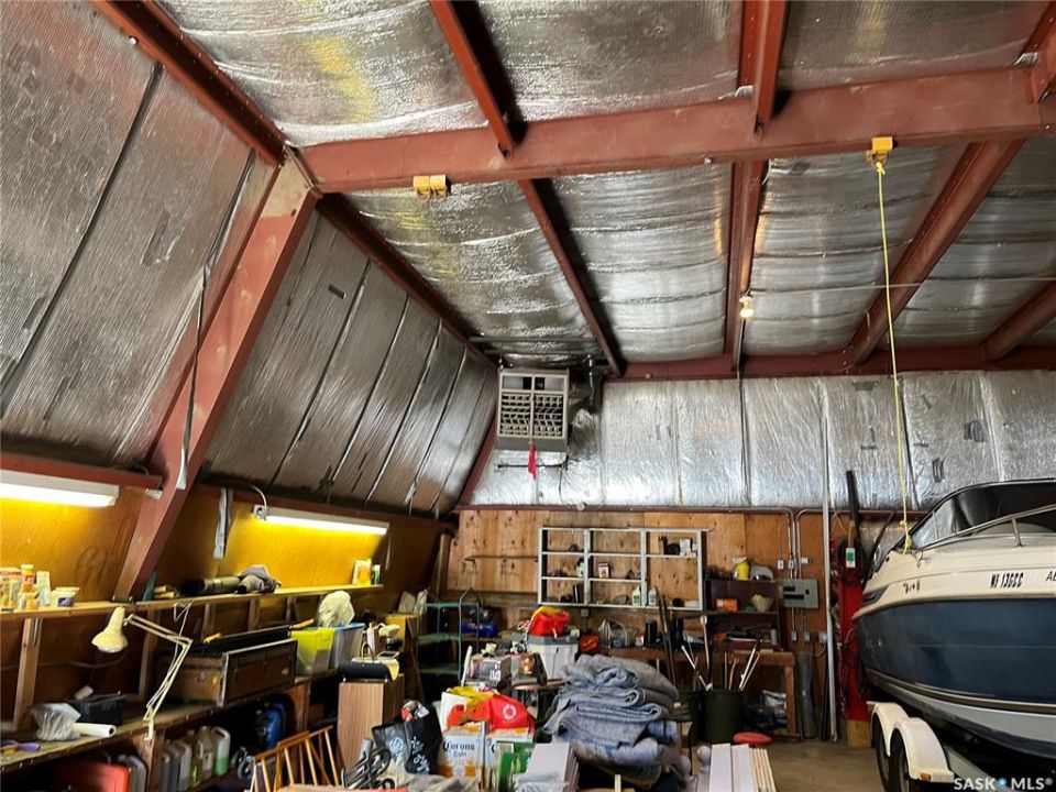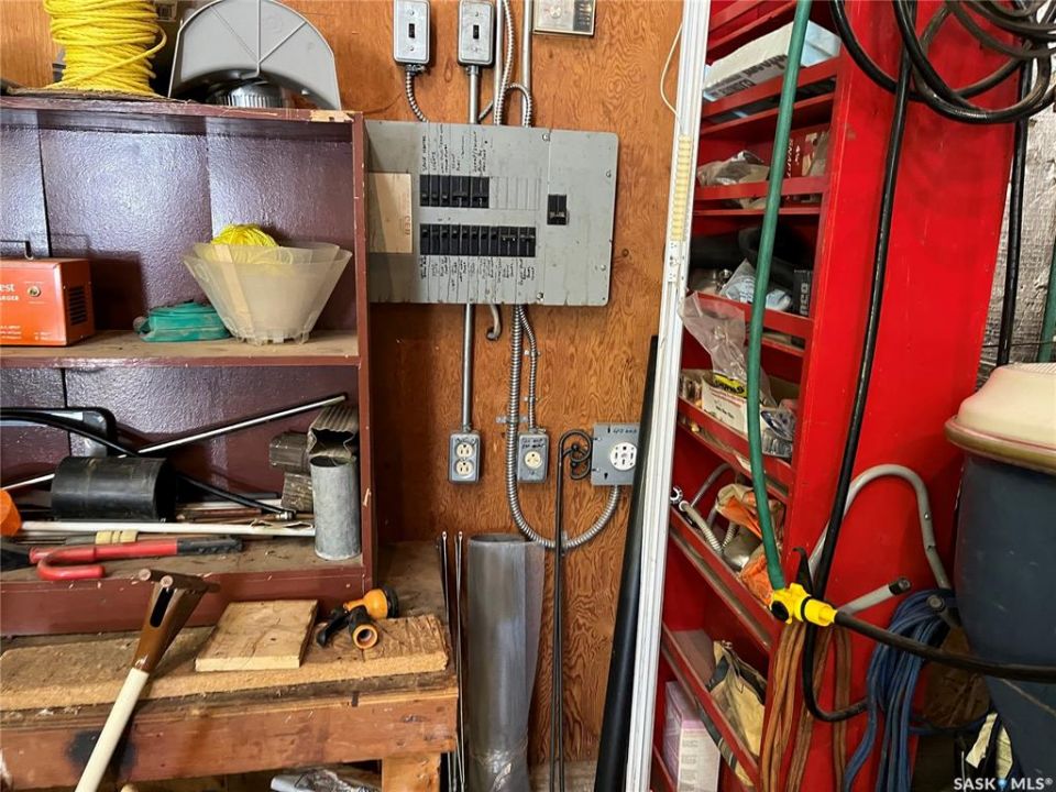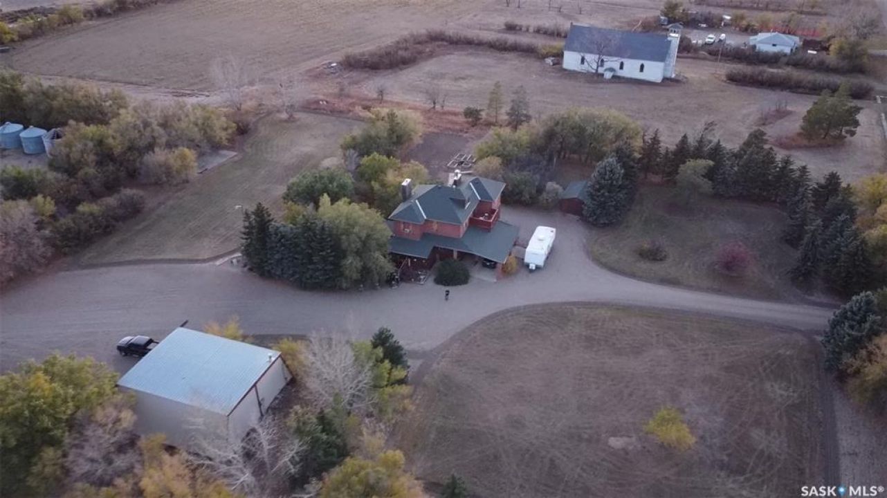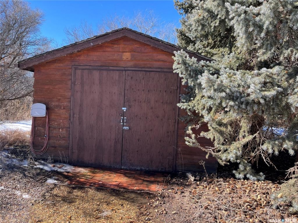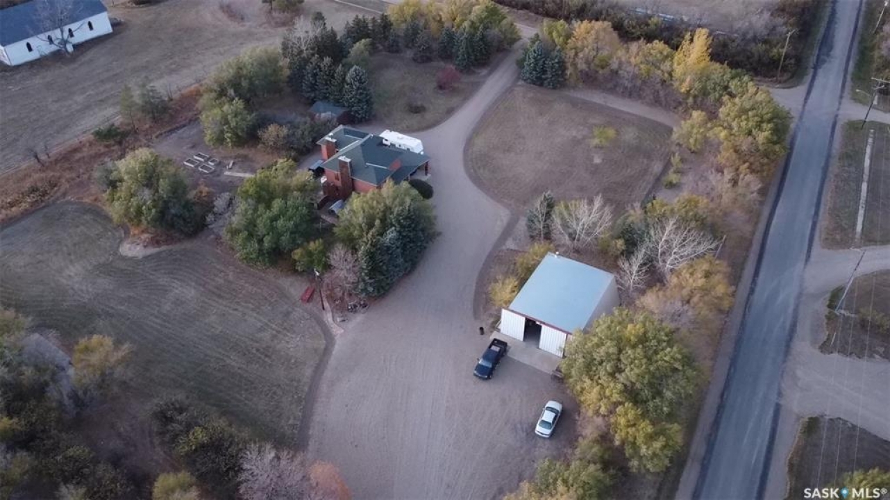 This heritage house and acreage is the largest in Dollard with huge opportunities to reno and modernize or live comfortably as is. The drive way is pull-thru connecting the street and avenue with over 100 mature trees around the perimeter. A 40x40 heated shop on the East side with 240 volt power and 16 foot sliding doors faces the South driveway. The house is positioned across the drive to the NW with a South facing fenced yard, also with mature trees, and a covered veranda wrapping around at the kitchen door. The North side carport provides parking for 2-cars while sheltering the front door. The driveway wraps around past a garden on the West side while also providing direct access to the cellar door. Another shed in the NW corner could be a 1 car garage or used as a super sized garden shed. Inside the house shows some updates in a very livable space. The kitchen includes stainless appliances and the living room has a beautiful brick fireplace. A separate and spacious main floor laundry is the last room behind the main floor full bath. The dining room includes original stenciled glass. Upstairs is the primary bedroom, two medium and on small bedroom. There is a 3pc bath on the second floor. The attic is accessed with a ladder and is insulated with lighting and stand up height making a huge storage space. The second floor also has a North door to a rooftop private patio, great for star gazing. The basement is finished with a rec room, plus cold room storage and mechanical. There have been recent upgrades to both water and electrical systems. The nearby town of Shaunavon has full service fuel, hardware, and grocery as well as schools, library, hospital, and rec center with curling and hockey. There is also the Plaza Movie theatre and summertime community pool. Leave the big city for small town life.